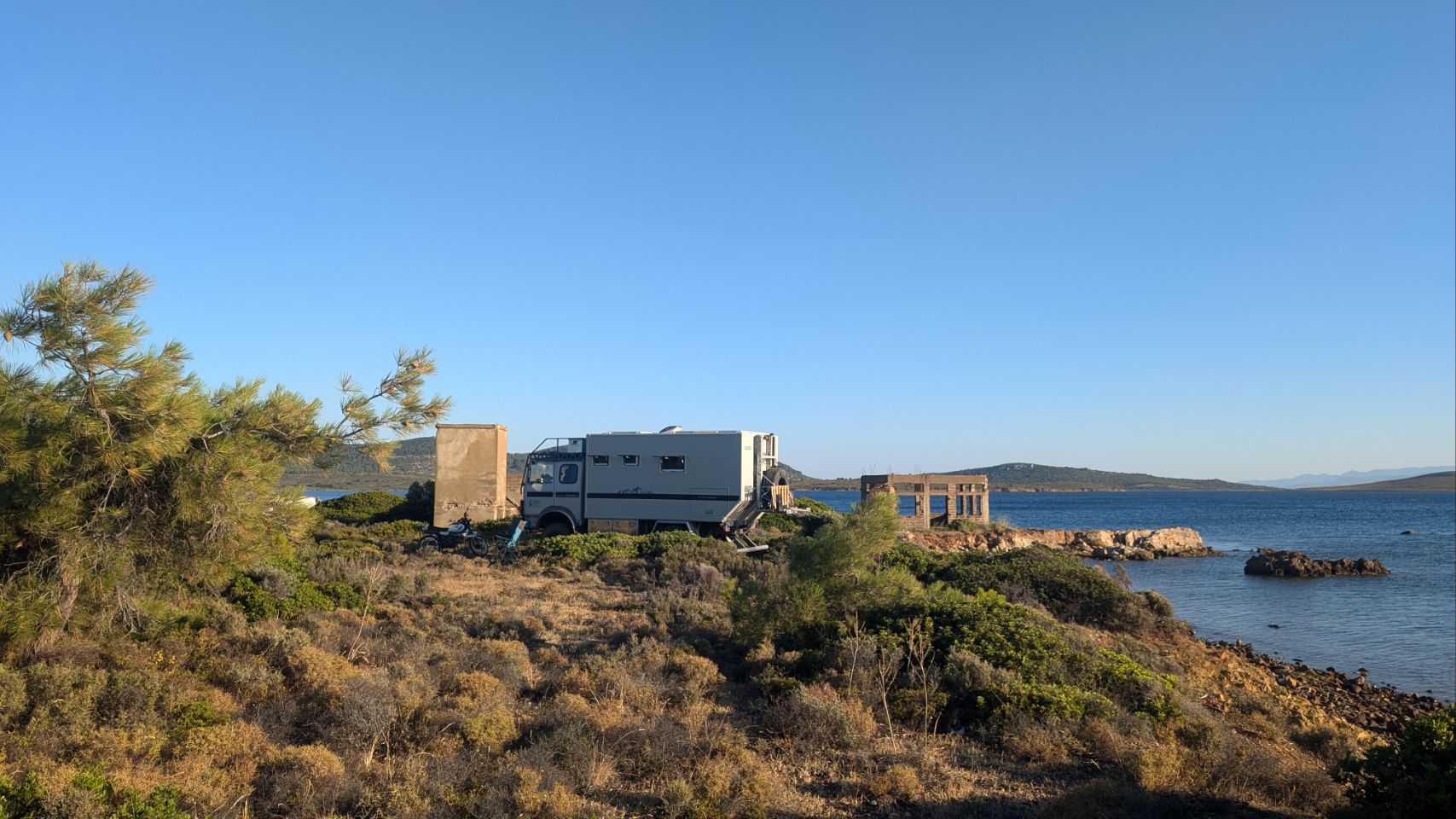 Thom schwingt sich heute mal kurz auf die XT und schafft es tatsächlich in Ayvalik einen HGS-Maut-Tag und eine Internet-SIM von Turkcell zu besorgen – juhuuu, die Läden sind wieder geöffnet 🛍️! Für eine längere 🏍️Tour ist es aber einfach zu heiß ☀️, für alles andere auch 🥵, deshalb lautet das weitere Tagesprogramm: Waiting for the heat to go 🌡️📉🆒…