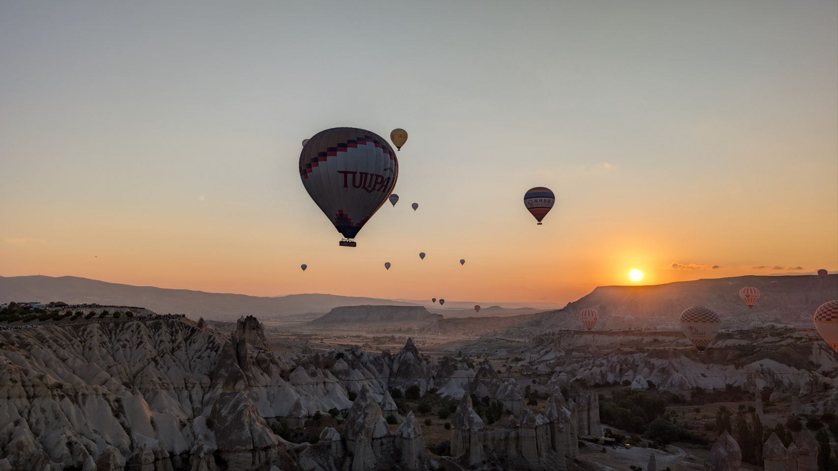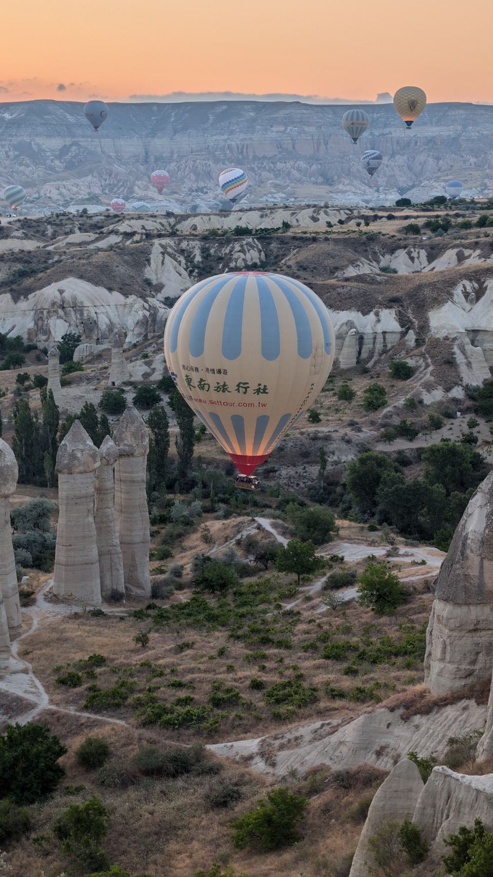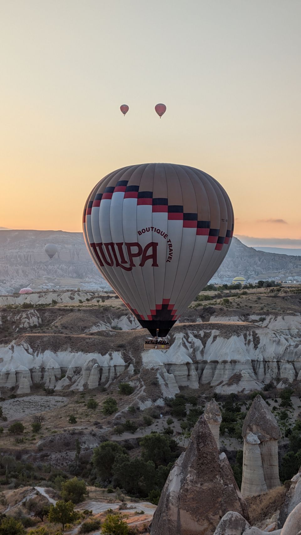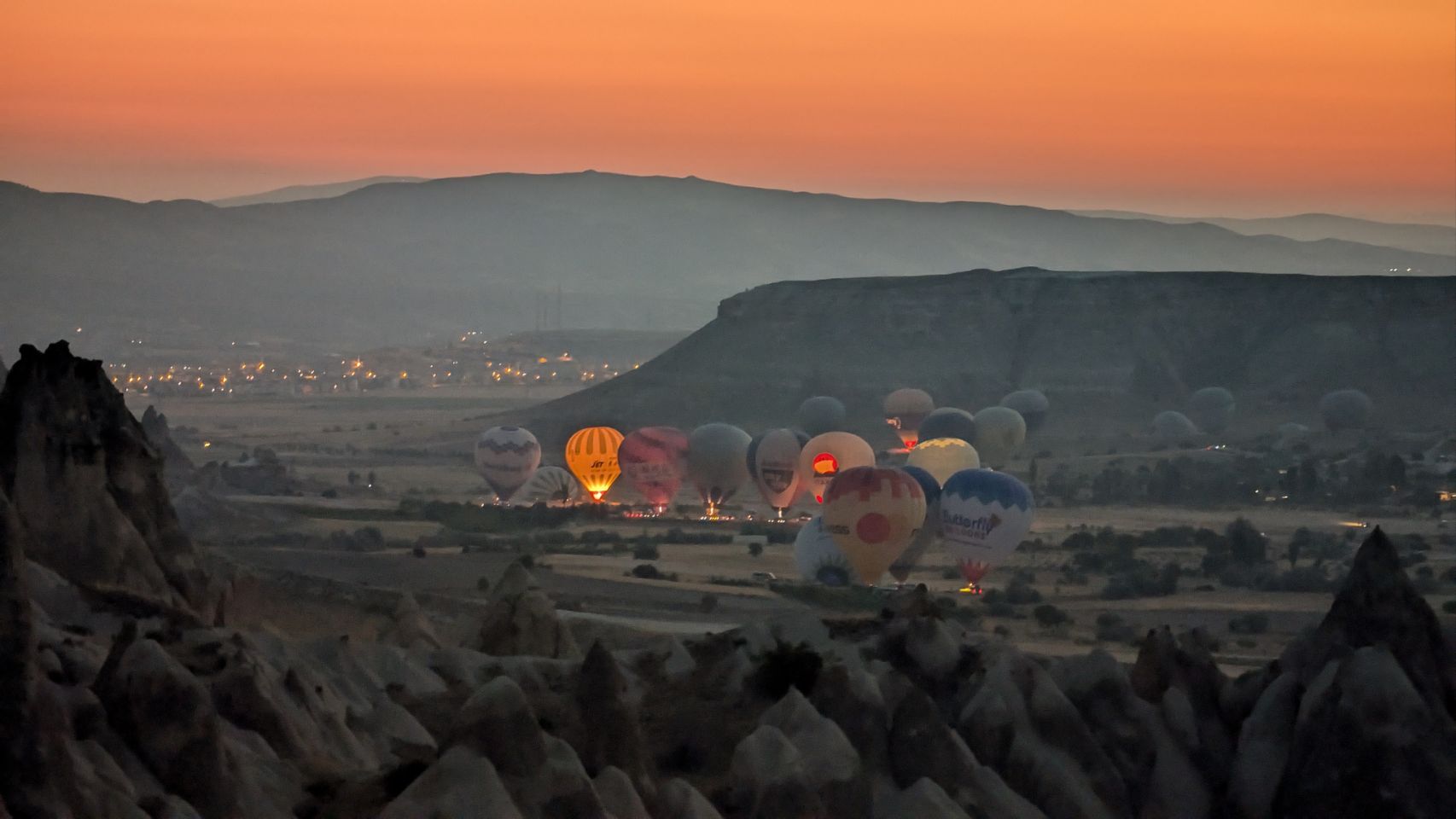 Und dann geht’s los! Wir sehen die ersten Ballons, die im Tal mit Heißluft gefüllt werden, man hört das typische „Fauchen “ der Brenner und dann steigen sie auf. Erst einzelne, dann werden es immer mehr – bis der ganze Himmel voller Ballons ist! Und die Sonne geht auch langsam auf 🌄…