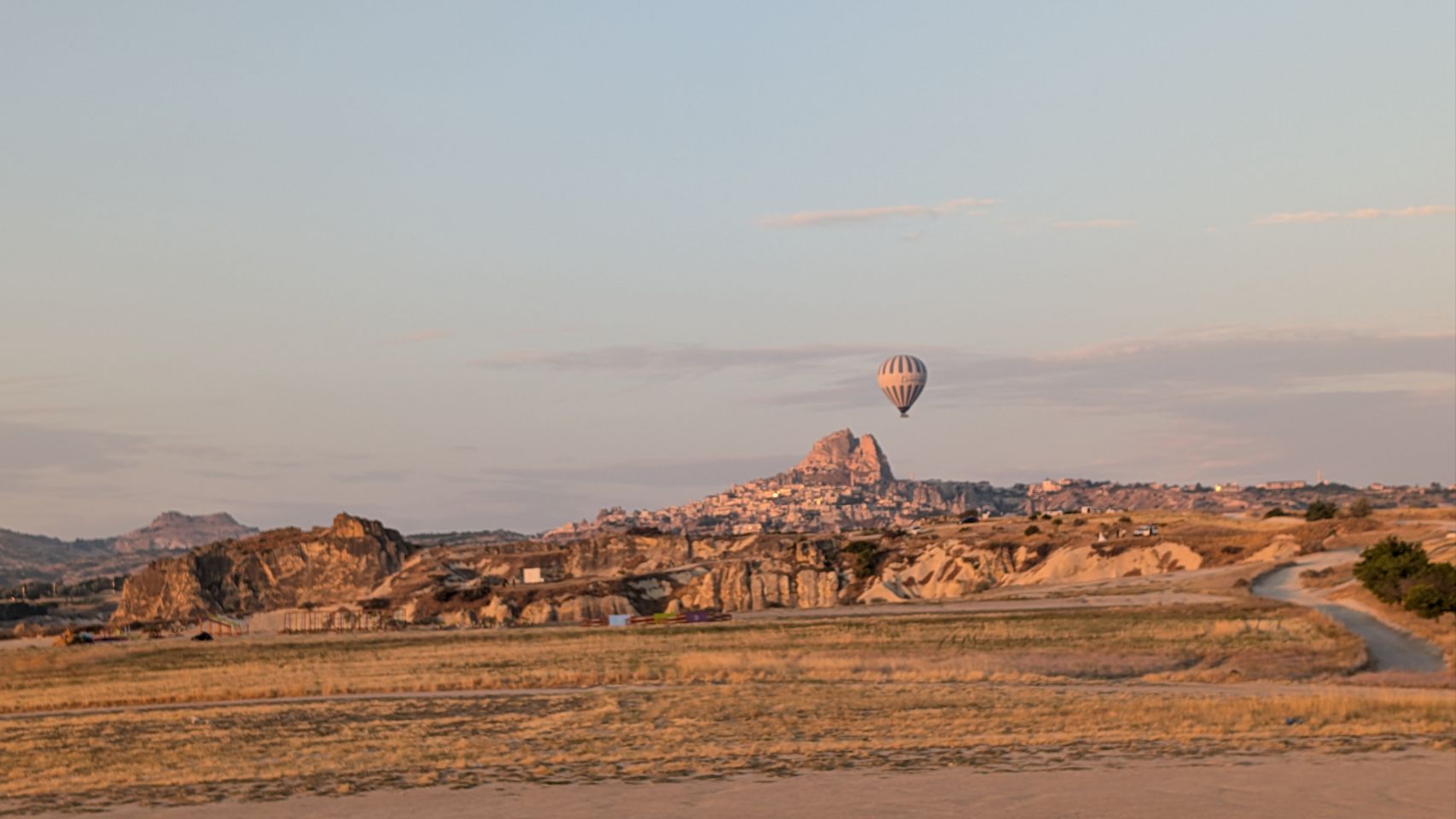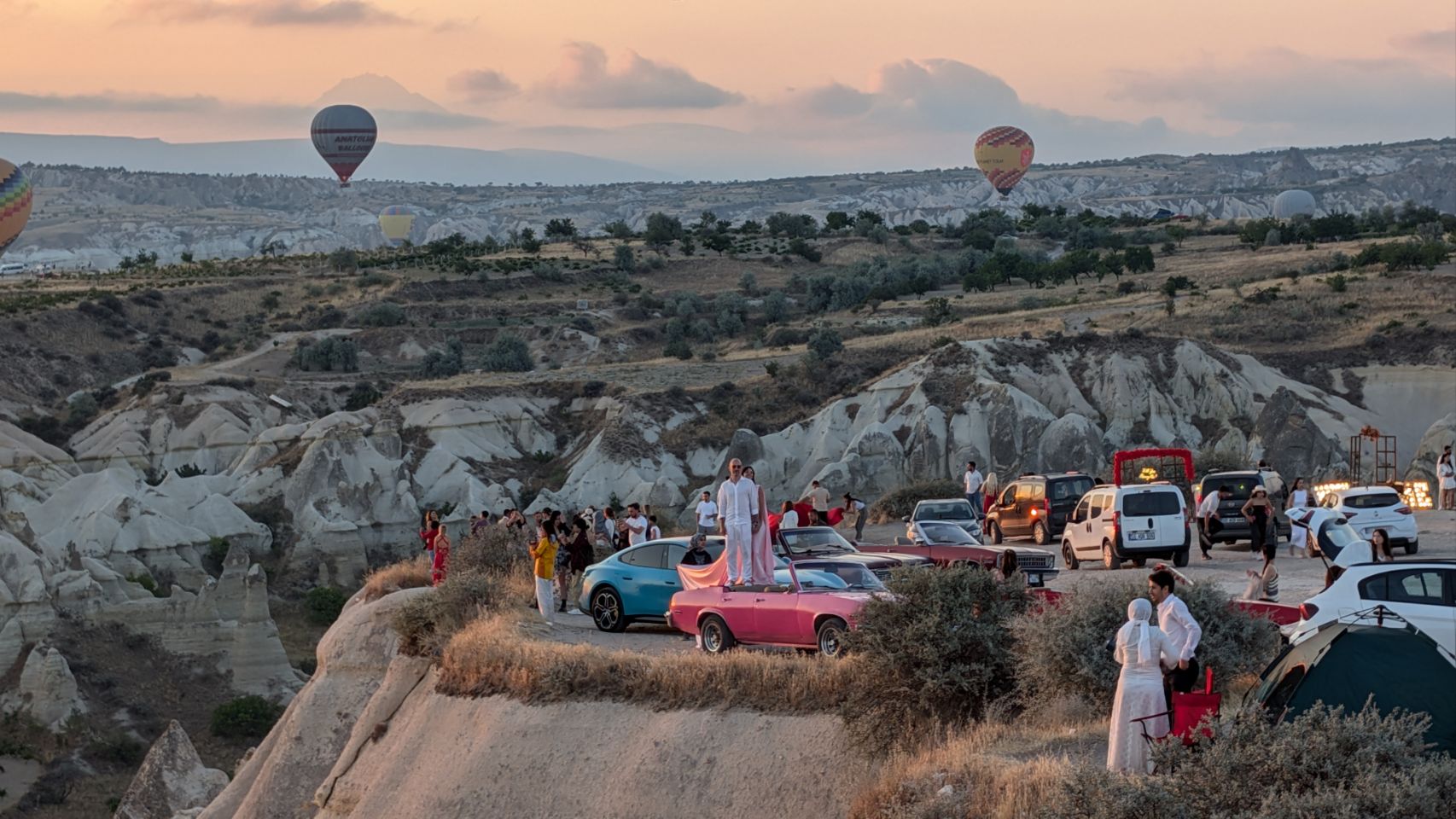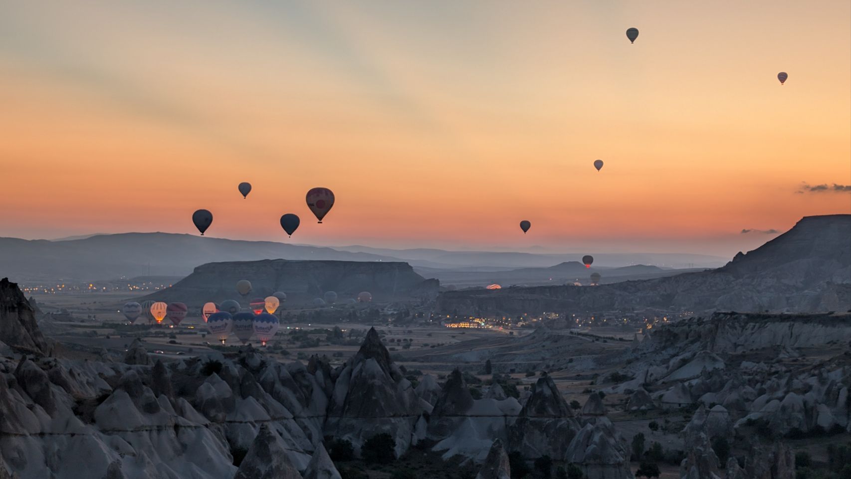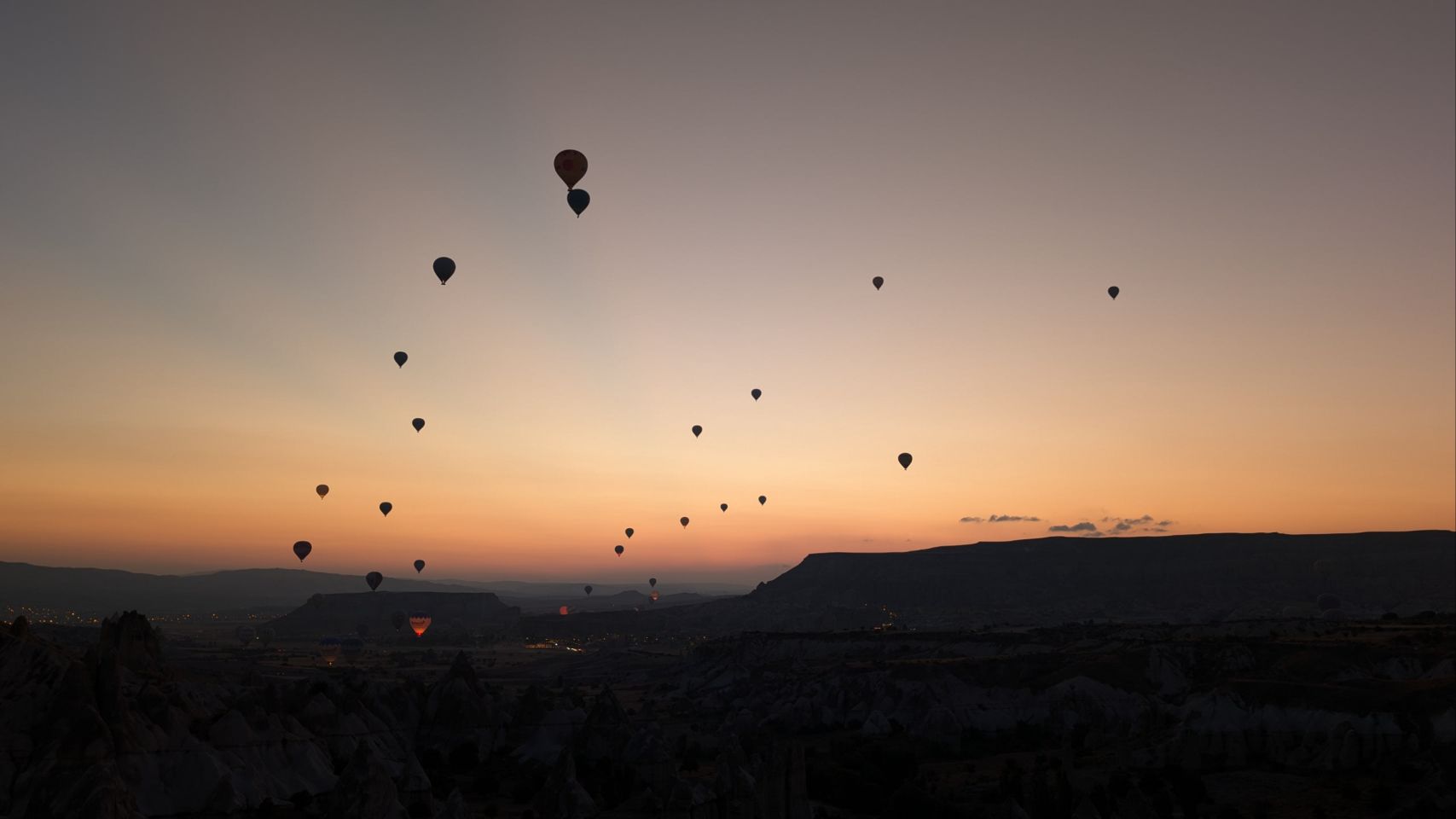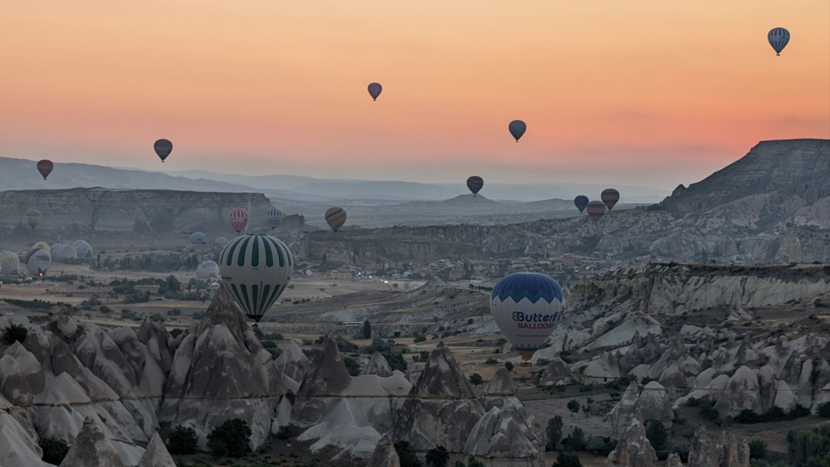 Und dann geht’s los! Wir sehen die ersten Ballons, die im Tal mit Heißluft gefüllt werden, man hört das typische „Fauchen “ der Brenner und dann steigen sie auf. Erst einzelne, dann werden es immer mehr – bis der ganze Himmel voller Ballons ist! Und die Sonne geht auch langsam auf 🌄…