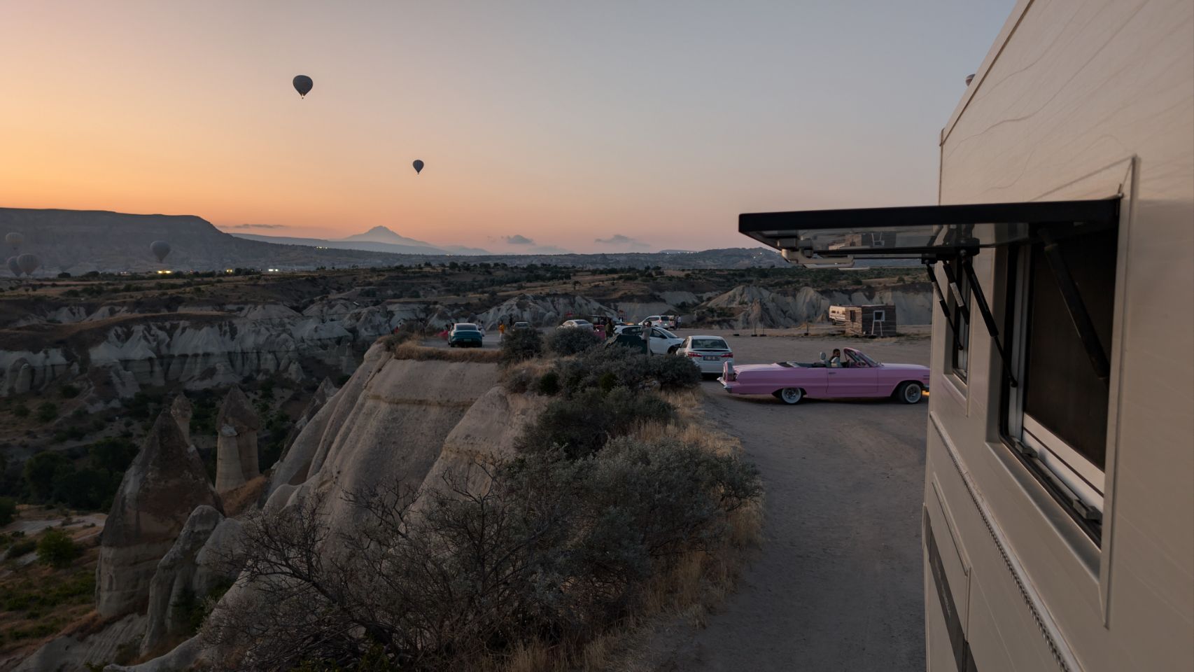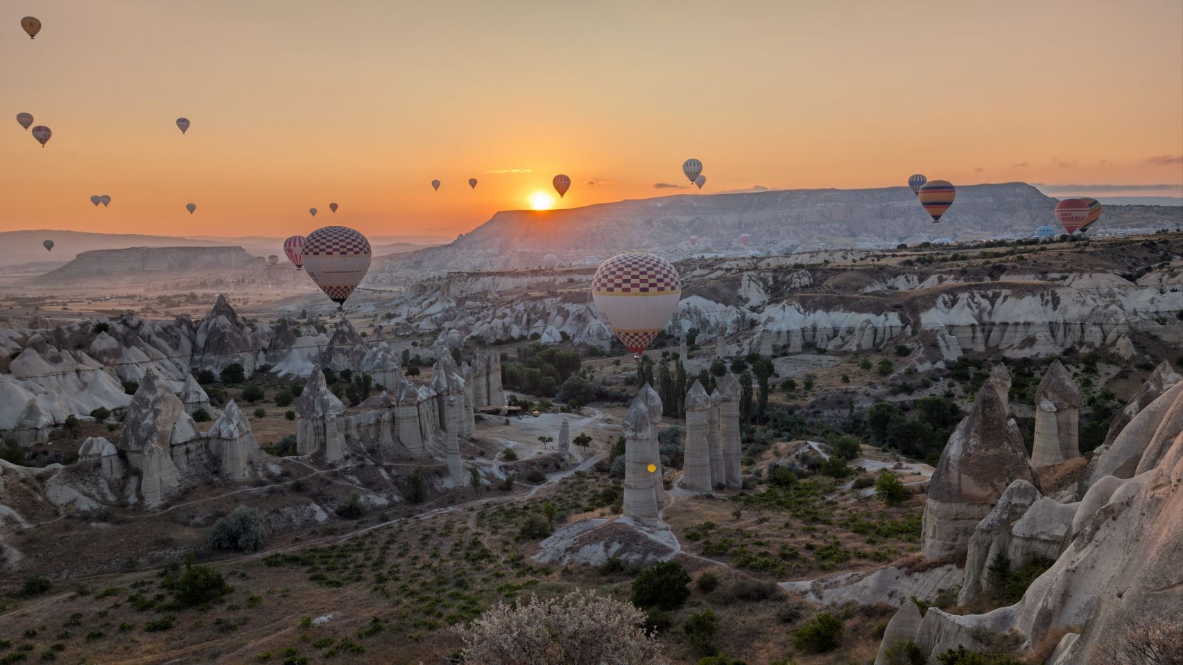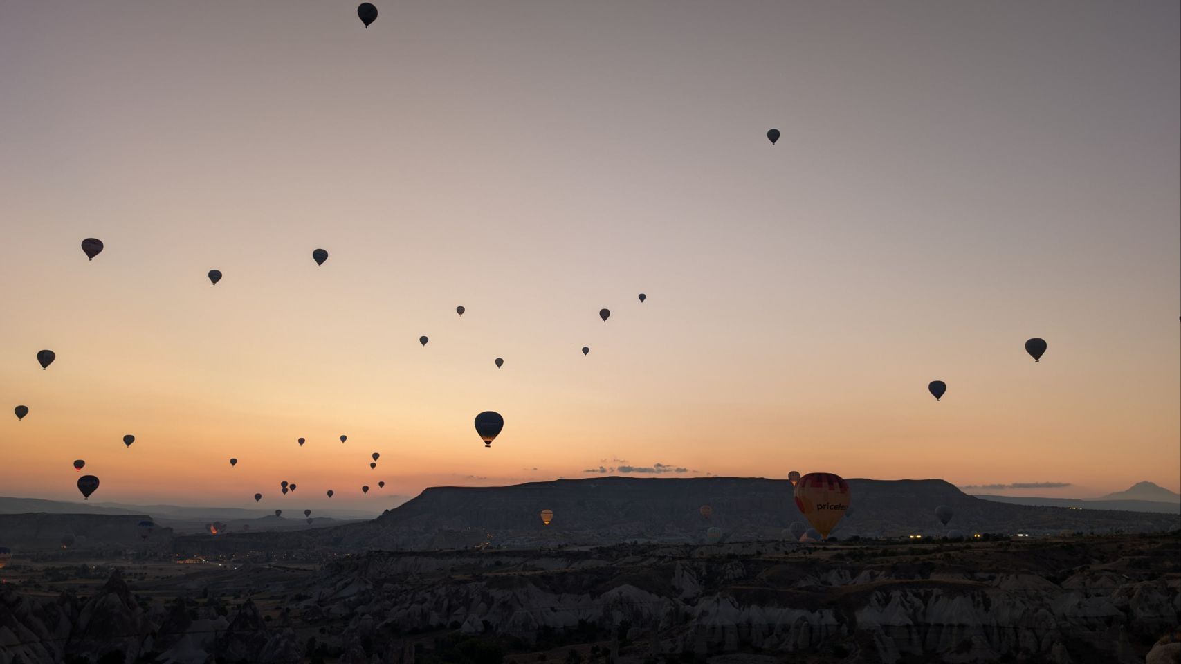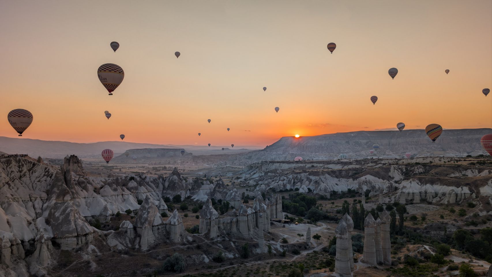Und dann geht’s los! Wir sehen die ersten Ballons, die im Tal mit Heißluft gefüllt werden, man hört das typische „Fauchen “ der Brenner und dann steigen sie auf. Erst einzelne, dann werden es immer mehr – bis der ganze Himmel voller Ballons ist! Und die Sonne geht auch langsam auf 🌄…