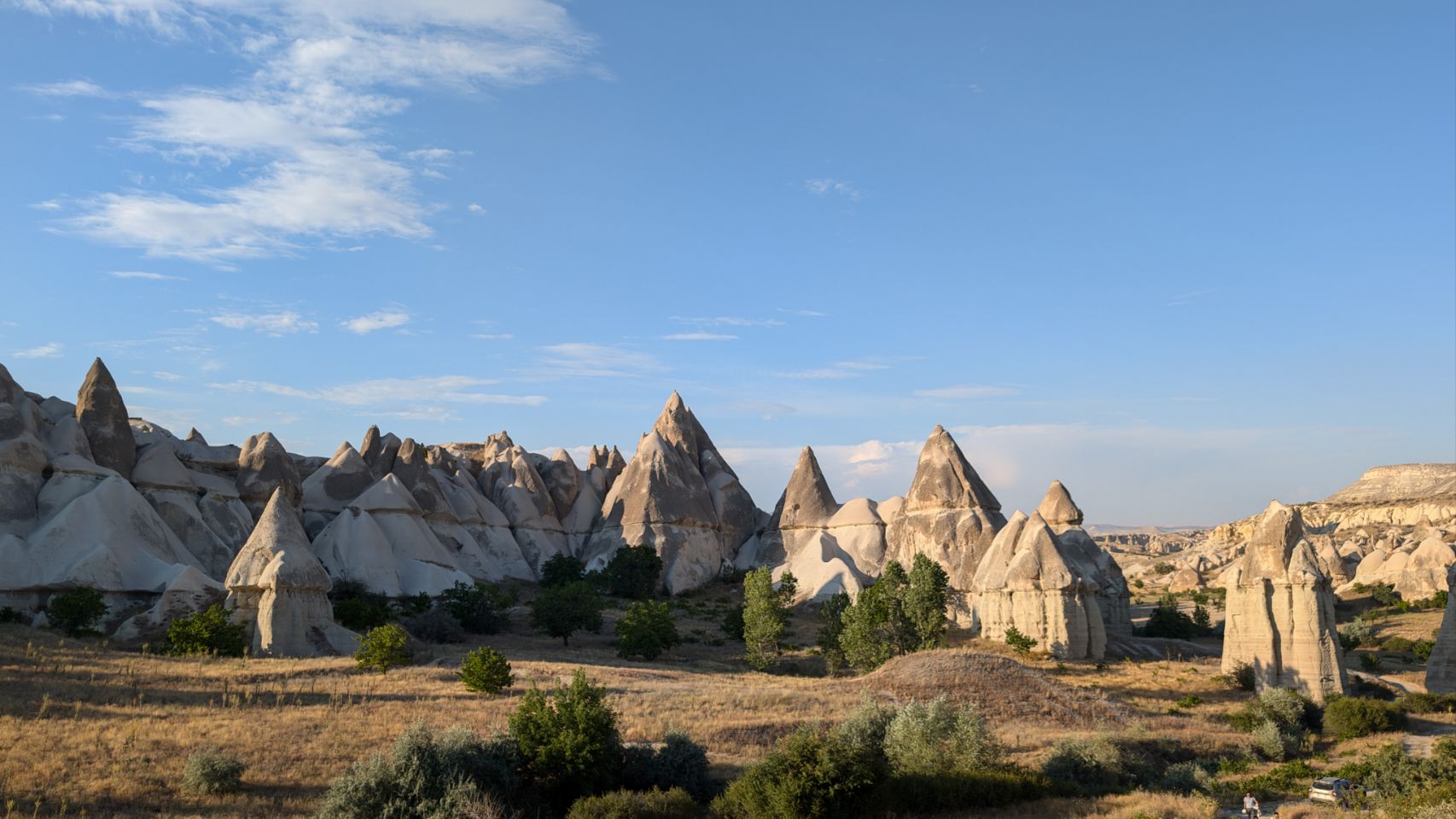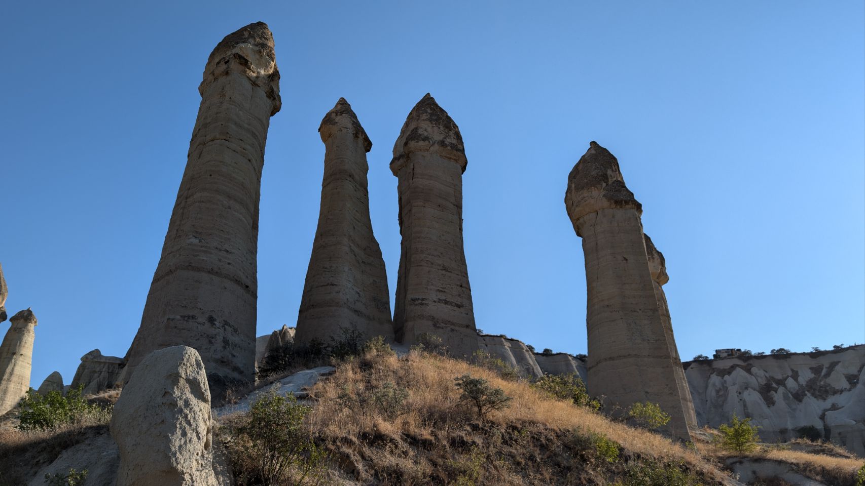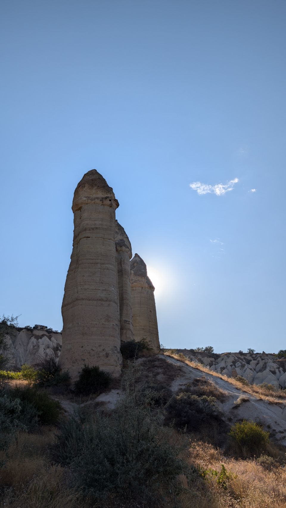 Alle Schattenplätze sind belegt – wir nutzen die Gelegenheit für eine Wanderung am späten Nachmittag ins Love Valley. Tagsüber ist es dafür echt zu heiß, aber jetzt hoffen wir auf ein bisschen Schatten im Talkessel.