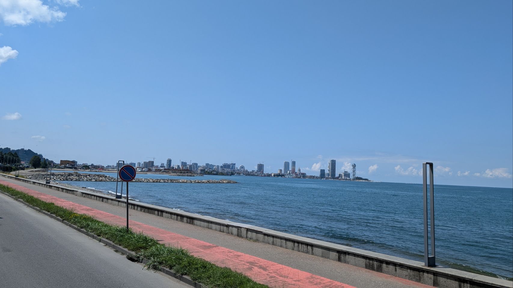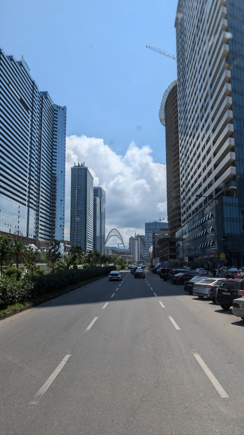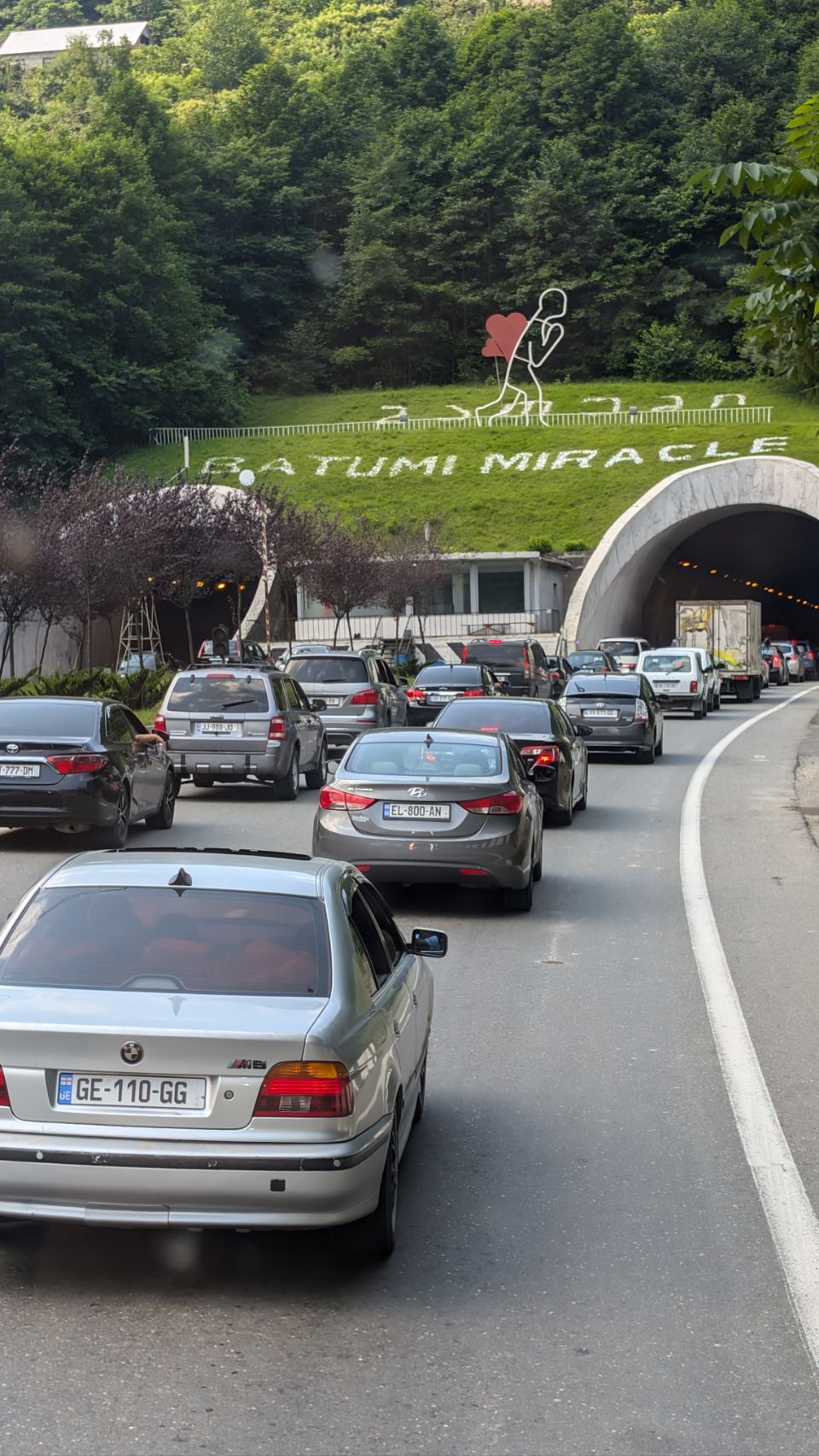 Erst müssen wir zurück nach und durch Batumi und wir nutzen die Gelegenheit, dort noch ein paar Fotos on the fly zu machen. Was uns dann noch von unserem Glück trennt, ist der Goderdzi Pass! Nur ca. 100 km entfernt vom Meer auf der Passhöhe bzw. einem Hochplateau auf über 2000 m Höhe befindet sich das Goderdzi Skigebiet, welches die Passstraße durchquert. Diese ursprünglich reine (Schotter)Piste wird – ich glaube seit 2022 – durch eine chinesische Firma ausgebaut sprich asphaltiert. Allerdings ist noch lang kein Ende in Sicht und nachdem wir uns ja erst noch durch das „Wunder von Batumi“-Verkehrschaos quälen mussten, brauchen wir jetzt nochmal bestimmt 3 Stunden für die letzten 20 km Baustelle bis auf die Passhöhe und dann nochmal 5 km Betonpiste. Außerdem machen wir weitere Erfahrungen mit der georgischen Fahrweise – dafür gibt’s eigentlich keine Worte, das muss man einfach mal gesehen haben, um es zu glauben.