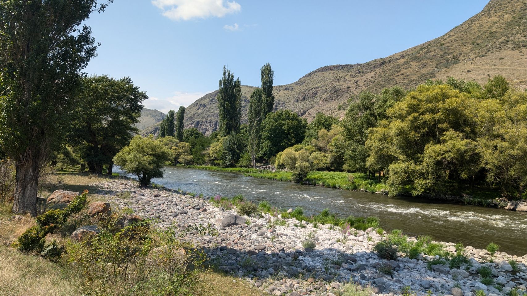 Im Nachhinein habe ich gelesen, dass dies der größte Fluss im Kaukasus ist (über 1.300 km), der in der Türkei entspringt und nach Georgien der größte Teil durch Aserbaidschan ins Kaspische Meer fließt.