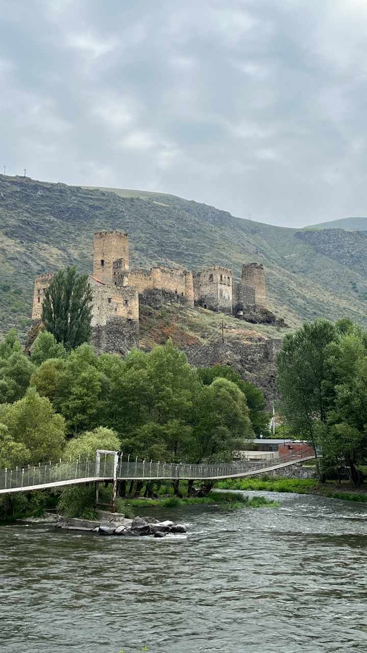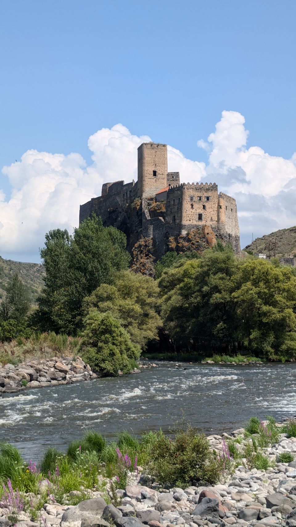 Direkt ums Eck ist noch eine Burg, die wir aber nur aus der Ferne fotografieren: Khertvisi Fortress. Sie steht oberhalb des Zusammenflusses des Paravaniflusses in die Kura.