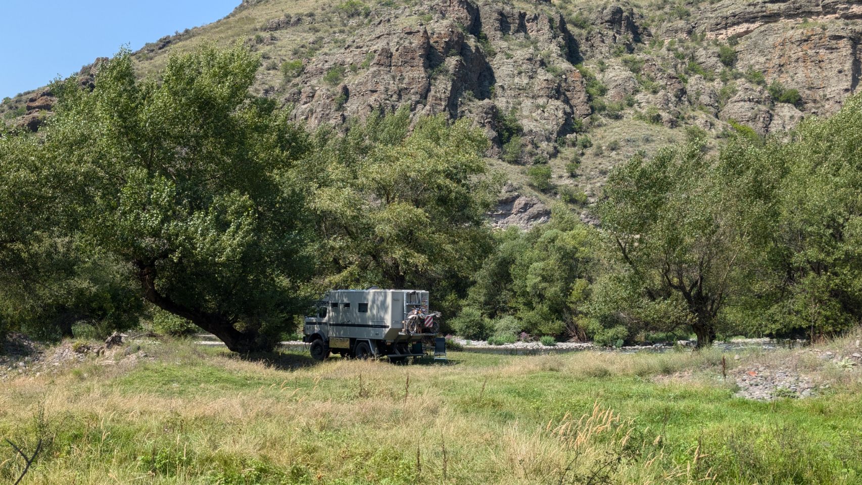 Unser nächstes (touristisches) Ziel ist Vardzia, aber diesmal wollen wir vermeiden den Hotspot am Wochenende zu besuchen, also „parken“ wir uns für die nächsten 2 Nächte kurz vor Vardzia am Ufer der Mtkvari bzw. Kura.