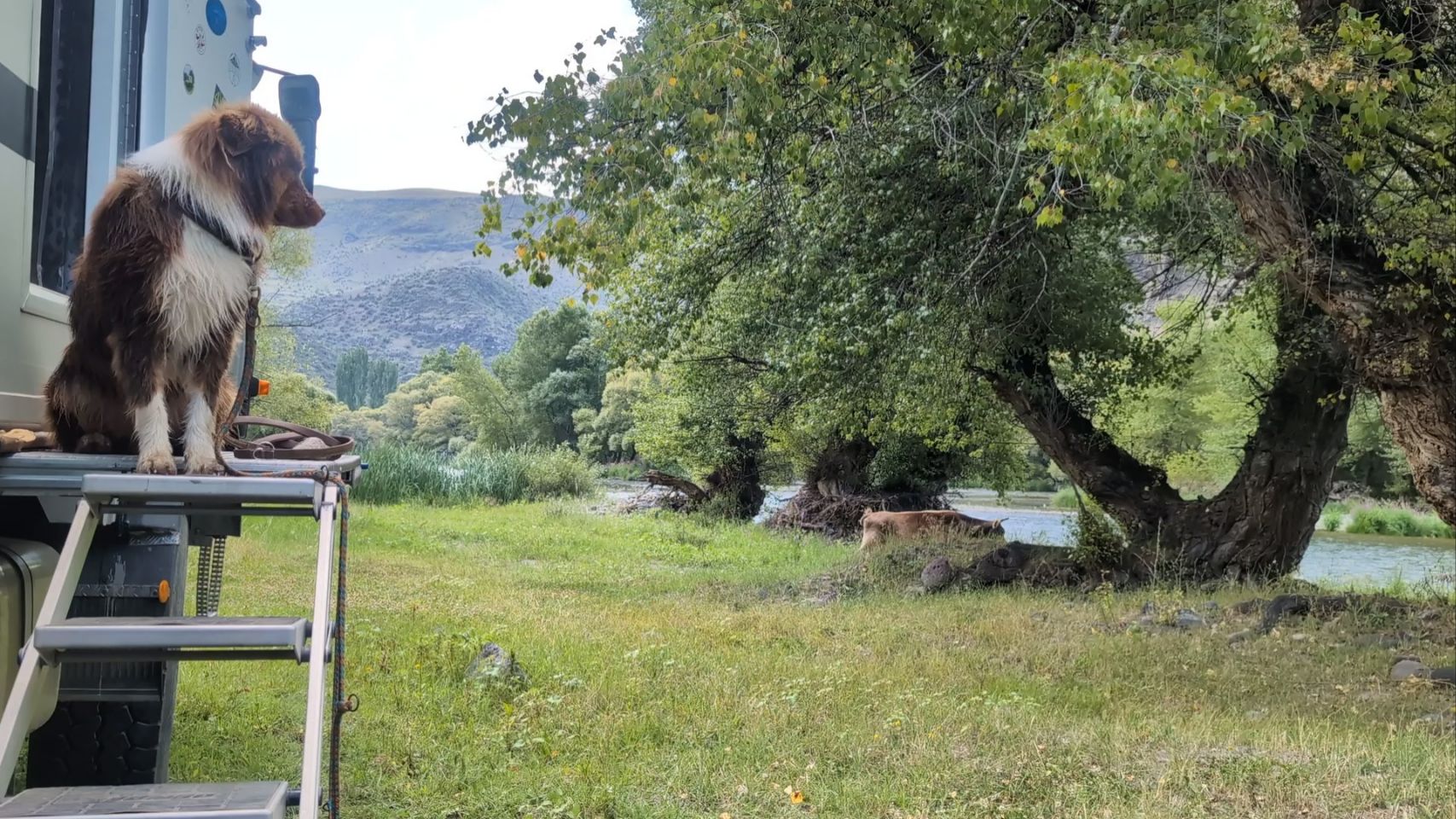 Wir stehen auf jeden Fall schön ruhig hier und Cuba findet es cool, direkt am Wasser zu wohnen, allerdings ist er nicht besonders höflich zu unseren netten Nachbarn 🐄🐄.