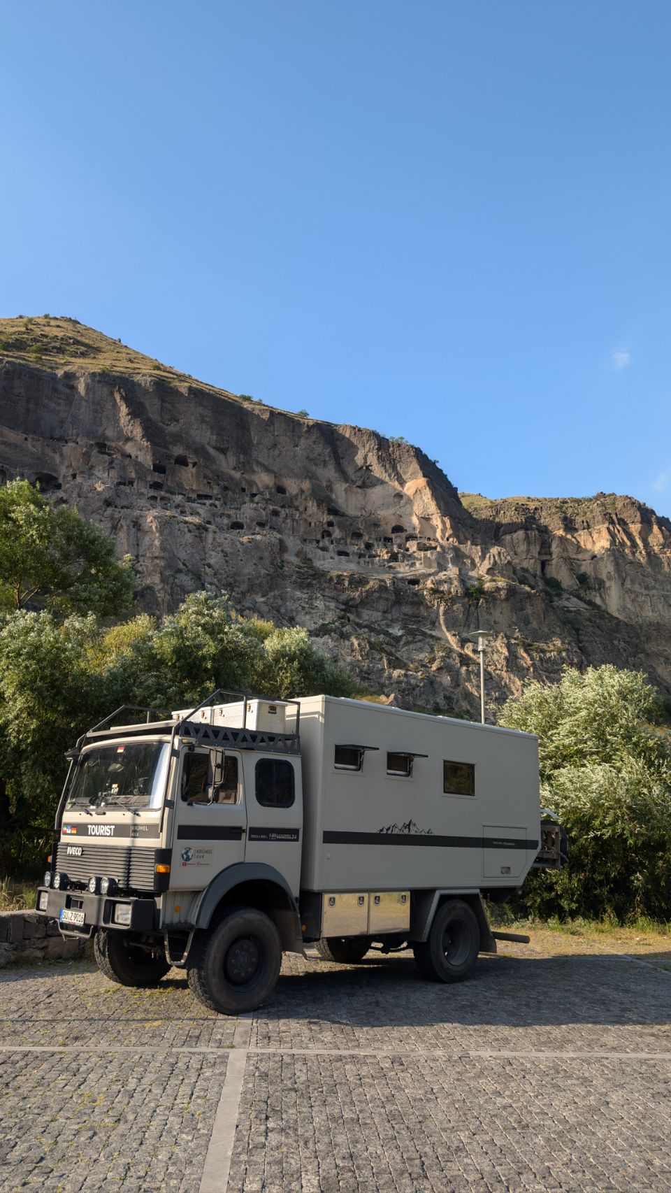 Das Wochenende ist (fast) vorbei und am späten Sonntag Nachmittag fahren wir die letzten Kilometer bis nach Vardzia. Wir wollen auf dem Parkplatz direkt am Eingang zur Höhlenstadt übernachten, damit wir morgen früh – möglichst vor dem großen Schwung (die Busse kommen auch während der Woche…) – alles halbwegs in Ruhe anschauen können.