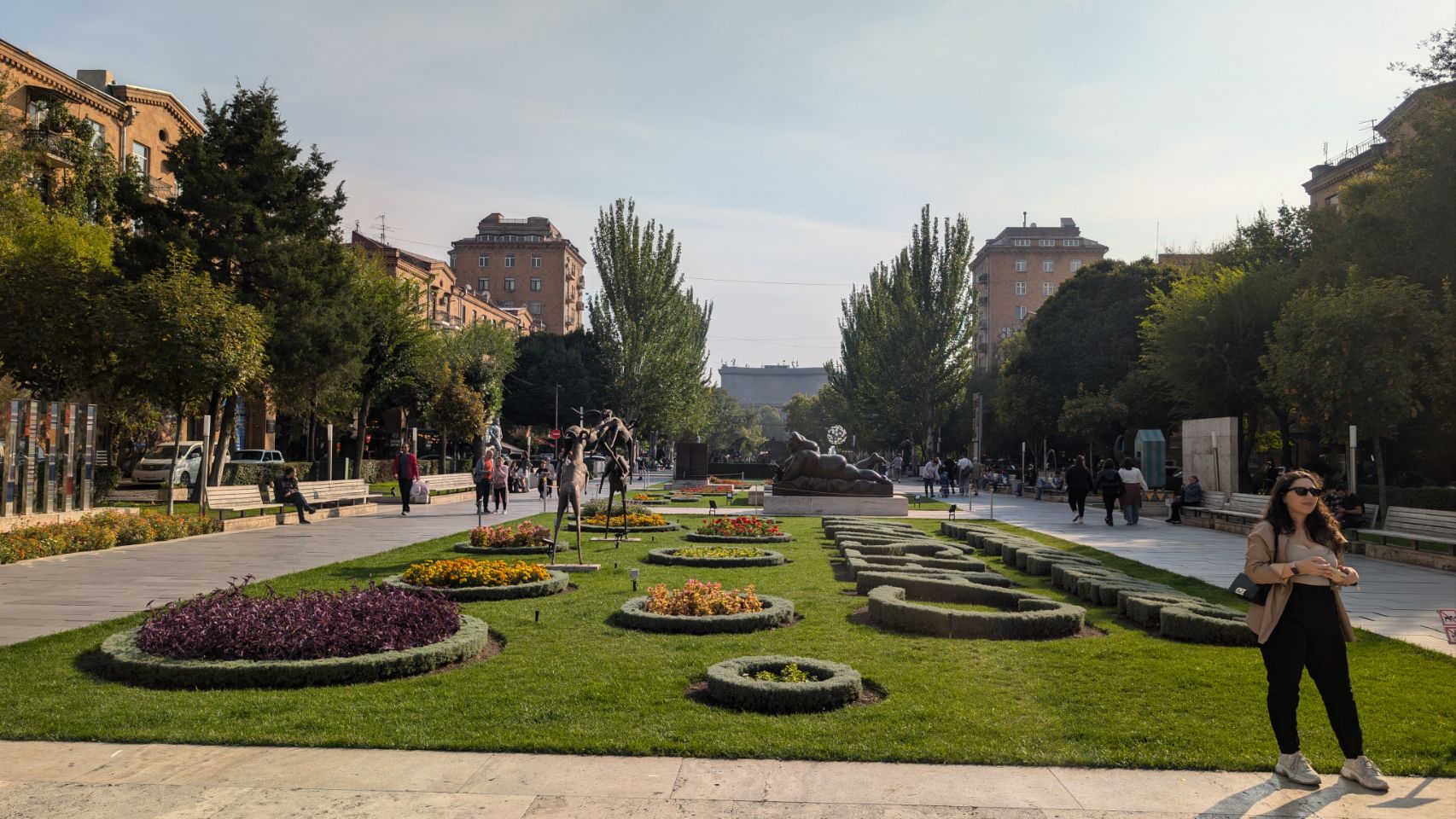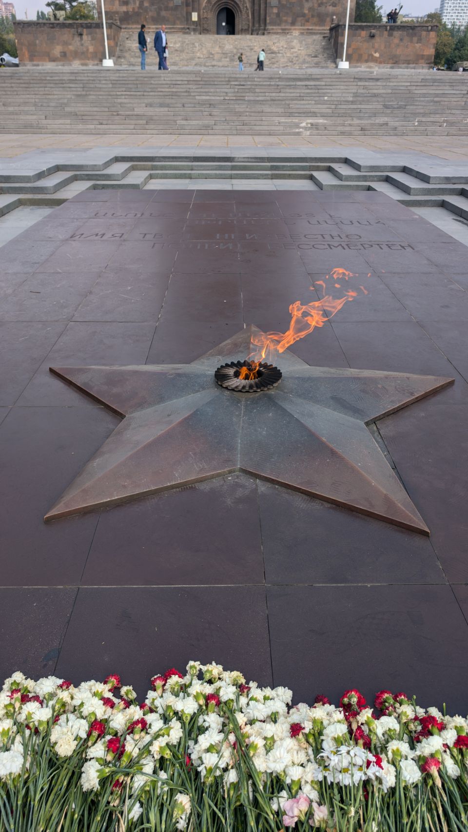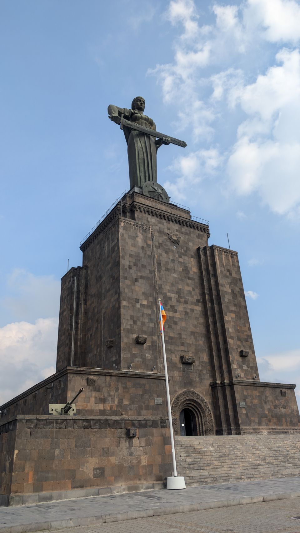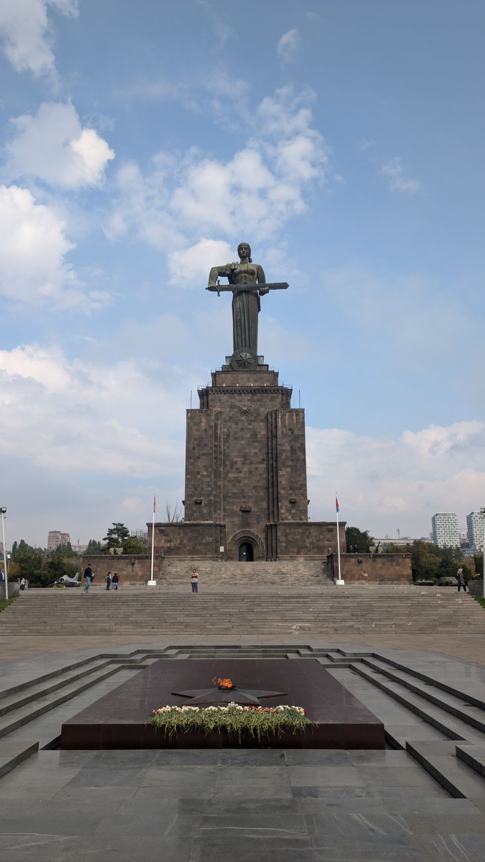Hoch über der Stadt liegt der große Victory Park mit dem Monument der „Mother of Armenia“. Die weibliche Personifizierung Armeniens steht für „Frieden durch Stärke“ und ersetzt seit 1967 die ursprüngliche Statue von Stalin. Im Sockel der Statue, der wie eine einfache armenische Basilika gebaut ist, befindet sich ein Militärmuseum des Verteidigungsministeriums (haben wir allerdings erst im Nachhinein realisiert 🤷🏼♀️), auch auf dem Platz an der Statue sind militärische Objekte ausgestellt.