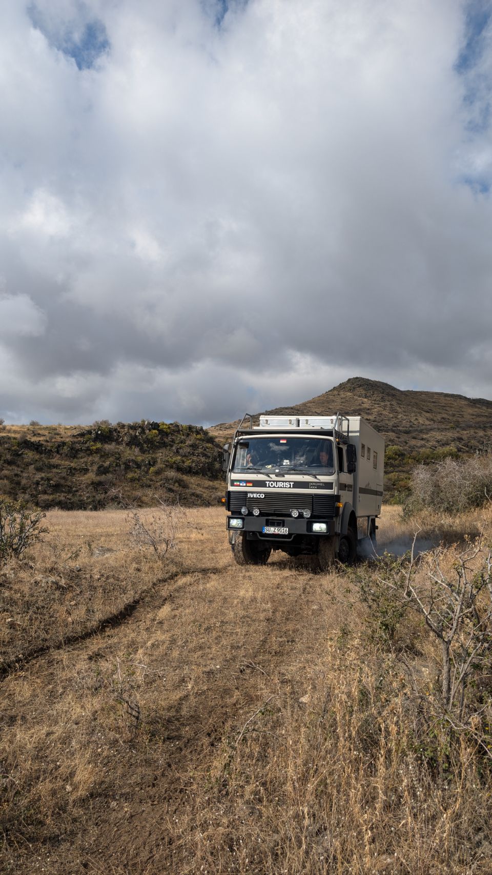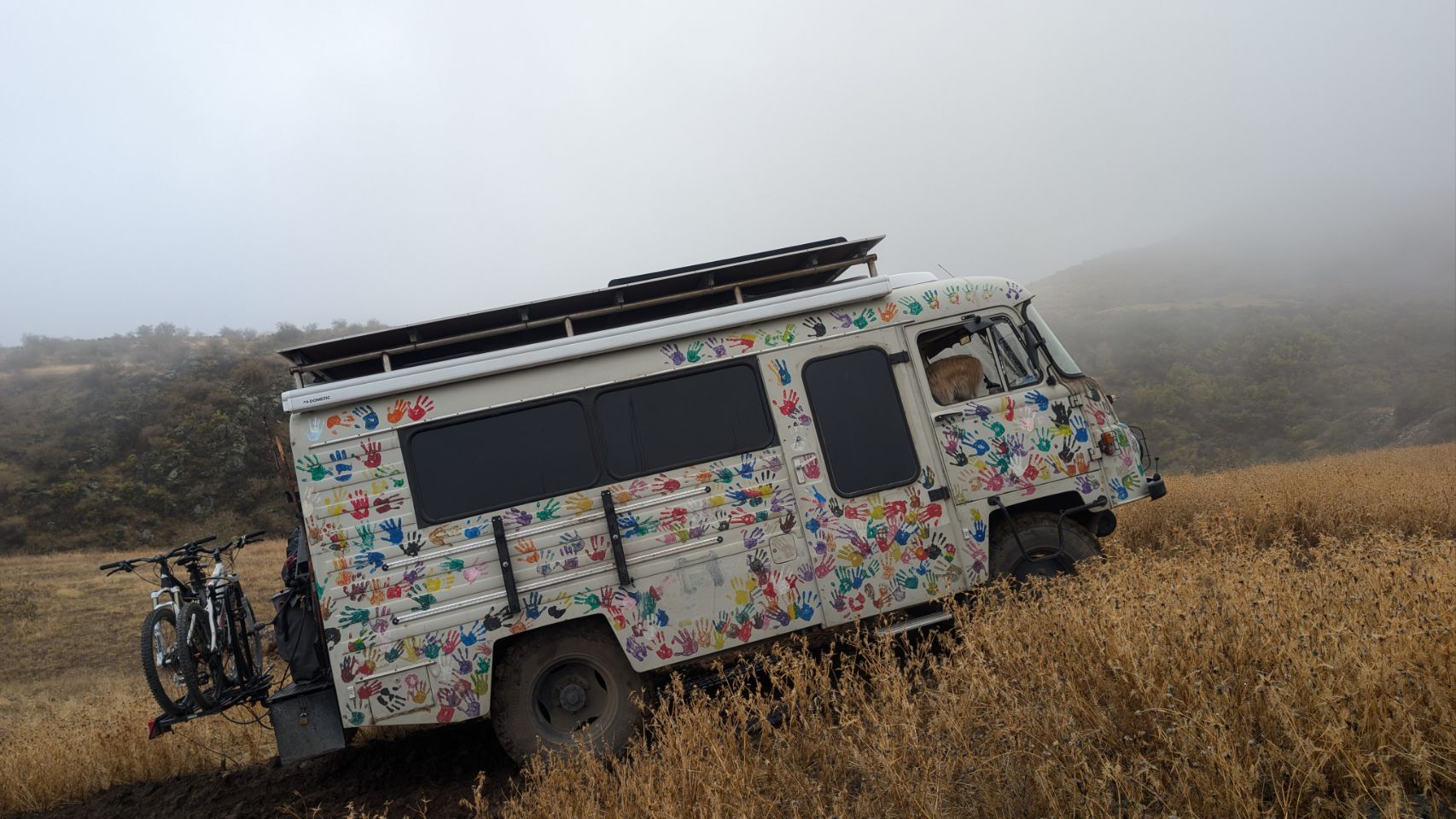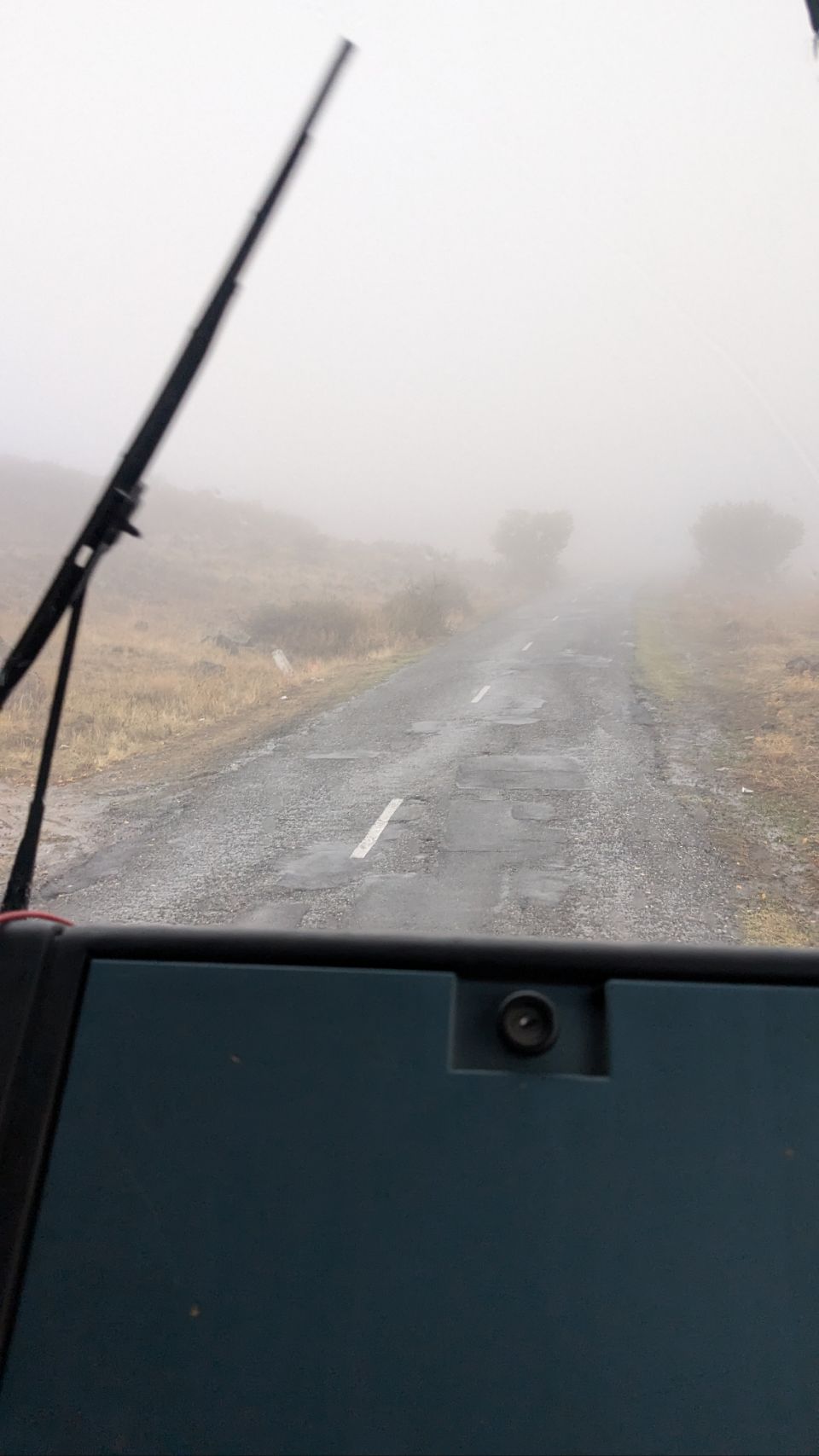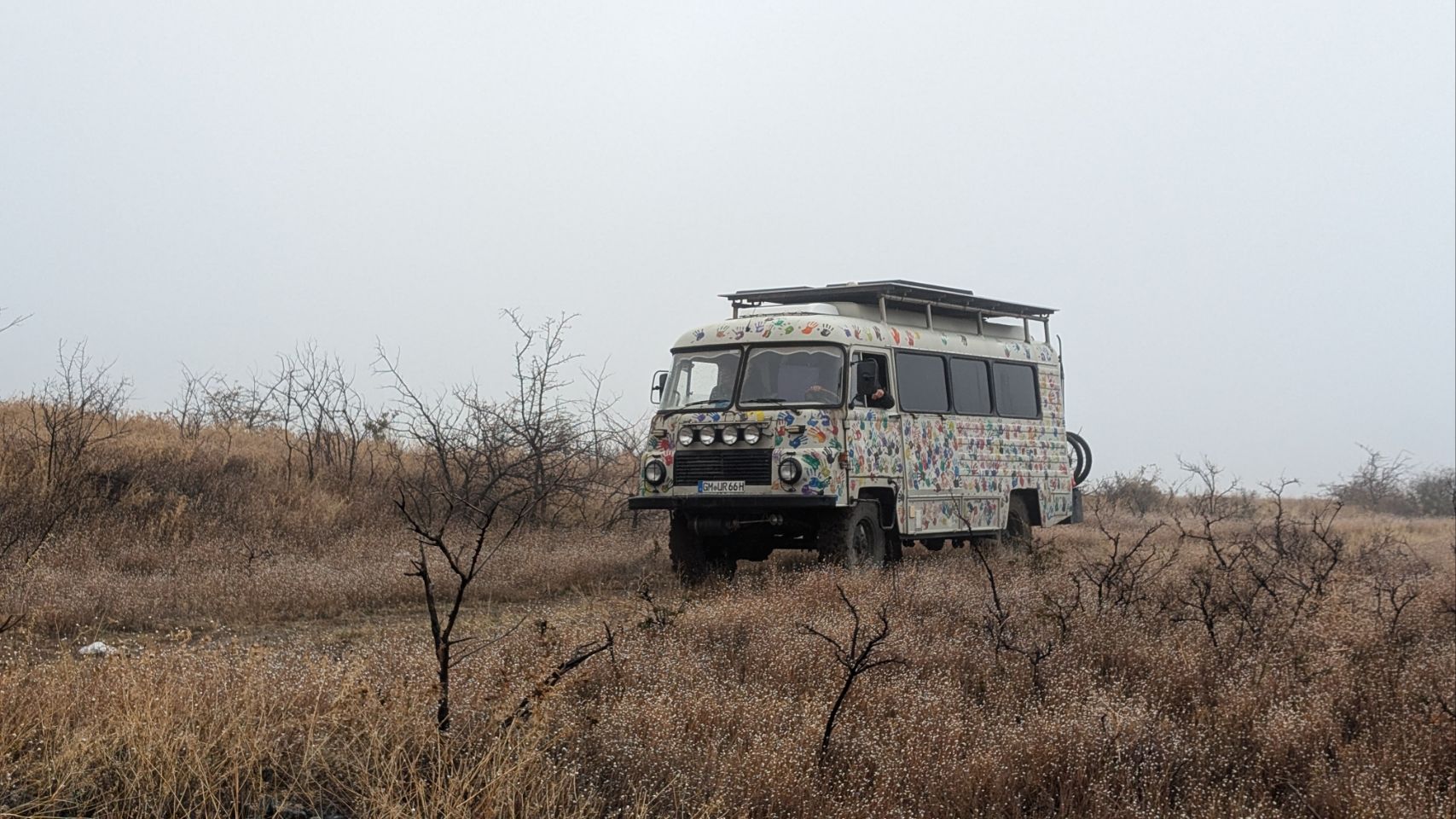 Irgendwie kommen wir aber heil unten an und schreiben kurz an die Tippgeber, dass wir den Platz gefunden haben und in welchem Zustand er gerade ist. Kommt die Antwort zurück: „Wir stehen selber noch da, wo seid ihr denn???“ Die beiden stehen mit ihrem Robur keine 100 m entfernt – so dick ist die Suppe, dass wir sie und sie uns nicht sehen konnten 😆.