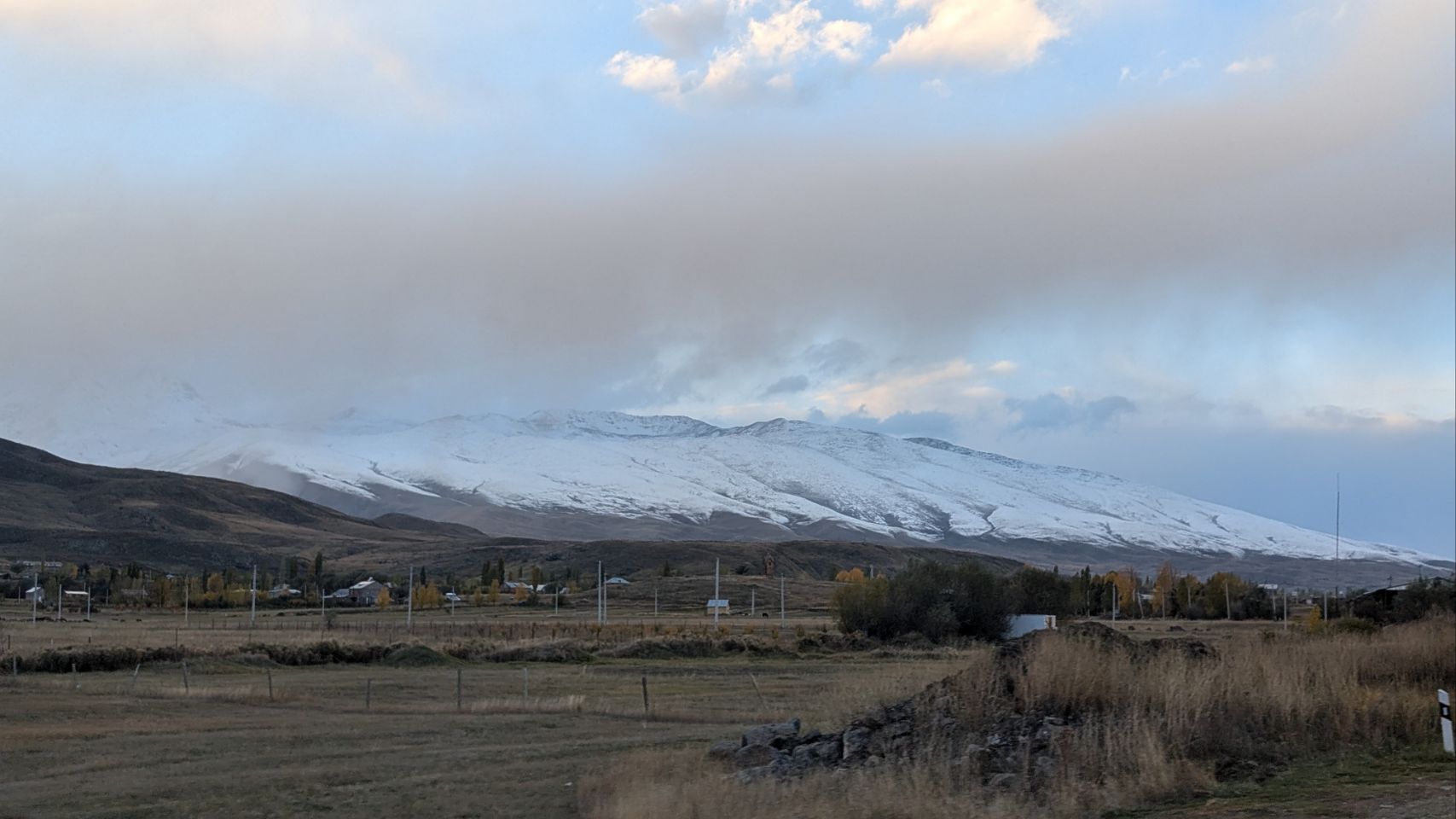 Wir fahren noch etwas weiter als geplant auf der Suche nach einem Nachtplatz (die zuerst angepeilten Plätze in der Nähe des Klosters haben uns nicht so recht gefallen) und landen dann am Aparan Stausee, wo wir uns am Feldrand hinter ein paar Bäumen – und doch nicht ganz ohne Matsch – für die Nacht verstecken.