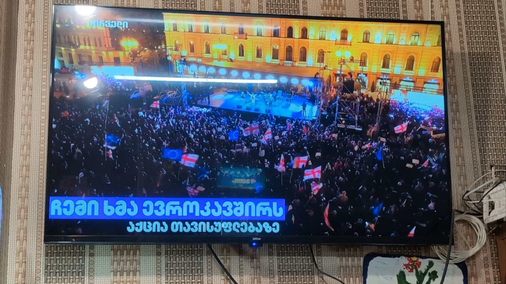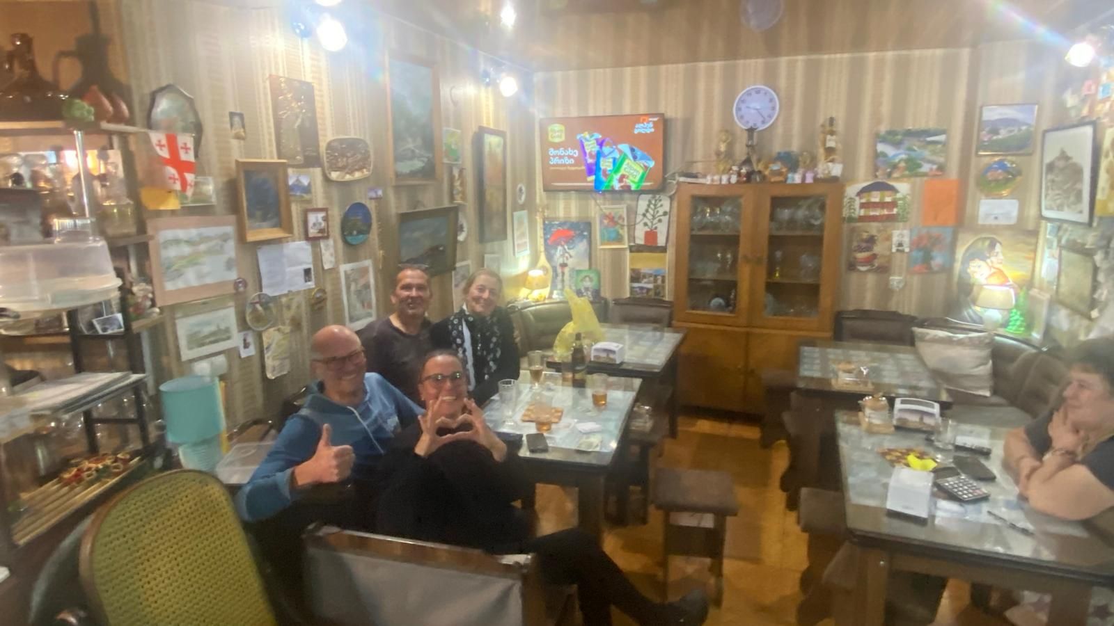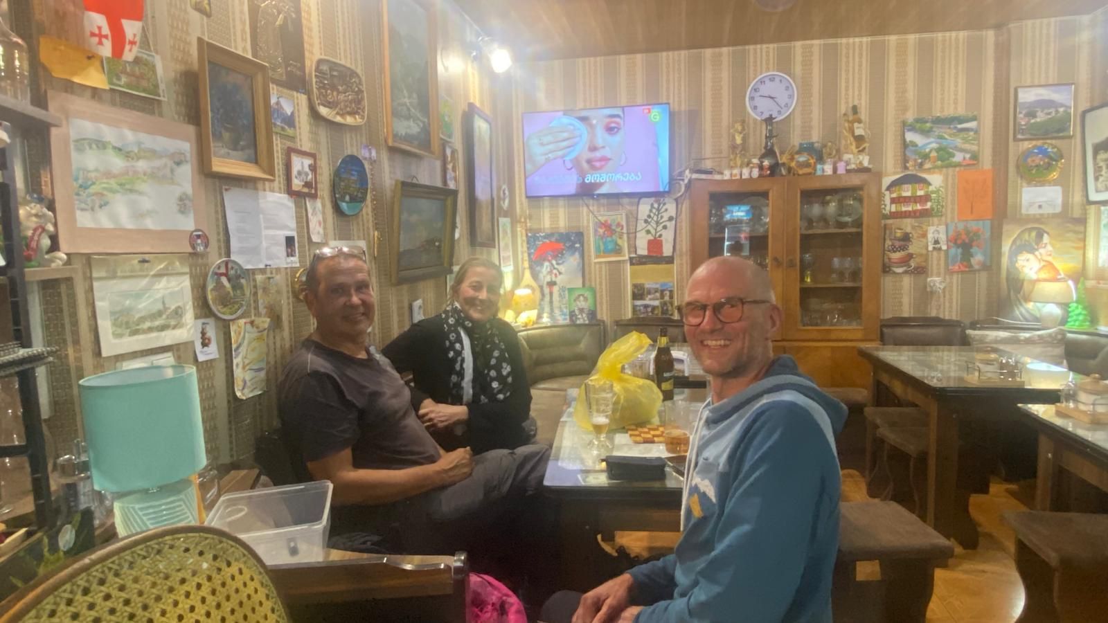 Später, nachdem wir uns im Family Kitchen ordentlich satt gegessen haben und wir noch beim „Verdauungs-Chacha“ als letzte im Laden sitzen, sehen wir im TV den möglichen Grund für das Verkehrschaos: am Wochenende ist in Georgien die Wahl, bei der es um den zukünftigen Kurs der Regierung geht und an diesem Abend gibt es wohl eine riesige pro-europäische Veranstaltung/Kundgebung auch mit bekannten Künstlern mitten in Tiflis. Das erklärt natürlich einiges 🇪🇺.