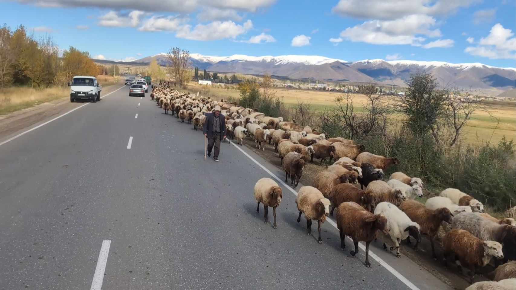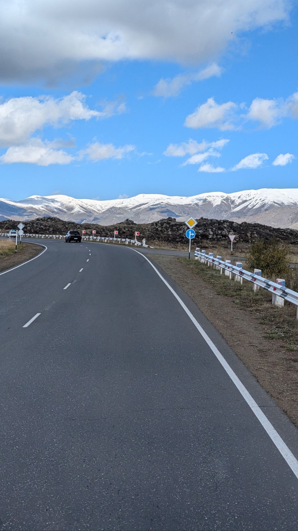 Tagesetappe: viele schneebedeckte Berge, eine Grenze und 230 km bis Tiflis!