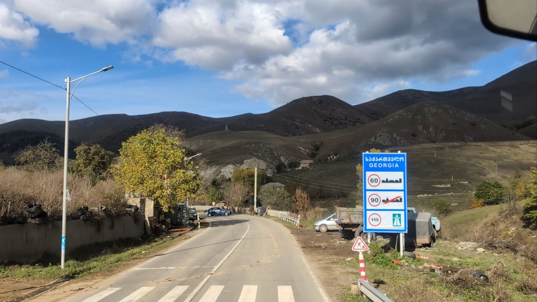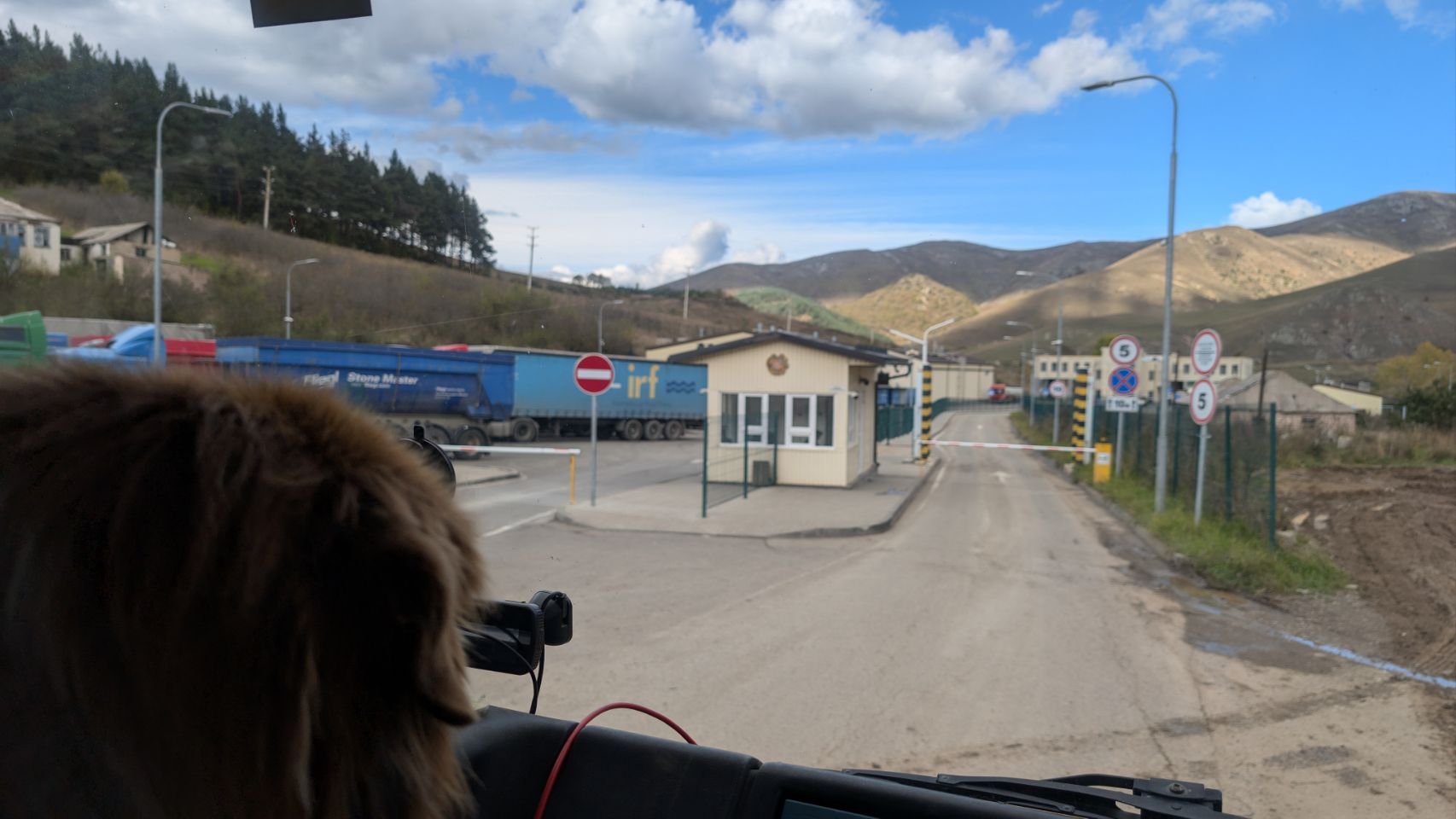 An der Grenze dauert es eine ganze Weile – ungewöhnlicherweise bei der Ausreise aus Armenien. Man schaut sich erst den Kfz-Schein und dann Thoms Reisepass sehr intensiv an, keine Ahnung was die da ewig kontrollieren… 🤔… Ob es Fälschungen sind? 🤷🏼♀️ Letztlich sind sie doch zufrieden und wir dürfen weiter, natürlich nicht ohne insgesamt 3 Sichtkontrollen im Krümel und weiteren Kontrollen von KFZ-Papieren, Führerschein, Pässen und bei der Einreise in Georgien sogar den EU-Tierausweis – bisher das einzige Land auf unseren Reisen, das den Hundeausweis sehen und den Chip auslesen will!