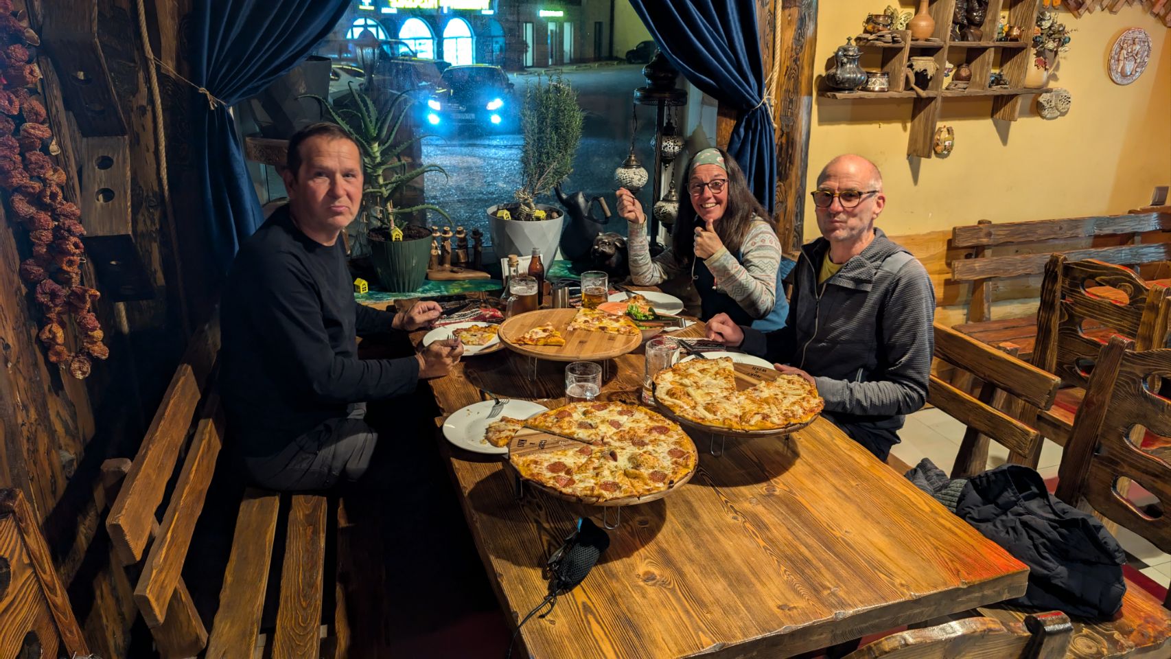 Zum Abendessen treffen wir uns mit Lauri und Peter in „The Old Bar“ – auch das Lokal kennen wir schon – und gönnen uns alle eine leckere 🍕 Pizza! Irgendwie hat heute keiner mehr Lust georgische Küche 🤷🏼♀️.