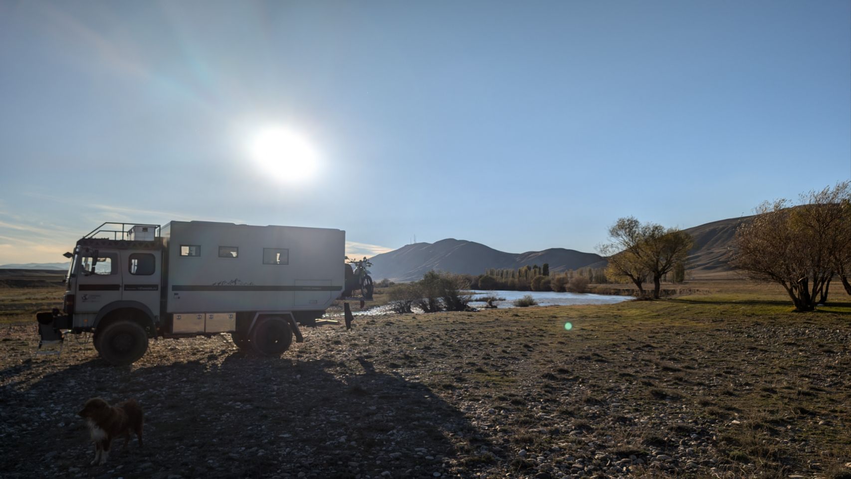 Wir landen in Köprüköy am Fluss Aras an einem richtig coolen Spot, der eigentlich für eine kurze „Zwischenübernachtung“ viel zu schade ist. Solange es geht, sitzen wir noch draußen und genießen die Sonne, aber nach 17 Uhr 🌅 wird es ziemlich schnell ziemlich kalt 🥶 – in der Nacht ist es nur noch knapp über 1° C – so dass wir tatsächlich nur für die eine Nacht hier bleiben.
