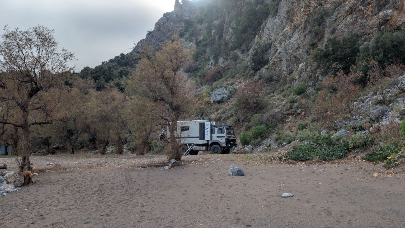 Später steht noch ein weiteres Wohnmobil (Kommentar Thom: geile Karre…) aus der Schweiz weiter vorne.
