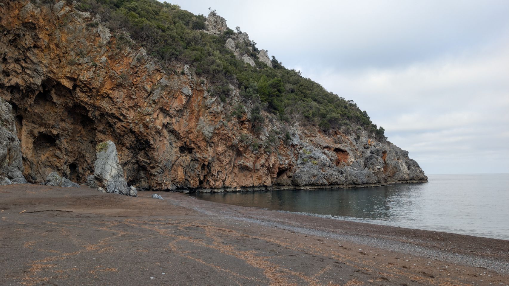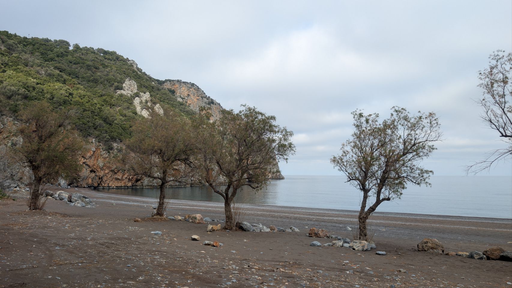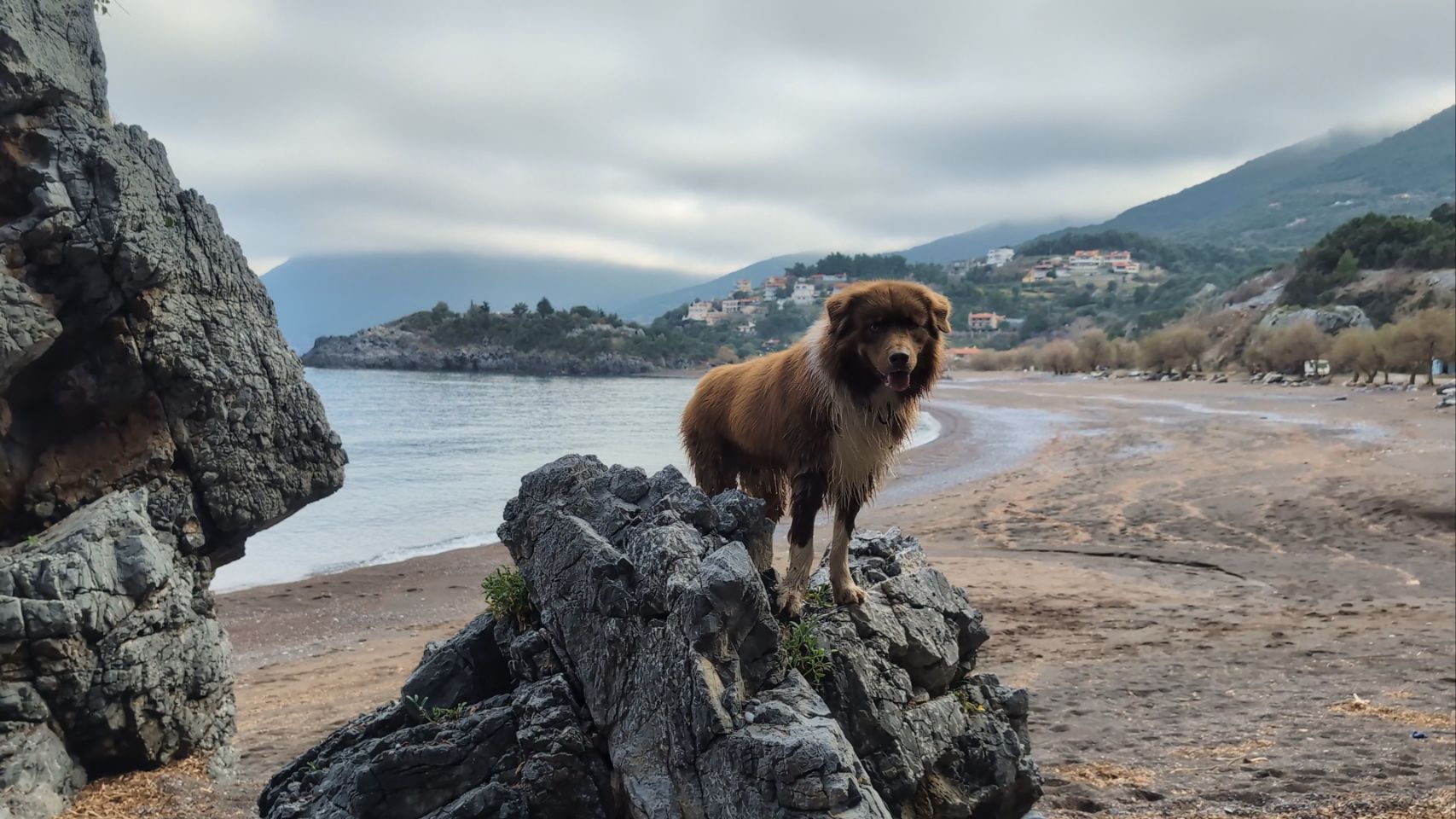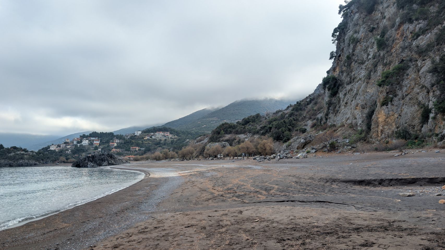 Am Ende der Strecke liegt der Limnionas Beach bei einer kleinen Siedlung mit wahrscheinlich hauptsächlich Ferienhäusern. Es ist aber nix los und außer zwei Spaziergängern ist am Strand niemand unterwegs – nicht mal streundende Hunde oder Katzen.