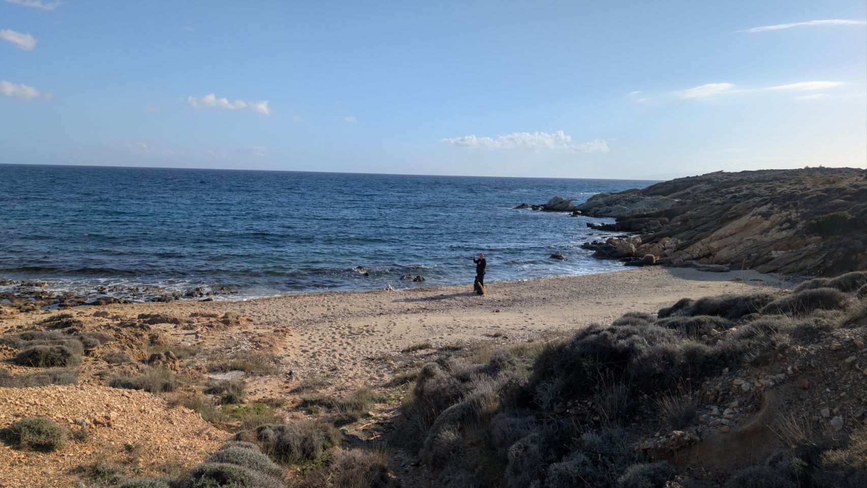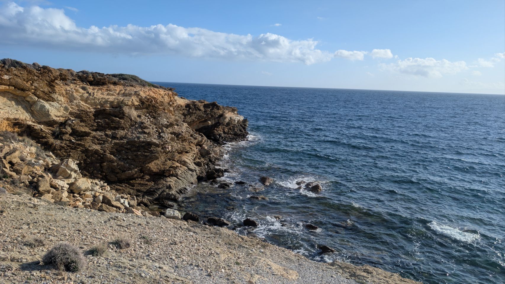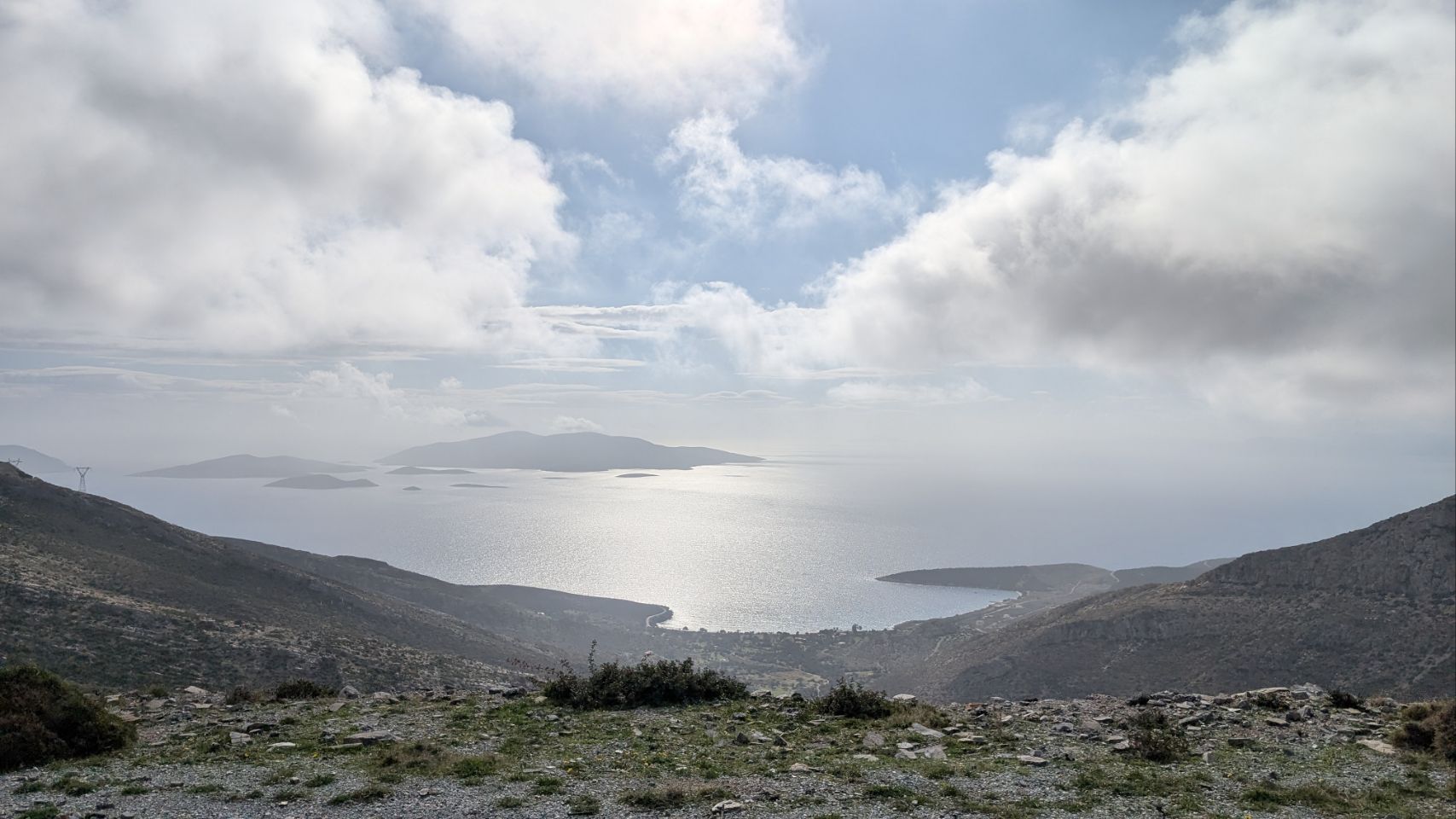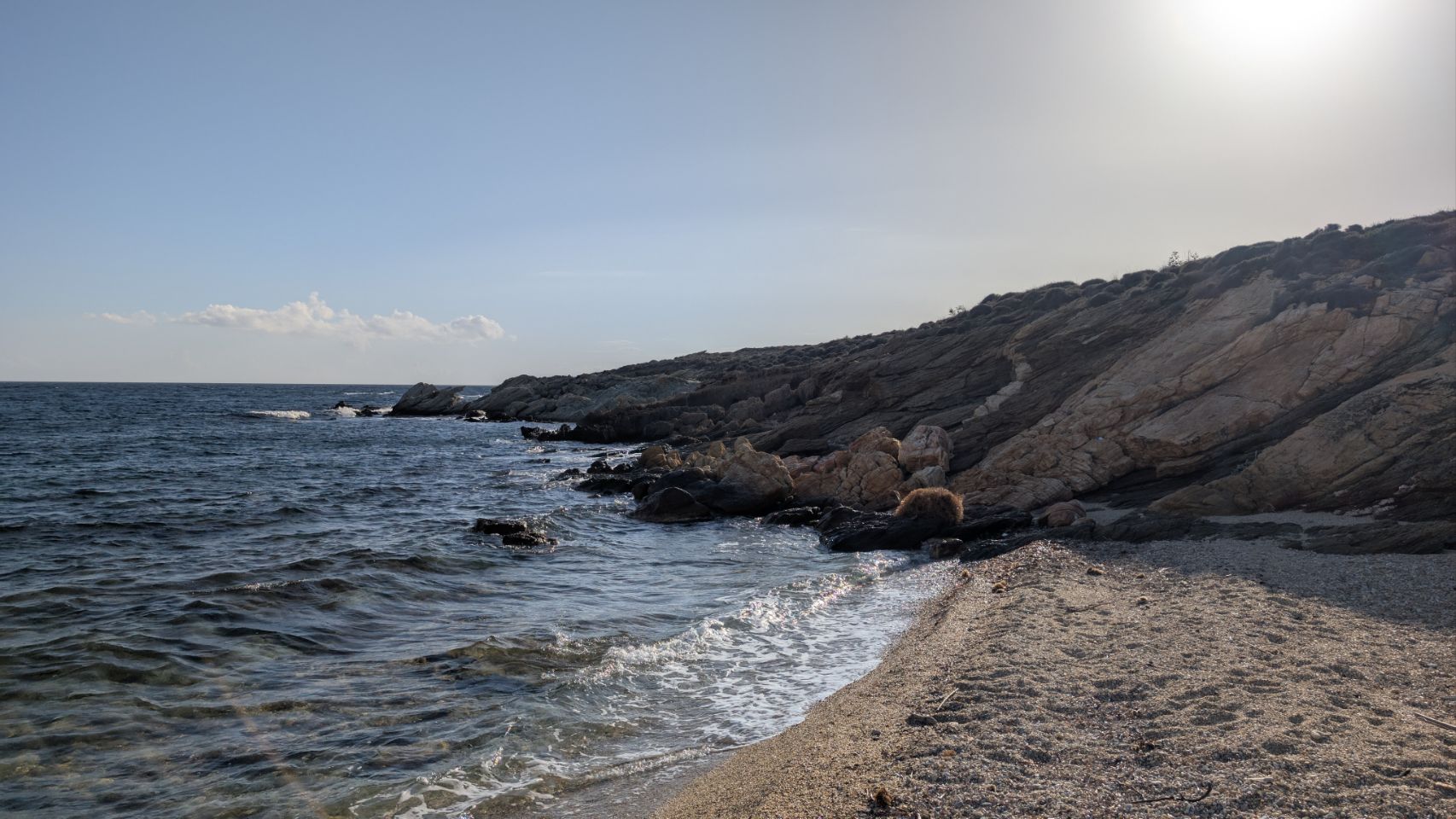 Von Agios Dimitrios sind es nochmal knapp 60 km bis zur Südspitze, die Strecke führt hauptsächlich an der Küste lang. Nachdem wir den Schwerlast-Konvoi in Nea Styra losgeworden sind, geht es auch wieder ein bisschen flotter voran.