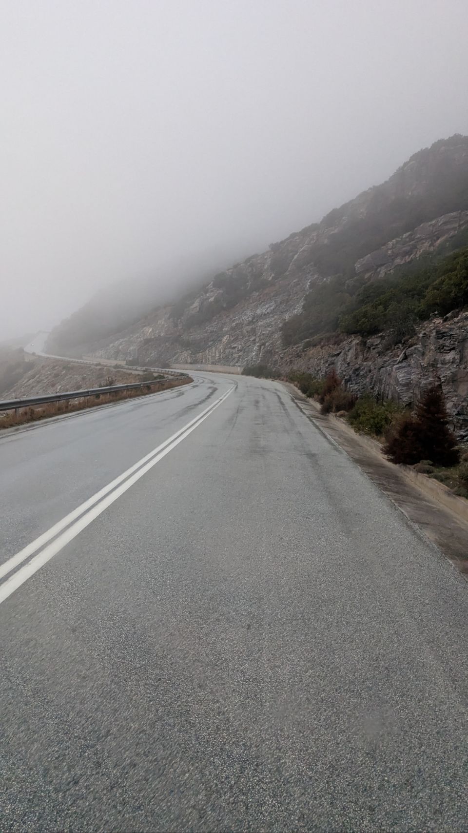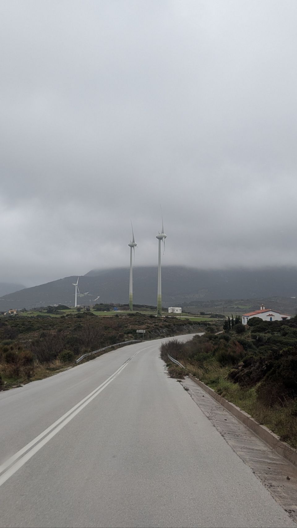 Zur Strafe müssen wir im strömenden Regen Wasser tanken und fahren dann noch weiter bis Aliveri.