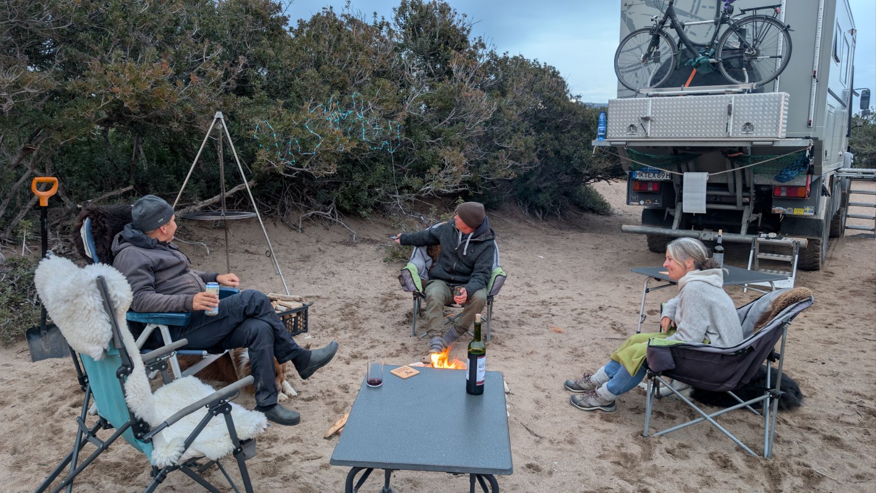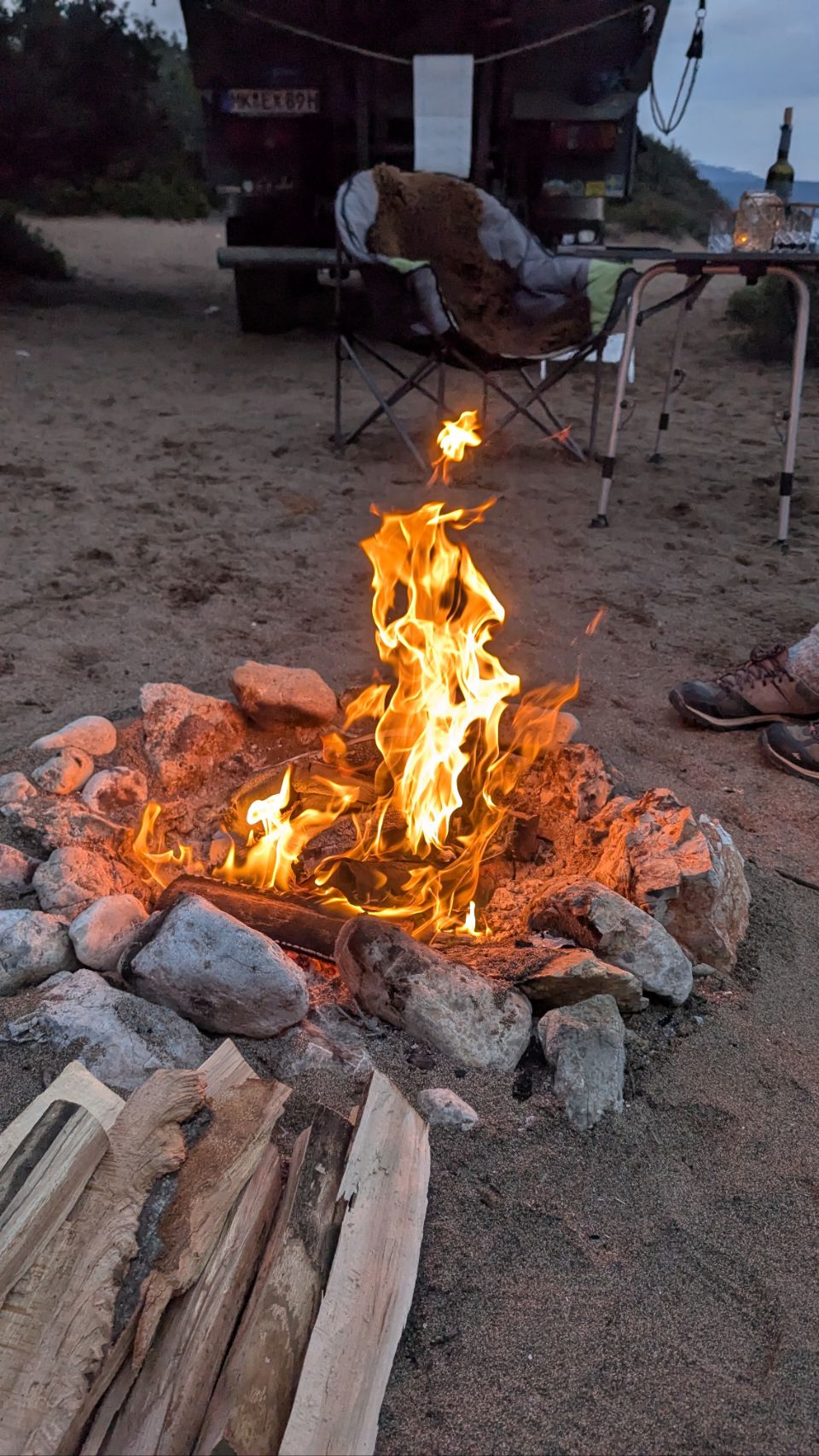 Ungefähr 100 km in Richtung Süden, dann sind wir wieder auf der Peloponnes und wir feiern das Wiedersehen natürlich mit einem schönen Lagerfeuer 🔥.