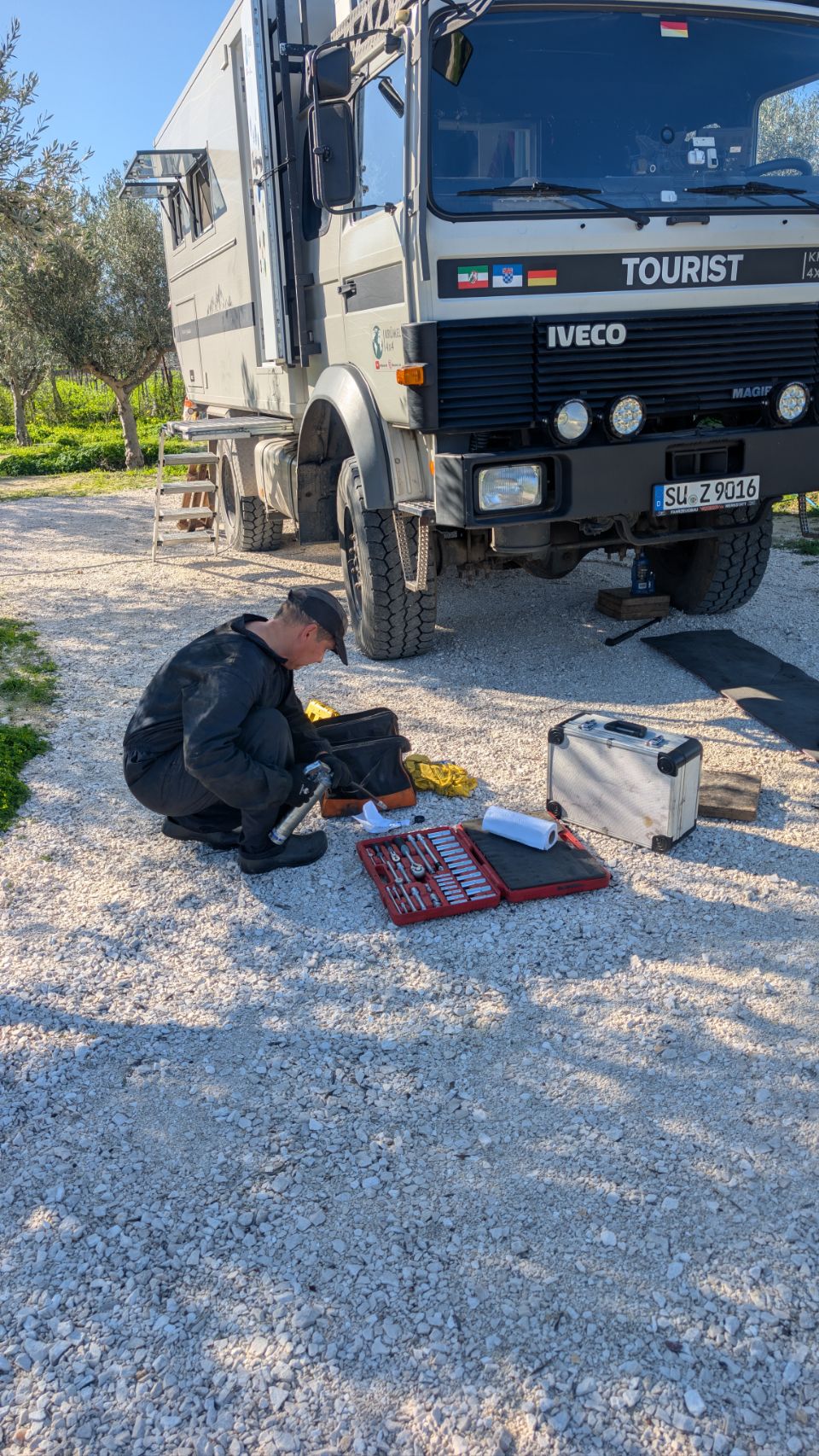 Heute wird mal wieder ein bisschen an den Fahrzeugen gebastelt – sowohl bei Reisebiwak als auch bei uns.