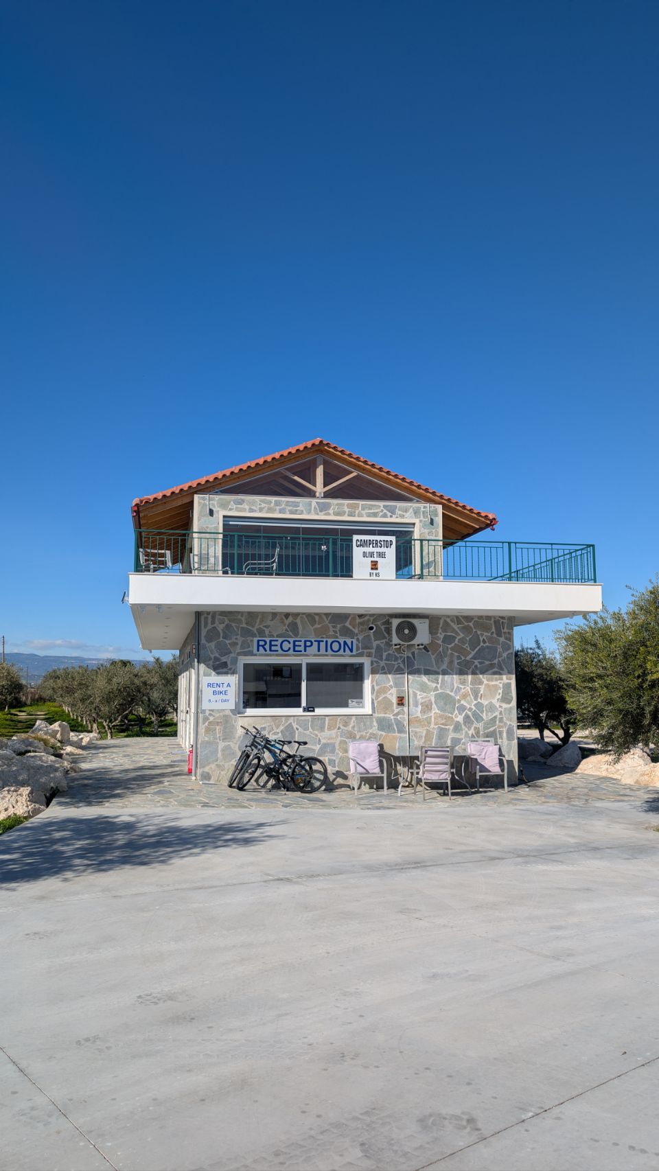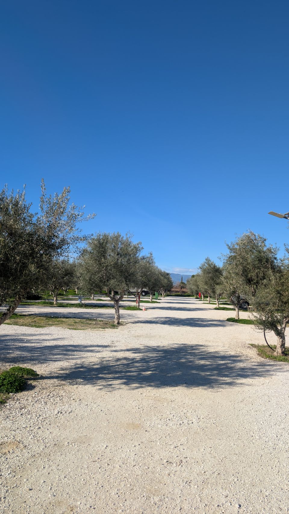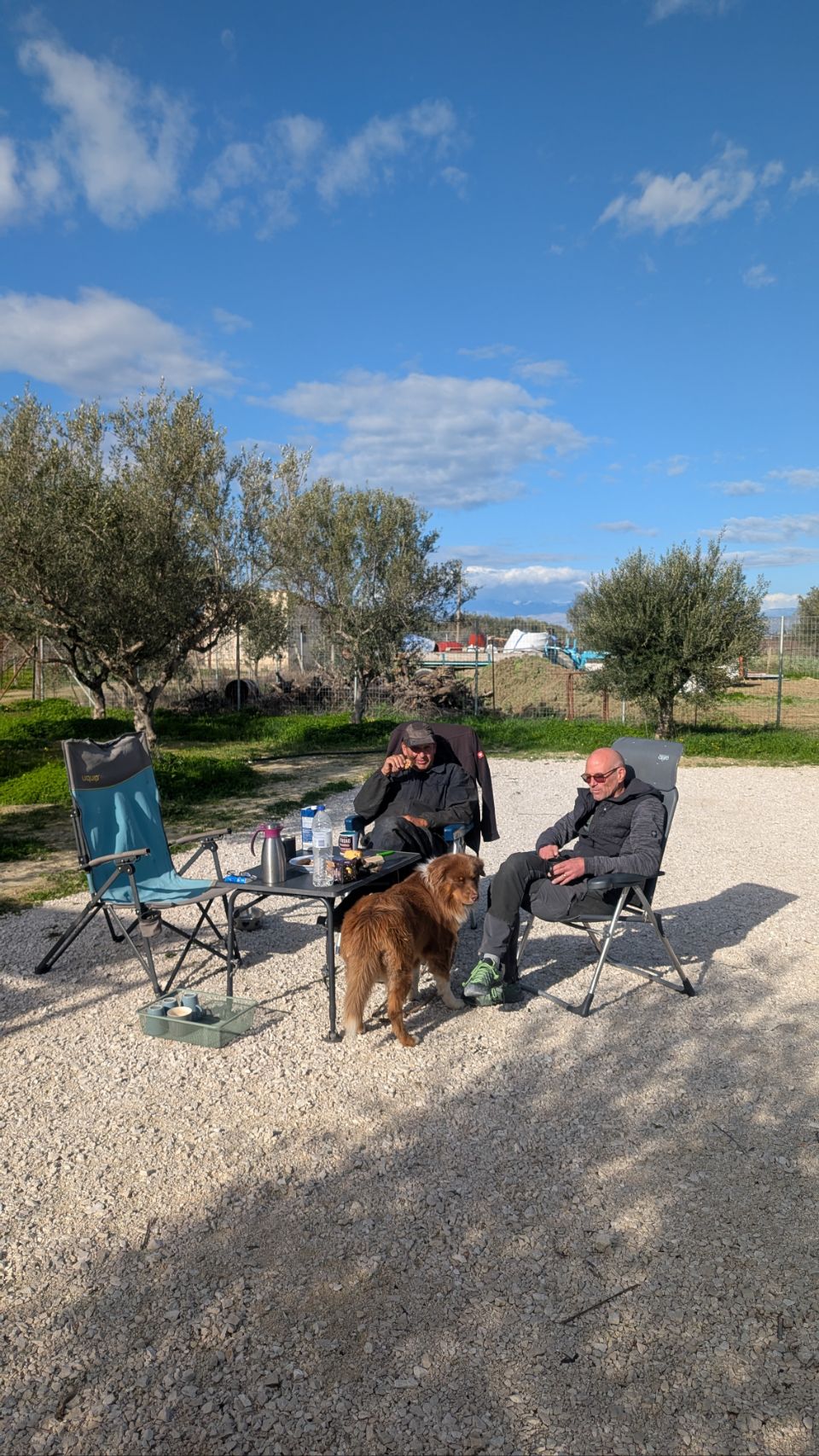 Der schön unter Olivenbäumen angelegte Platz ist so gut wie neu und gehört unserem Kumpel Dirk vom Motordom aus Troisdorf und seiner Frau Katja, die mittlerweile in Griechenland leben und sich toll um alle und alles kümmern.