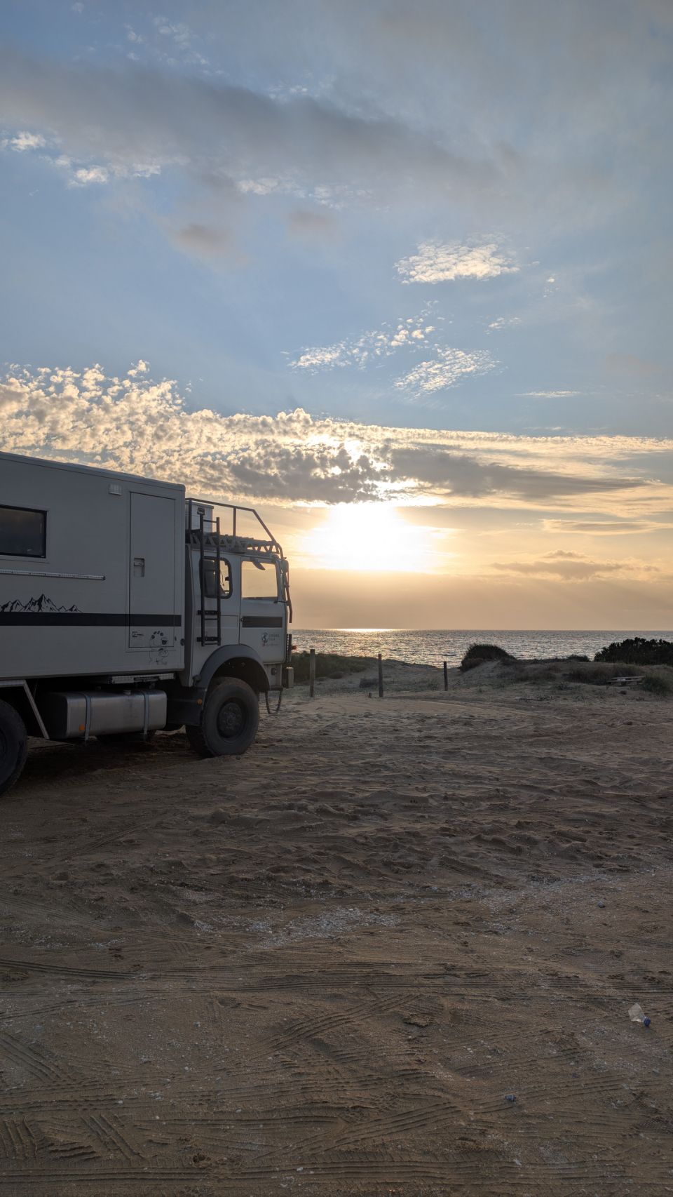 Eine ganze Woche verbringen wir hier am Kounoupelaki Beach – bis zum 31. Januar. In der ersten Nacht sind wir hier noch alleine…