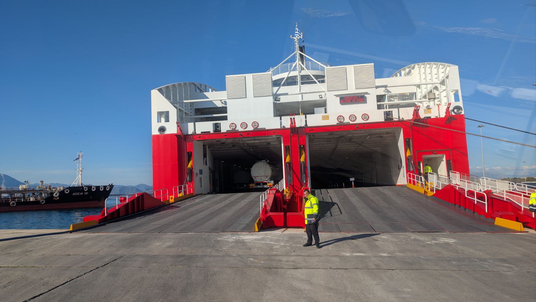 Ein letzter Blick zurück 😢 jetzt heißt es wirklich Abschied nehmen 🙋🏼♀️🙋🏻♂️. Noch ca. 50 km bis zur Fähre in Patras, am Ticketoffice einchecken, warten und dann rauf auf die Superfast III. Klappt alles reibungslos!