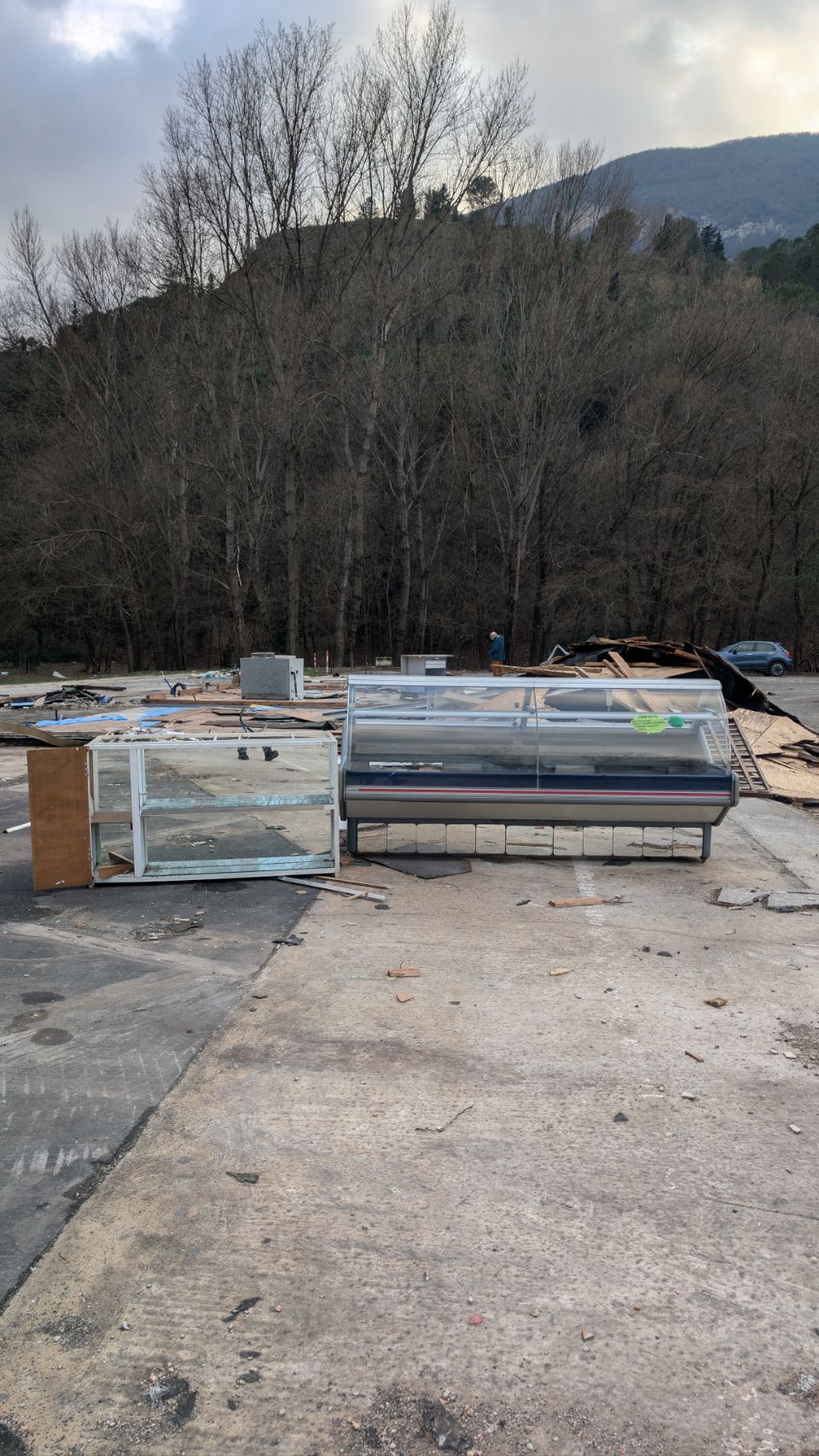 Hier war mal ein großer Parkplatz für die 1971 entdeckte „Grotta di Frasassi“, eines der größten Karsthöhlensysteme in Europa, der aber aktuell anscheinend rückgebaut wird bzw. einer neuen Eisenbahnstrecke weichen muss.
