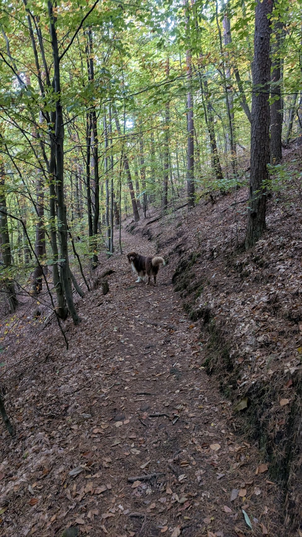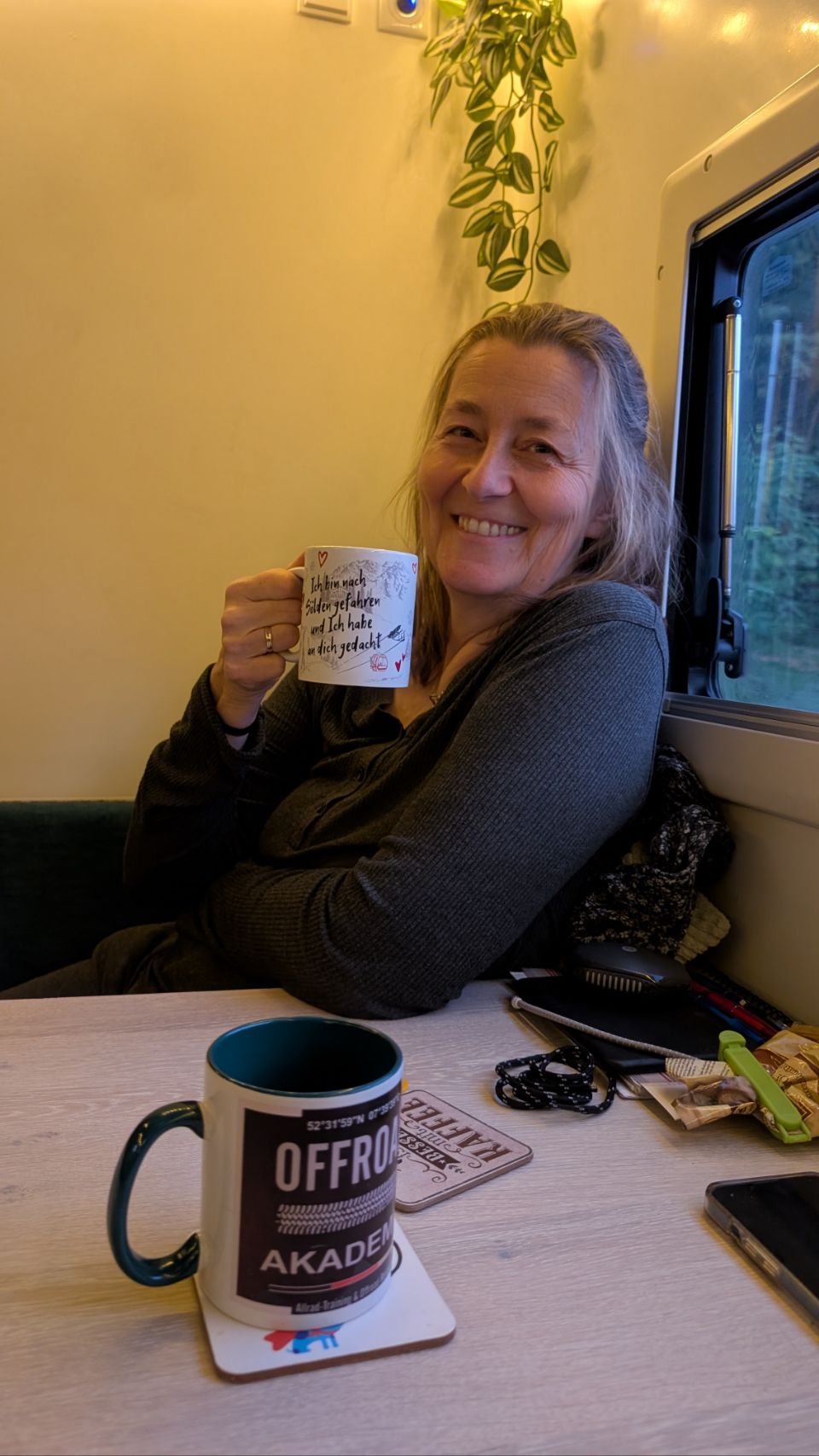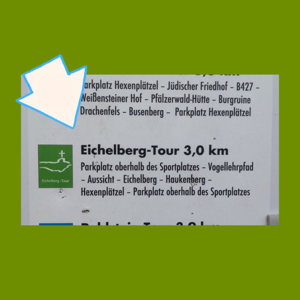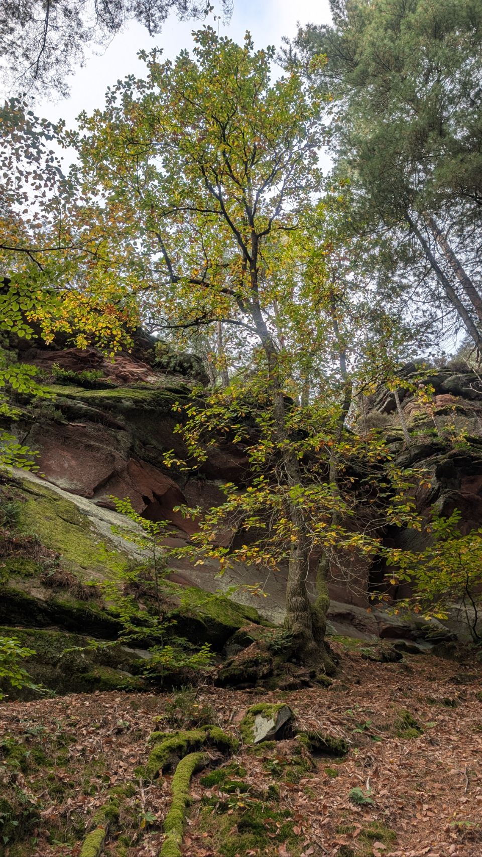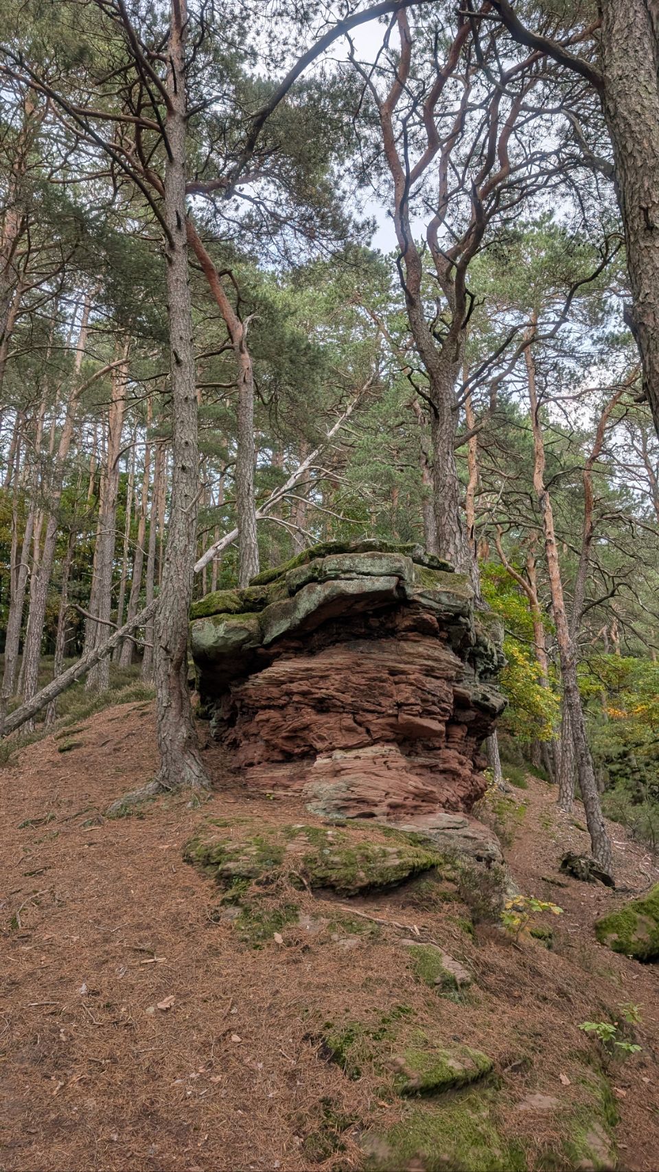 Endlich! Wir sind unterwegs – aber jetzt wirklich 🤩. Die ersten knapp 300 km sind geschafft und wir landen im Dahner Felsenland. Nachdem wir eine Runde über das Haupt-Parkplatz-Areal am Felsenbad gedreht haben (viele Autos, Tagesgäste, Wohnmobile, 12 Euro plus Kurtaxe für die Nacht) was uns nicht so richtig anlacht, finden wir einige Kilometer weiter einen kleinen ruhigen und sogar kostenfreien Übernachtungs(park)platz am Sportplatz des SC Busenberg 🤭… Nee echt, so heißt der wirklich. Der Ort auch. Und außerdem startet hier der Busenberger Holzschuhpfad 🥾🥾, ein sogenannter Premium-Wanderweg, über 24 km und nicht so ganz einfach. Naja, es ist schon nach 16 Uhr, deswegen begnügen wir uns alternativ mit der Eichelbergtour: ein sehr schöner 3 km langer Spaziergang durch den herbstlichen Wald vorbei am Aussichtspunkt Eichelberg mit Blick ins Tal und im Gegensatz zu der Hauptmeile sind hier auch nur ganz wenige Leute unterwegs. Für uns tatsächlich die bessere Alternative 🙂.