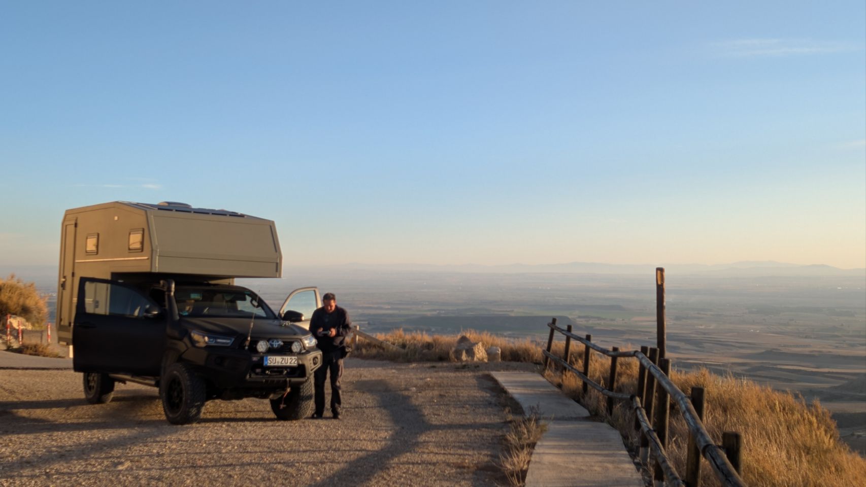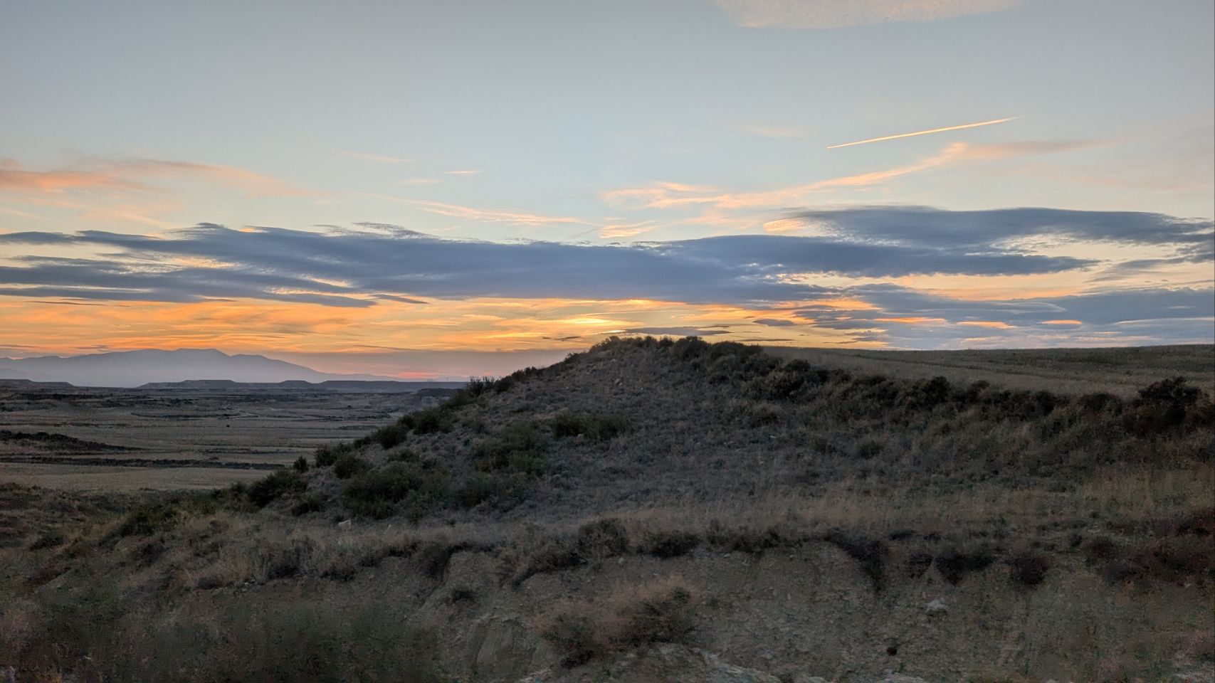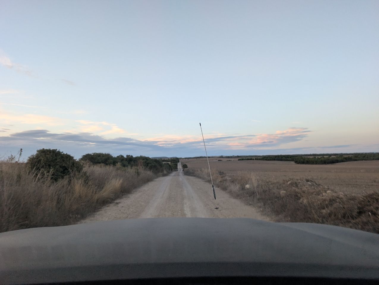 Mit dem letzten Licht der untergehenden Sonne verlassen wir die Bardenas Reales und müssen uns (schon wieder) im Dunkeln unseren Schlafplatz suchen…