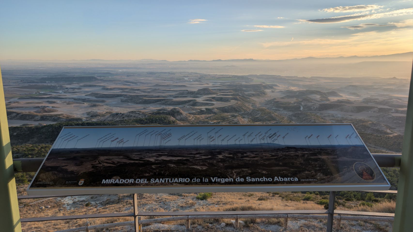 Wir fahren hoch zum Santuario de Sancho Abarca (die Kirche wurde 1670 – 1703 erbaut), im ehemaligen Gasthaus ist jetzt ein 2-Sterne- Hotel und Wallfahrtsort untergebracht. Von dort hat man einen phantastischen Ausblick auf die umliegenden Bergrücken, Gipfel und Schluchten.