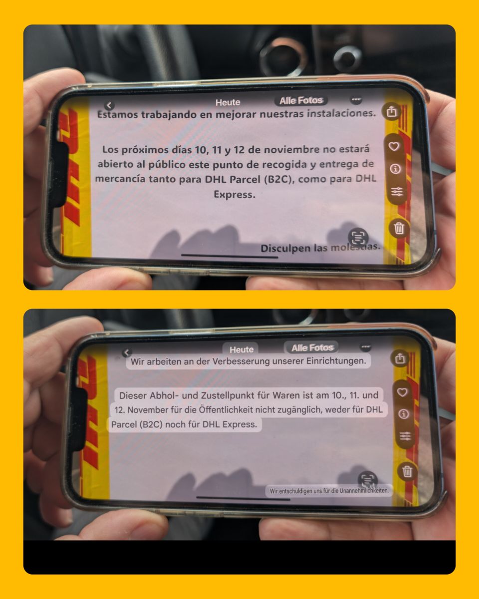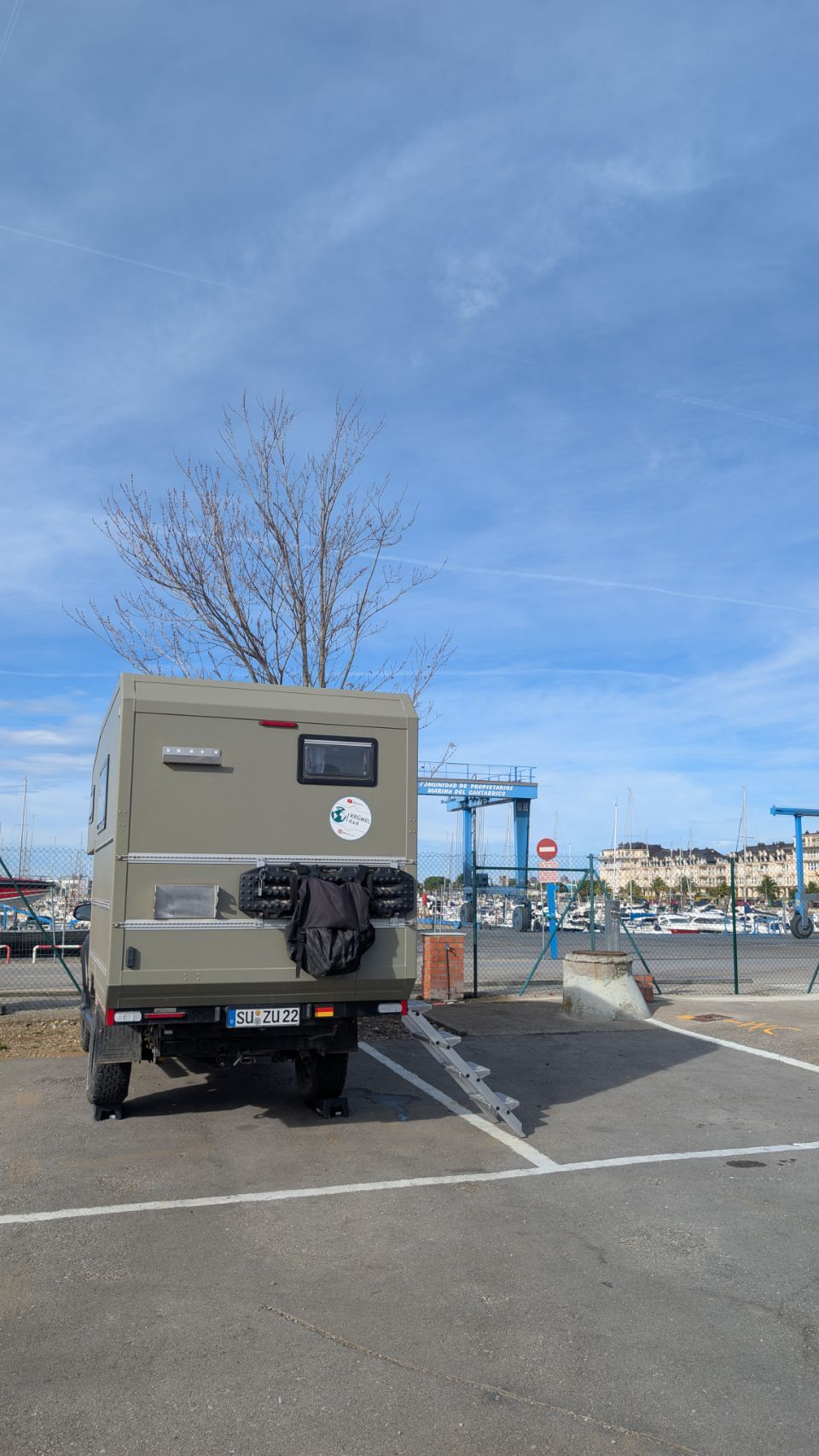 Nach Santander fahren wir ja eigentlich nur, weil wir uns von Nik ein Paket mit neuen Verschlüssen für unsere Schrankklappen (von den vorhandenen sind ja inzwischen schon 4 Stück kaputt gegangen und mit offenen Schränken Offroad fahren ist nicht so eine gute Idee 🫣) haben schicken lassen und das im DHL Shop abholen wollen. Es ist noch unterwegs, aber Thom will es sicherheitshalber schon mal vor Ort in dem Shop avisieren. Und steht vor verschlossener Tür. Na toll: wegen Umbaumaßnahmen 3 Tage geschlossen. Aber auch genau ab heute! Keine weitere Info… Na, was ist das denn für ein Sch… Versanddienstleister 😂😱🫣…