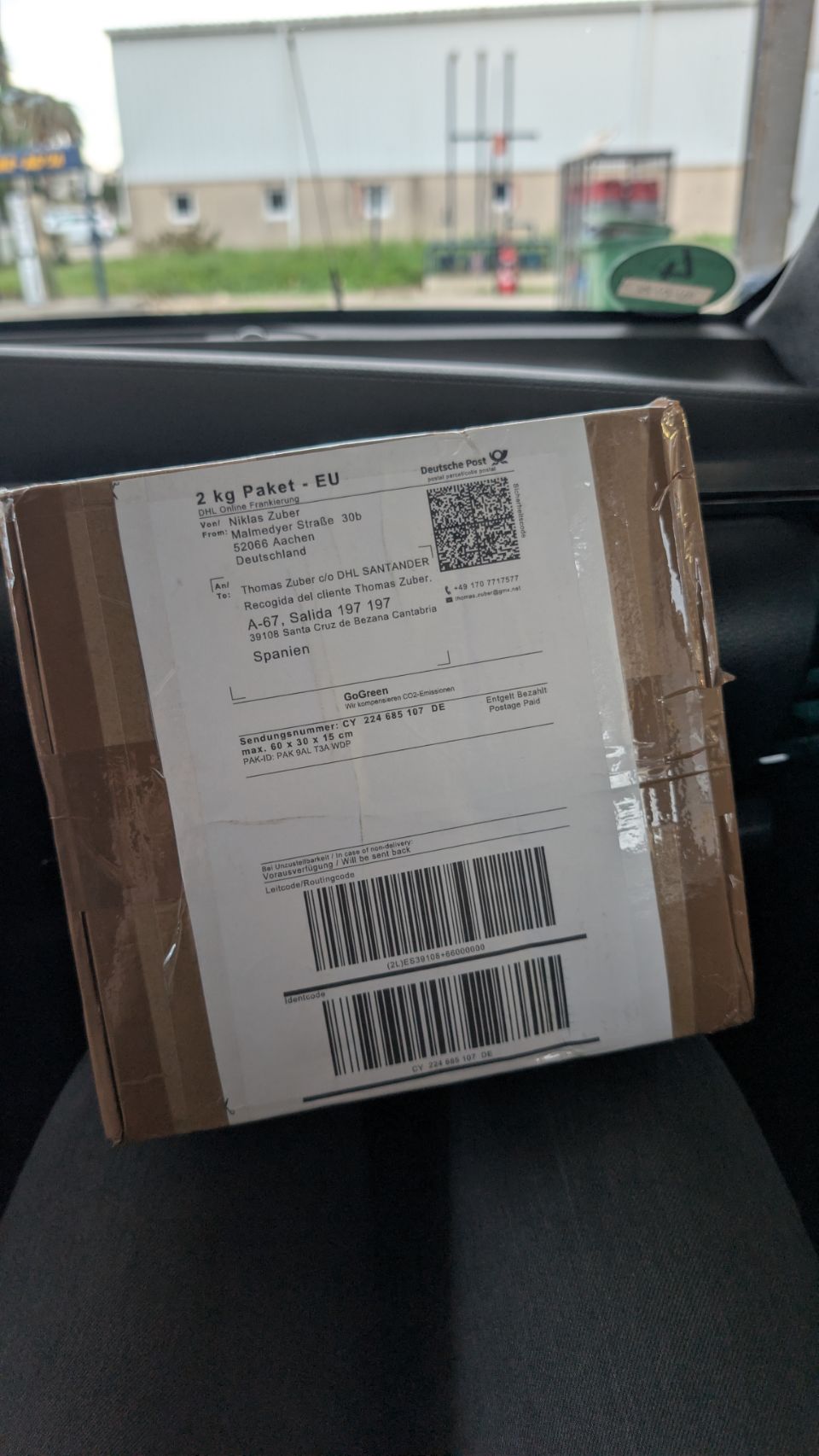 Glücklicherweise findet sich später online die Option, das Paket an eine andere Abholsstelle umzuleiten und das machen wir dann auch und zwar an eine ganztägig geöffnete Tankstelle. Trotzdem braucht es noch zwei Anläufe und fast den ganzen nächsten Tag (mit zwischenzeitlichem Einkaufen), bis wir den heiligen Gral schließlich in den Händen haben 📦🙏🏻.