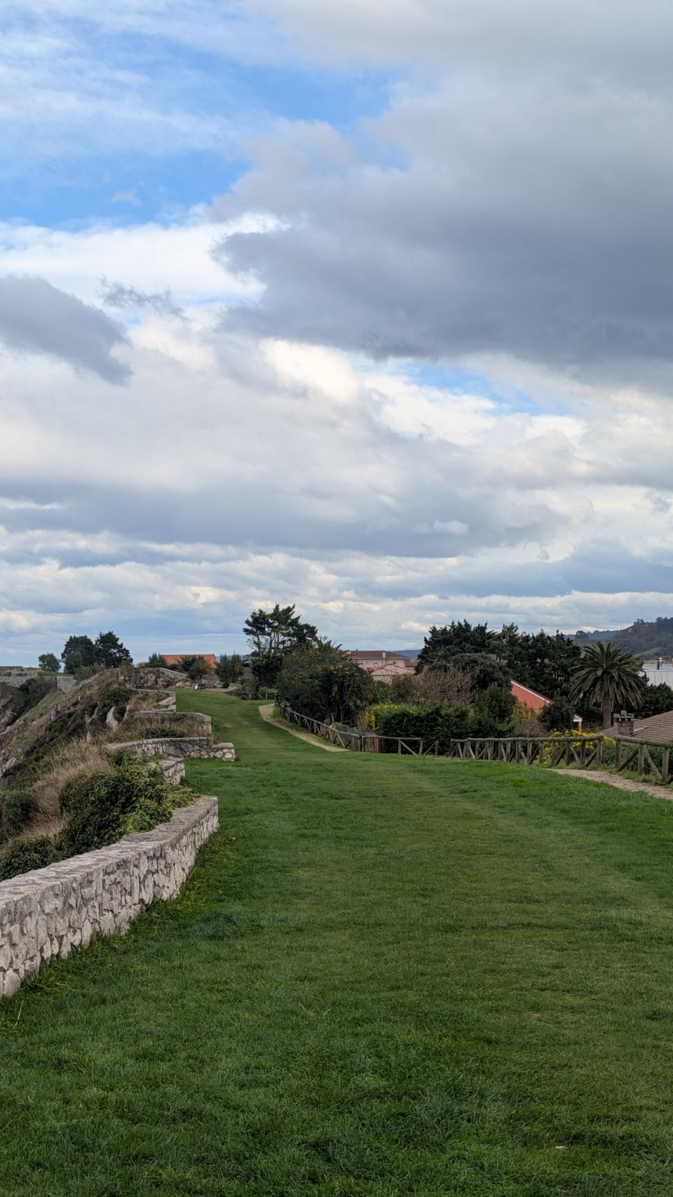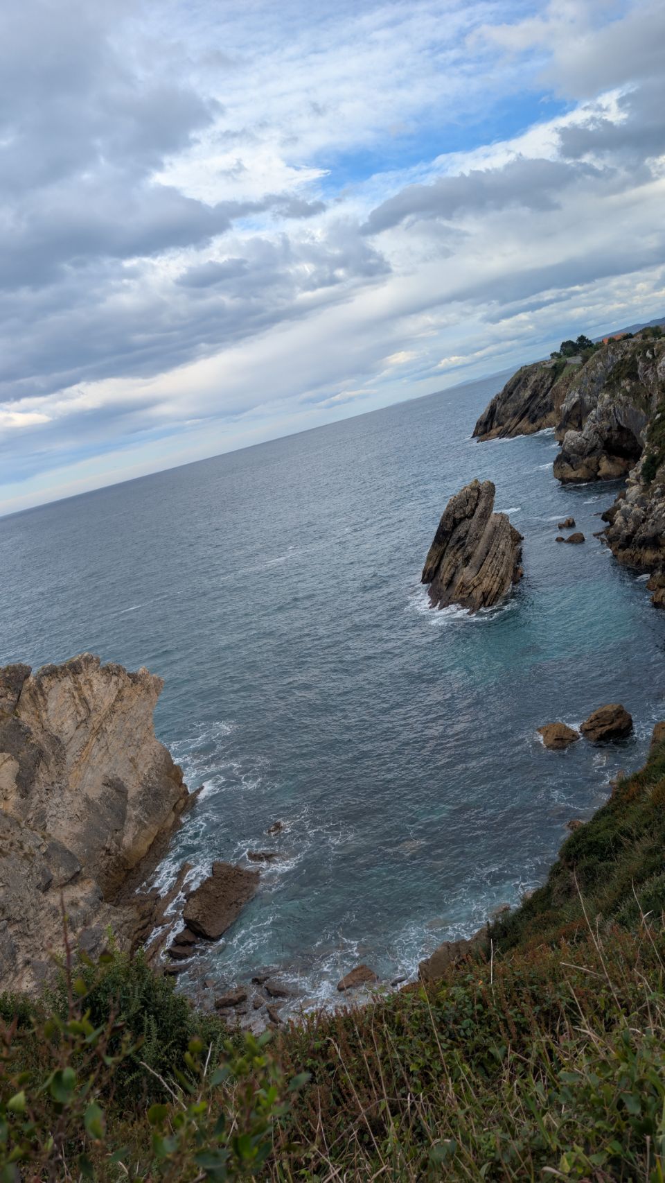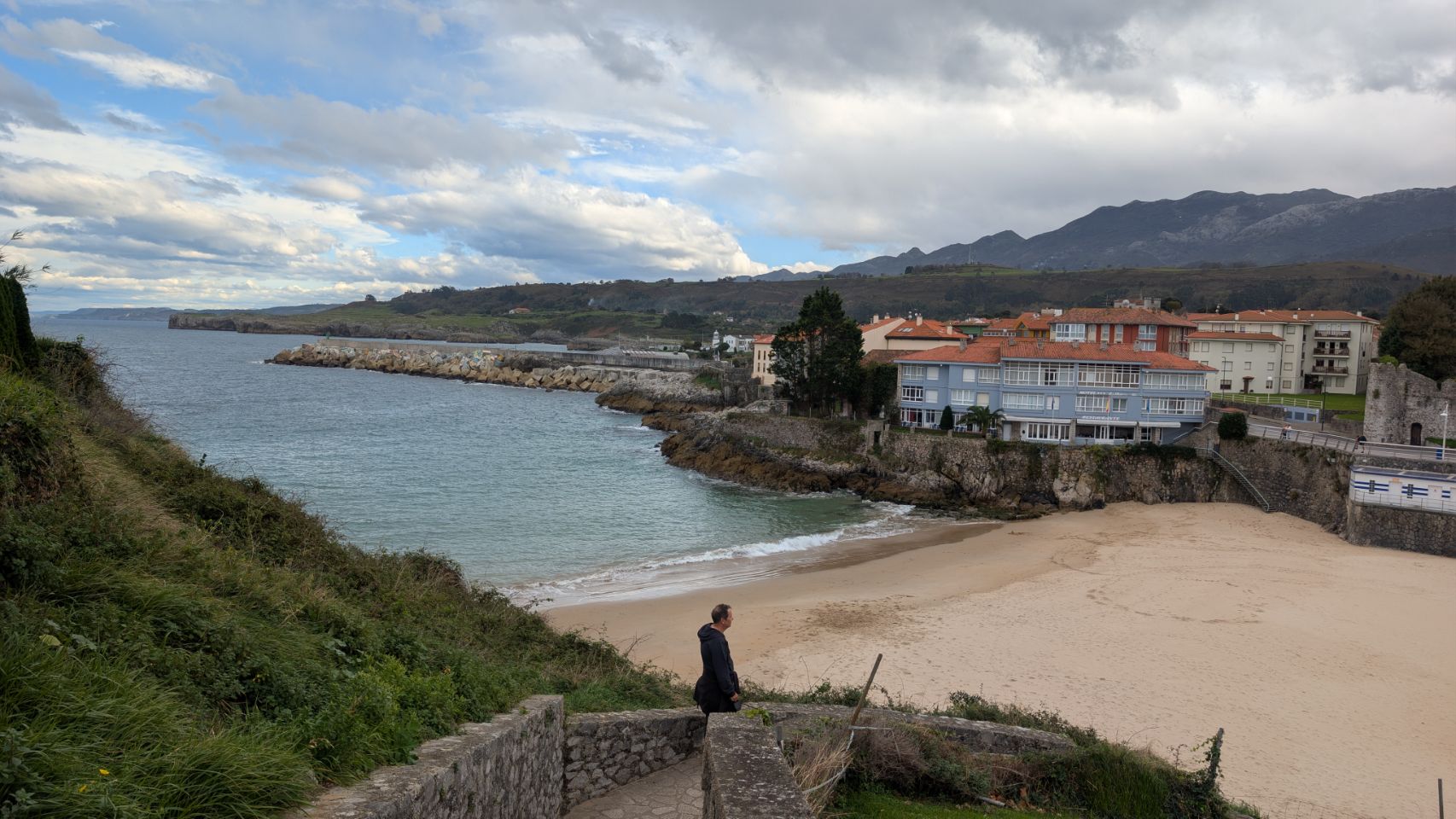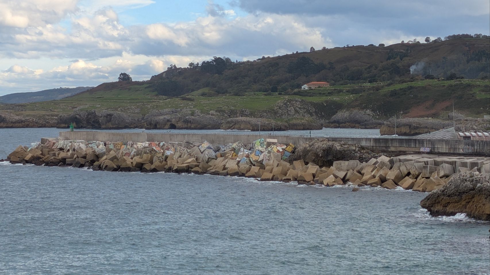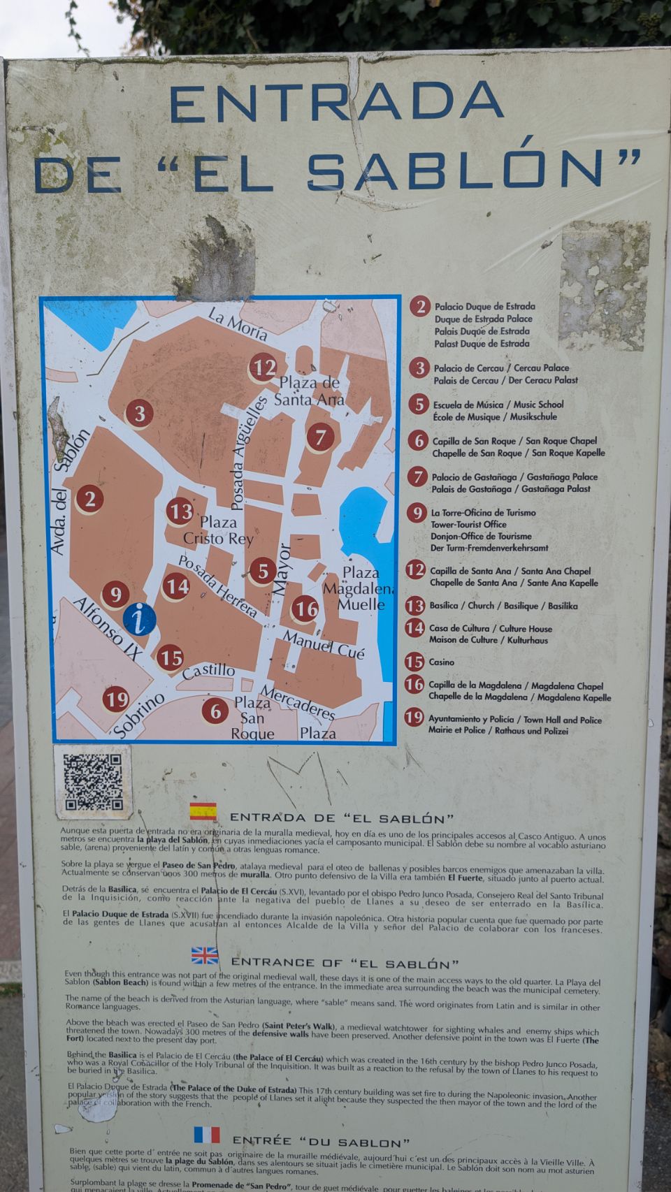 Die erste Runde mit Cuba gehen wir über den Paseo de San Pedro, ein breiter Weg/Promenade/Grasstreifen auf den Klippen. Er führt die Steilküste von Llanes entlang, bietet tolle Ausblicke aufs Meer und die Buchten, bis zum Stadtstrand „El Sablón“ sowie dem Hafen mit Blick auf das Werk des baskischen Malers Agustín Ibarrola „Die Würfel der Erinnerung“ und von dort zur Altstadt. Durch ein Tor kommt man ins kleine historische Zentrum = Zeit für die geplante Kaffeepause ☕ und einen kleinen Altstadtbummel.