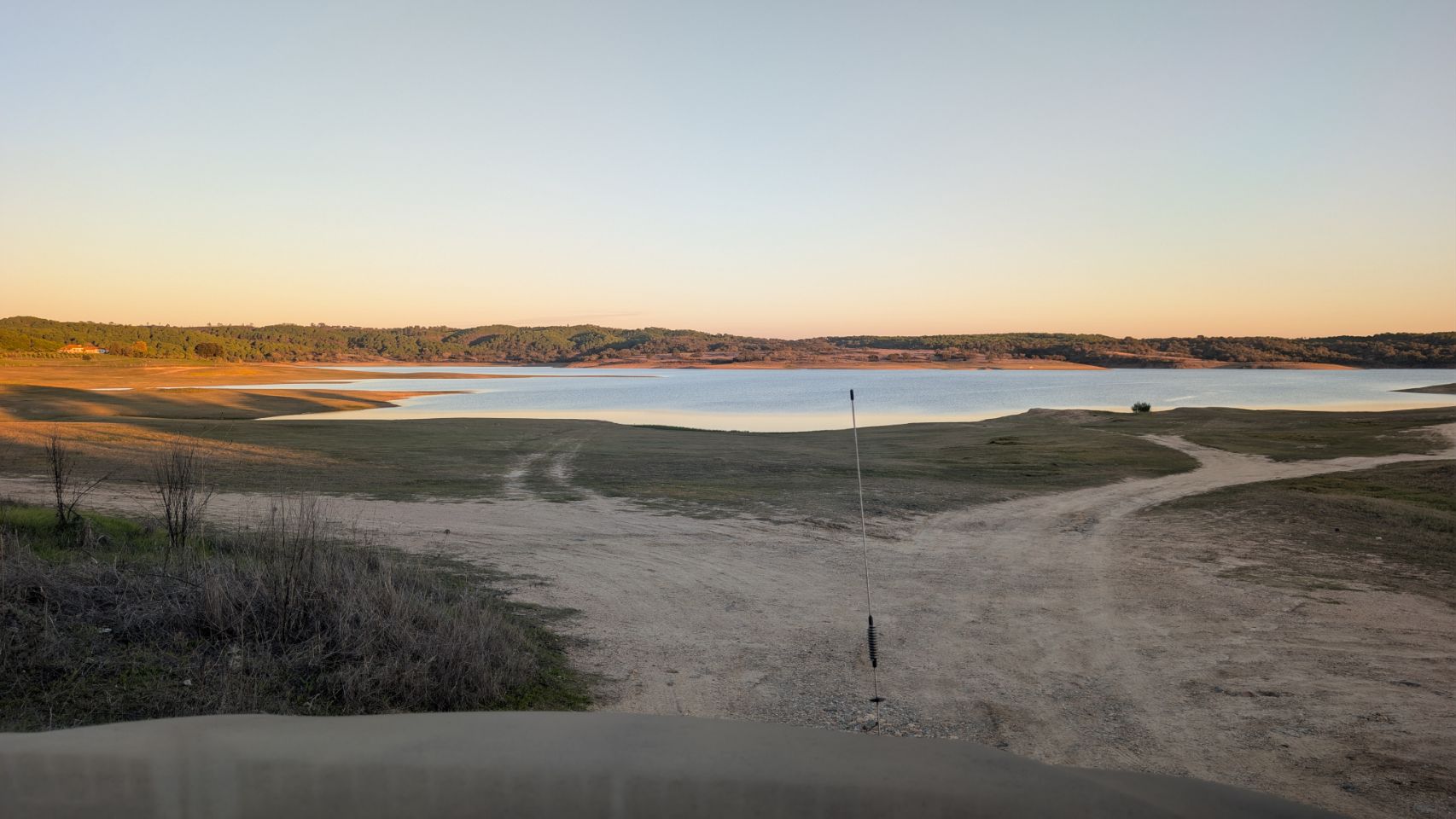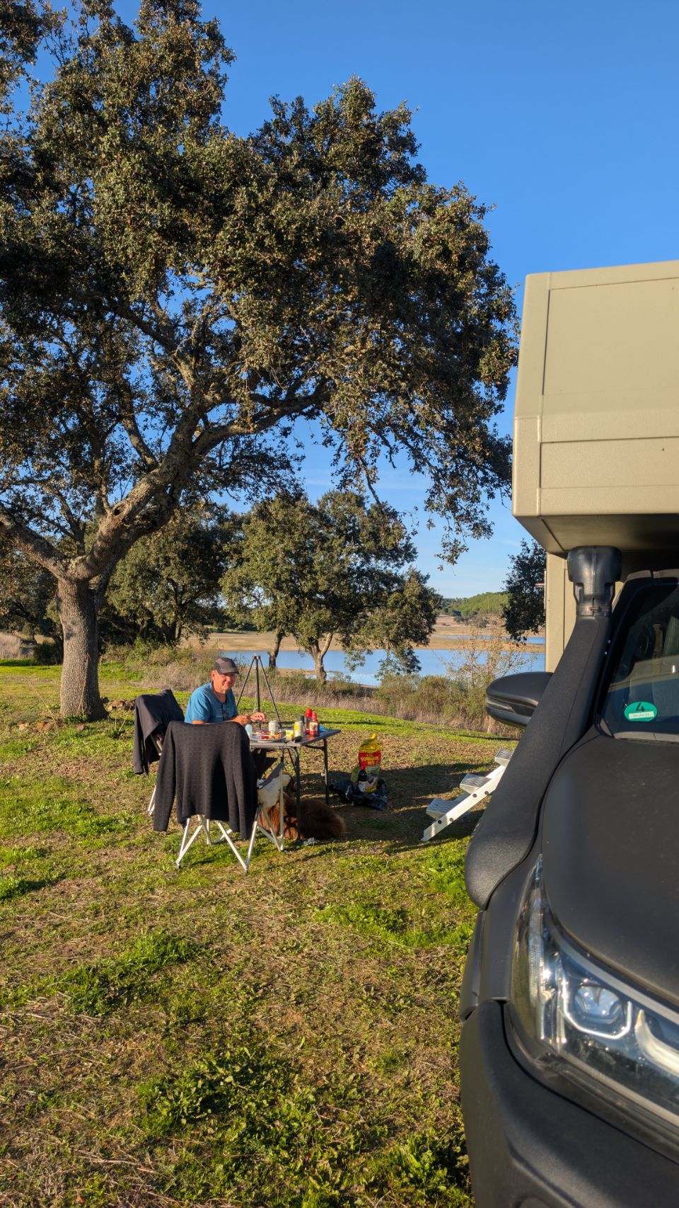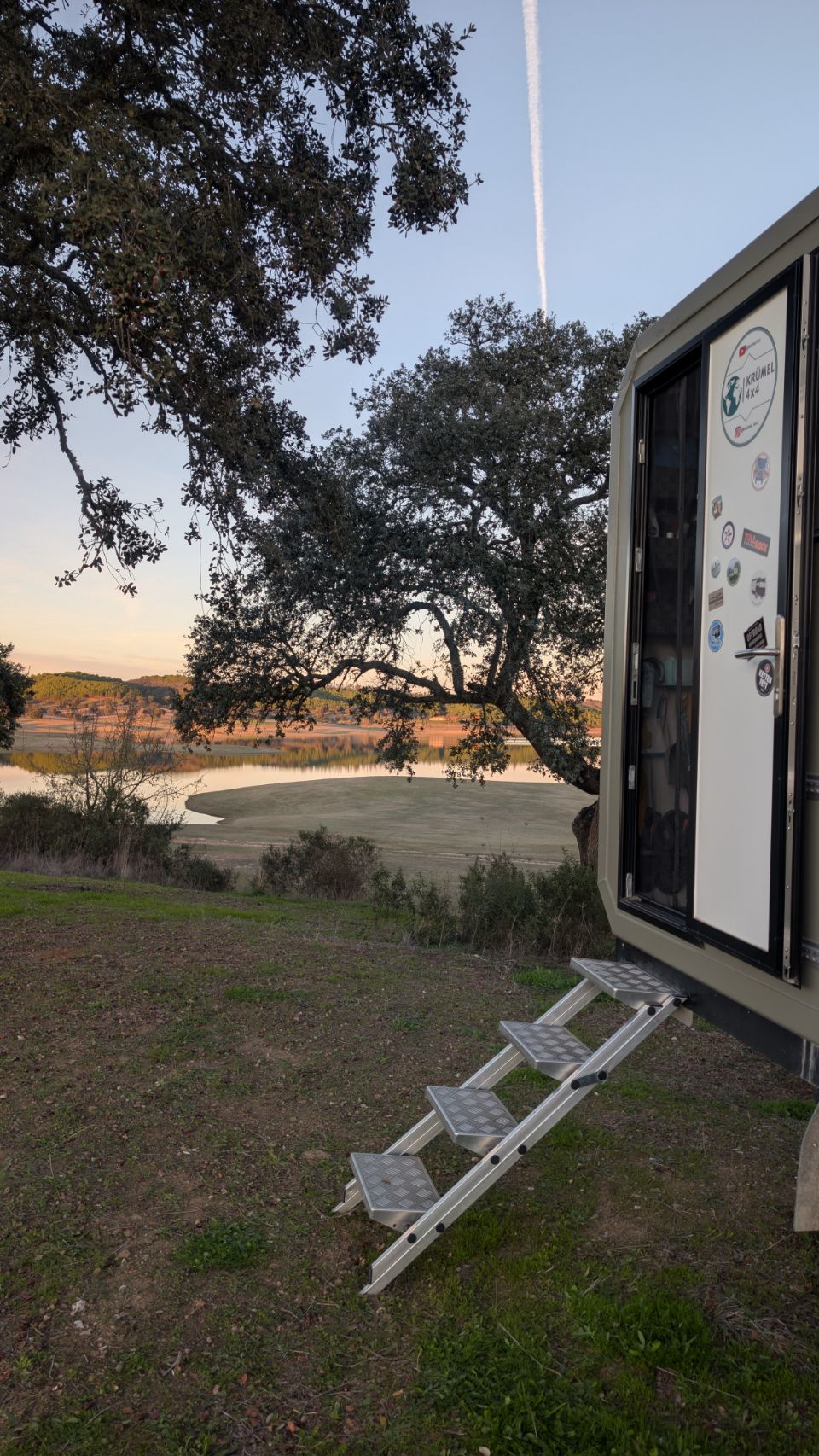 Und dort finden wir (… mit Hilfe der Community: Dankeschön an Jill & Christoph von Explore in wheels 🤗) ein kleines feines Plätzchen, wo wir für die nächsten 4 Nächte bleiben. Ein super schöner Stausee in der Nähe eines kleinen Ortes, an dem es nix gibt außer einer Piste drumherum und wir sind (fast) alleine bis auf ein feierfreudiges 🎶🎵🍻🥳 Trüppchen, das an einer anderen Ecke des Sees biwakiert.