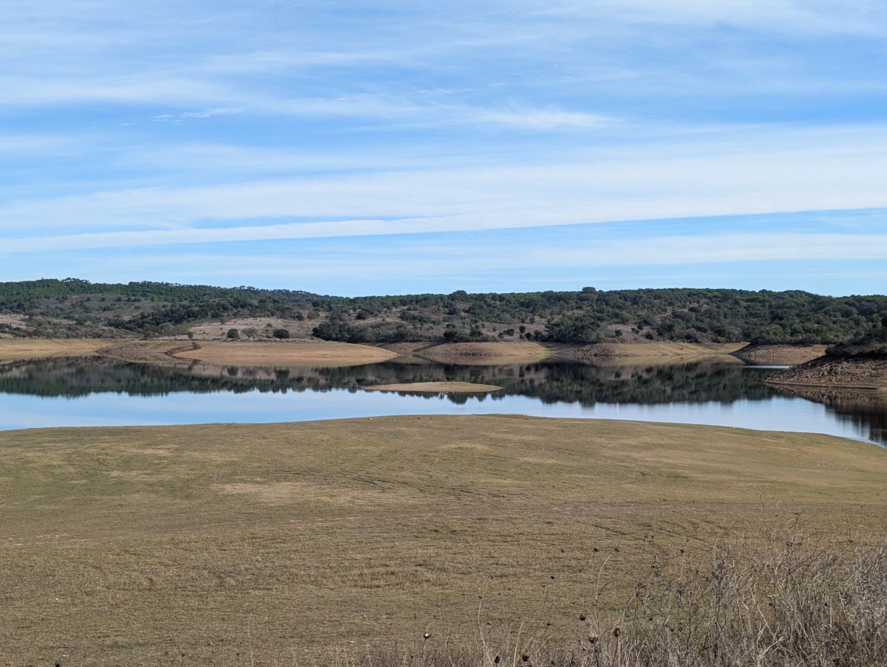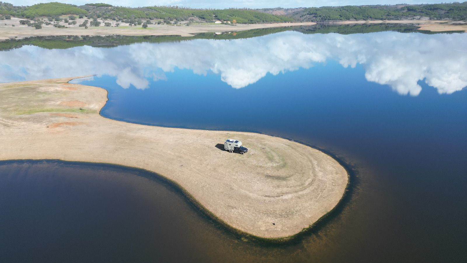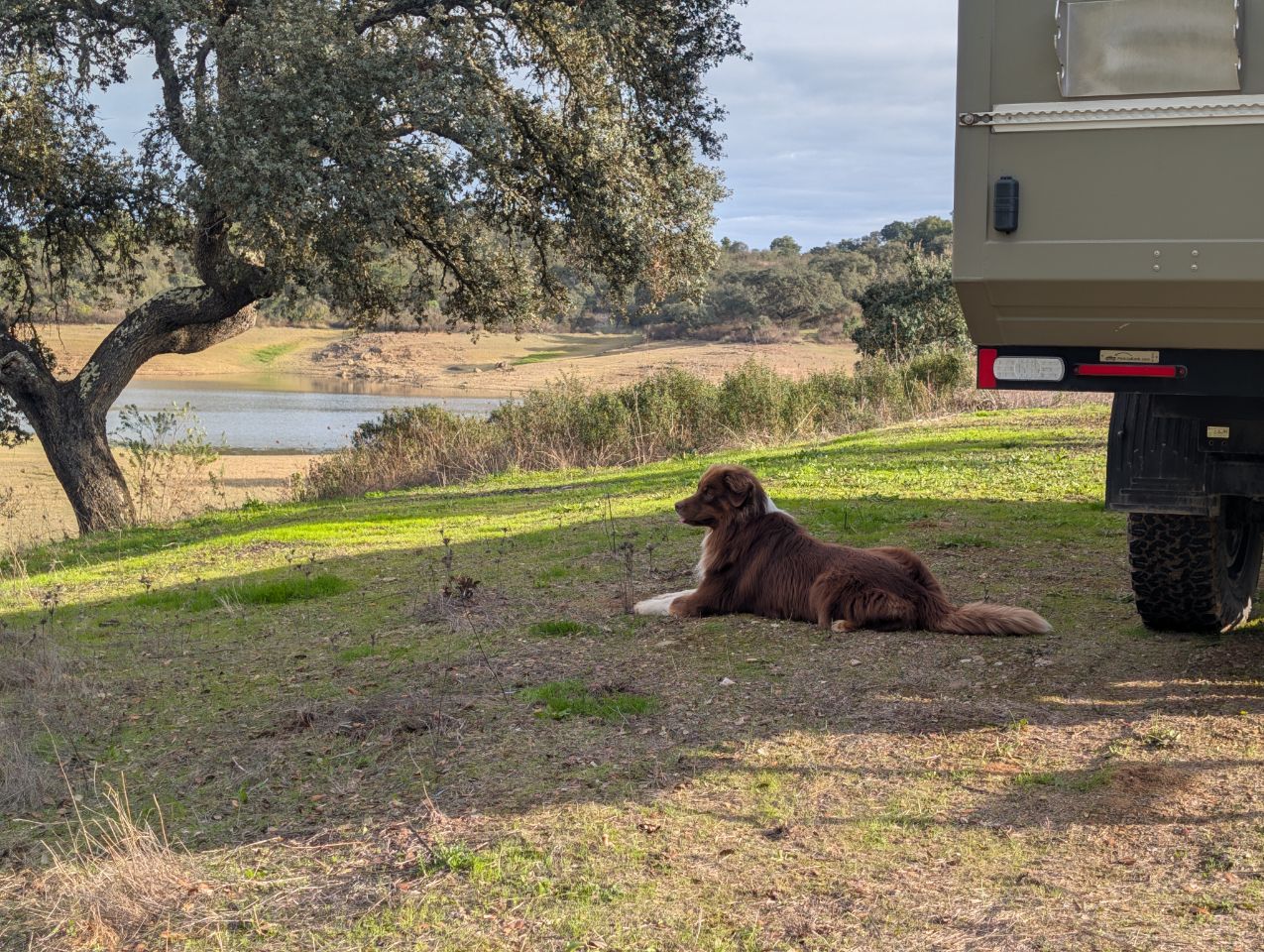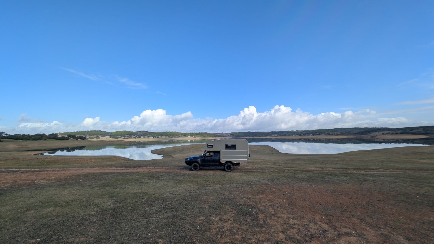 Und dort finden wir (… mit Hilfe der Community: Dankeschön an Jill & Christoph von Explore in wheels 🤗) ein kleines feines Plätzchen, wo wir für die nächsten 4 Nächte bleiben. Ein super schöner Stausee in der Nähe eines kleinen Ortes, an dem es nix gibt außer einer Piste drumherum und wir sind (fast) alleine bis auf ein feierfreudiges 🎶🎵🍻🥳 Trüppchen, das an einer anderen Ecke des Sees biwakiert.