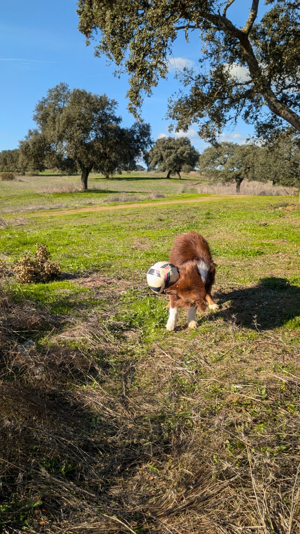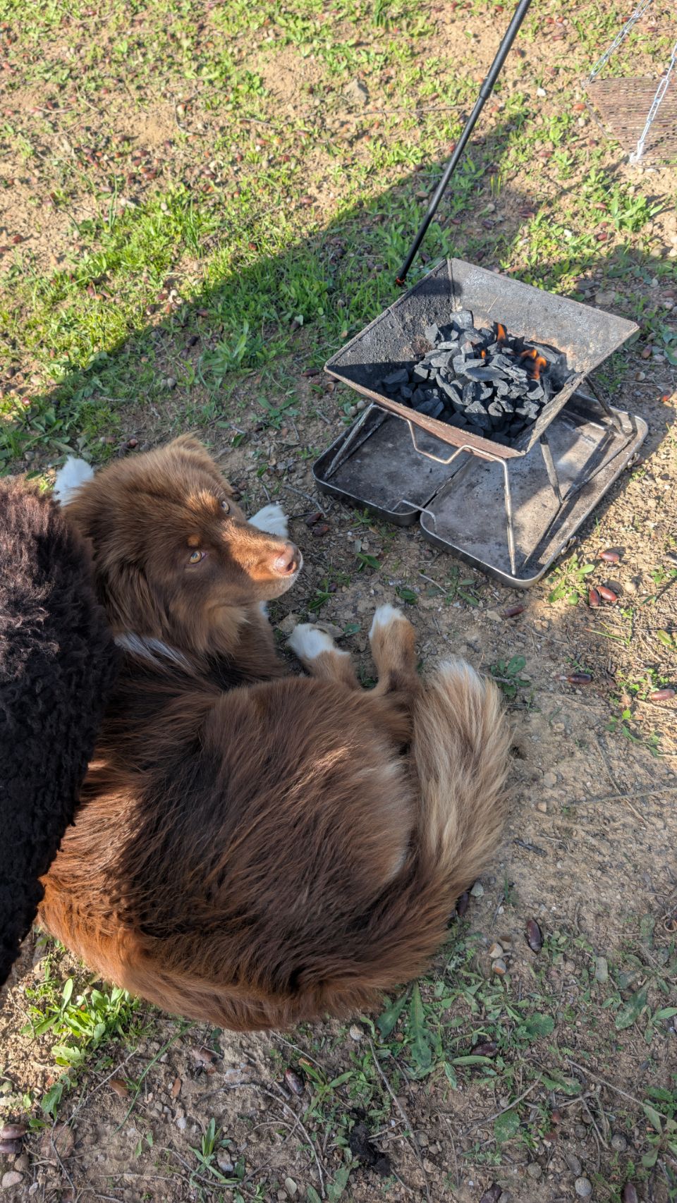 Tagsüber kommen selten mal ein paar Spaziergänger mit Hunden vorbei – was uns einen netten Plausch mit Hugo und Belinda beschert, während Cuba mit der gleichbekloppten Perla durch die Gegend tobt 🐶🐶.
