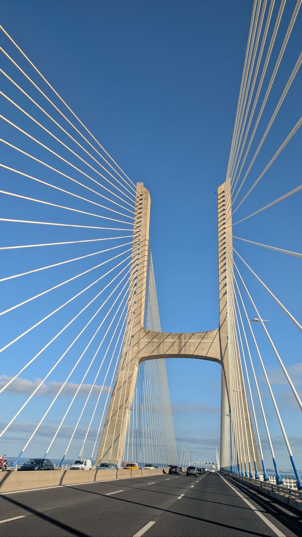 Die Strecke führt uns trotzdem dort vorbei und über die beeindruckende Ponte Vasco da Gama (eine 17 km lange Schrägseilbrücke über den Tejo, nach der Krimbrücke die zweitlängste Brücke Europas) weg von der vollen Küste ins einsame Hinterland.
