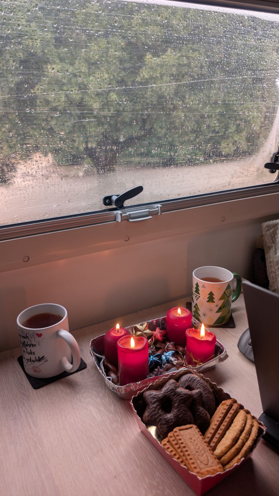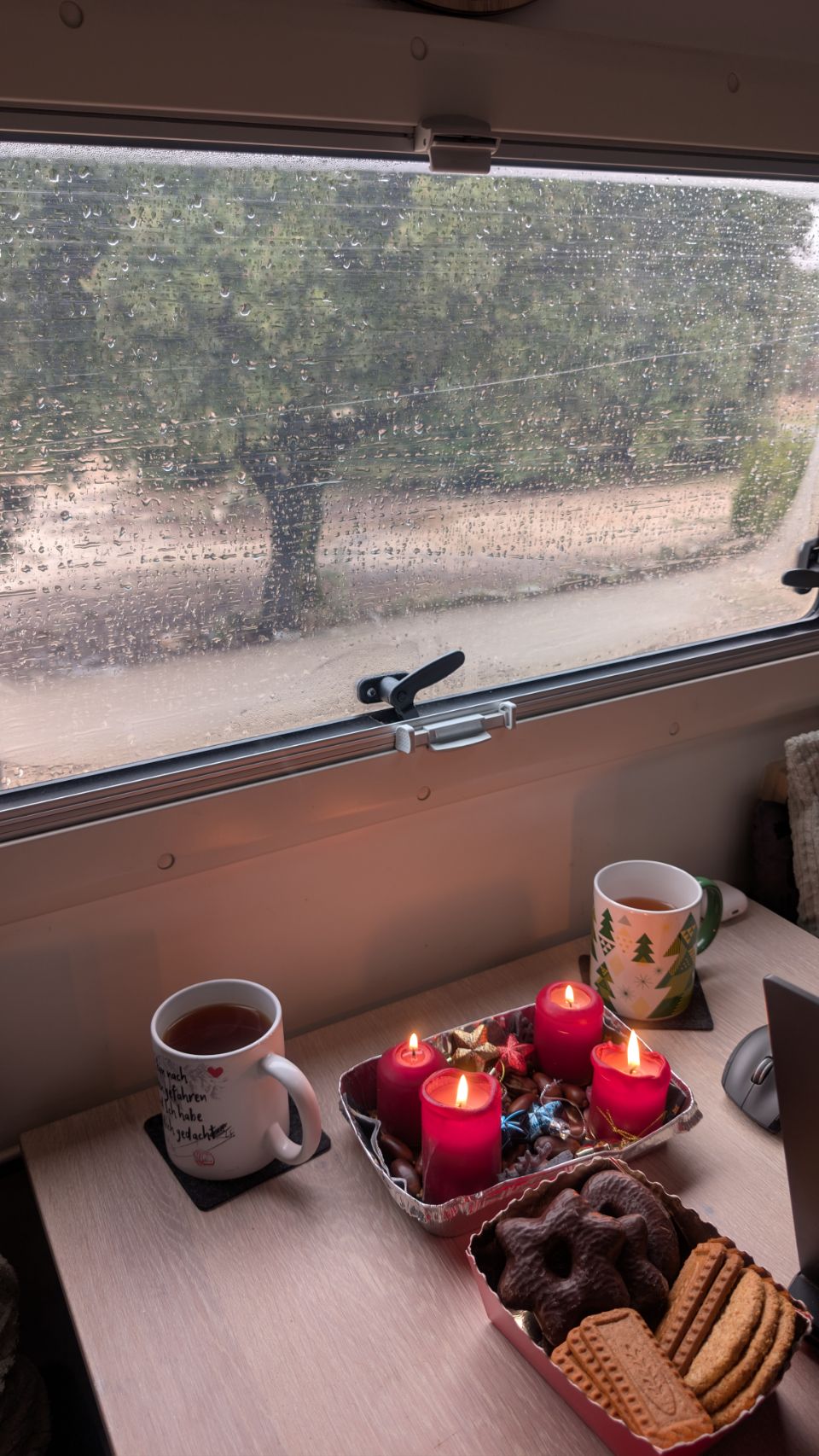 Vom einen Regen in den nächsten Regen. Unser schlechtwetter-untaugliches Strom-Setup verschlägt uns auf den kleinen Bergcampingplatz  „Municipal Conejeras“  in der Sierra de las Nieves. Wir sind wohl die einzigen, die sich bei der aktuellen Wetterlage kurz vor Weihnachten in diesen eigentlich sehr schönen Naturpark verirren. Als wir ankommen, gießt es in Strömen und fast kriegen wir das Einzige, was wir unbedingt brauchen, gar nicht: unser Stromkabel für den Landstrom ist kaputt 😱. Glücklicherweise können wir von den sehr netten Platzbetreibern ein Kabel ausleihen – puuhh 😅. Stimmung für den 4. Advent 🕯️🕯️🕯️🕯️ gesichert.