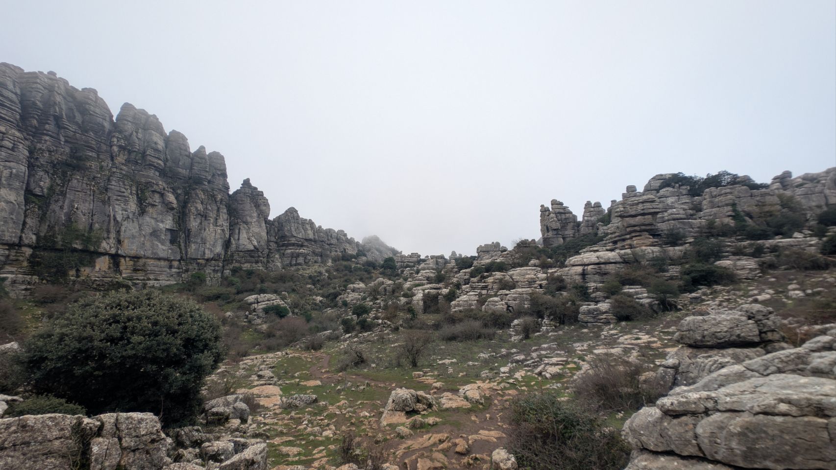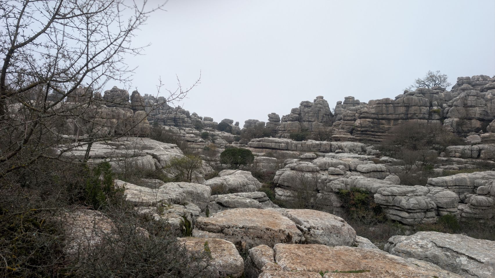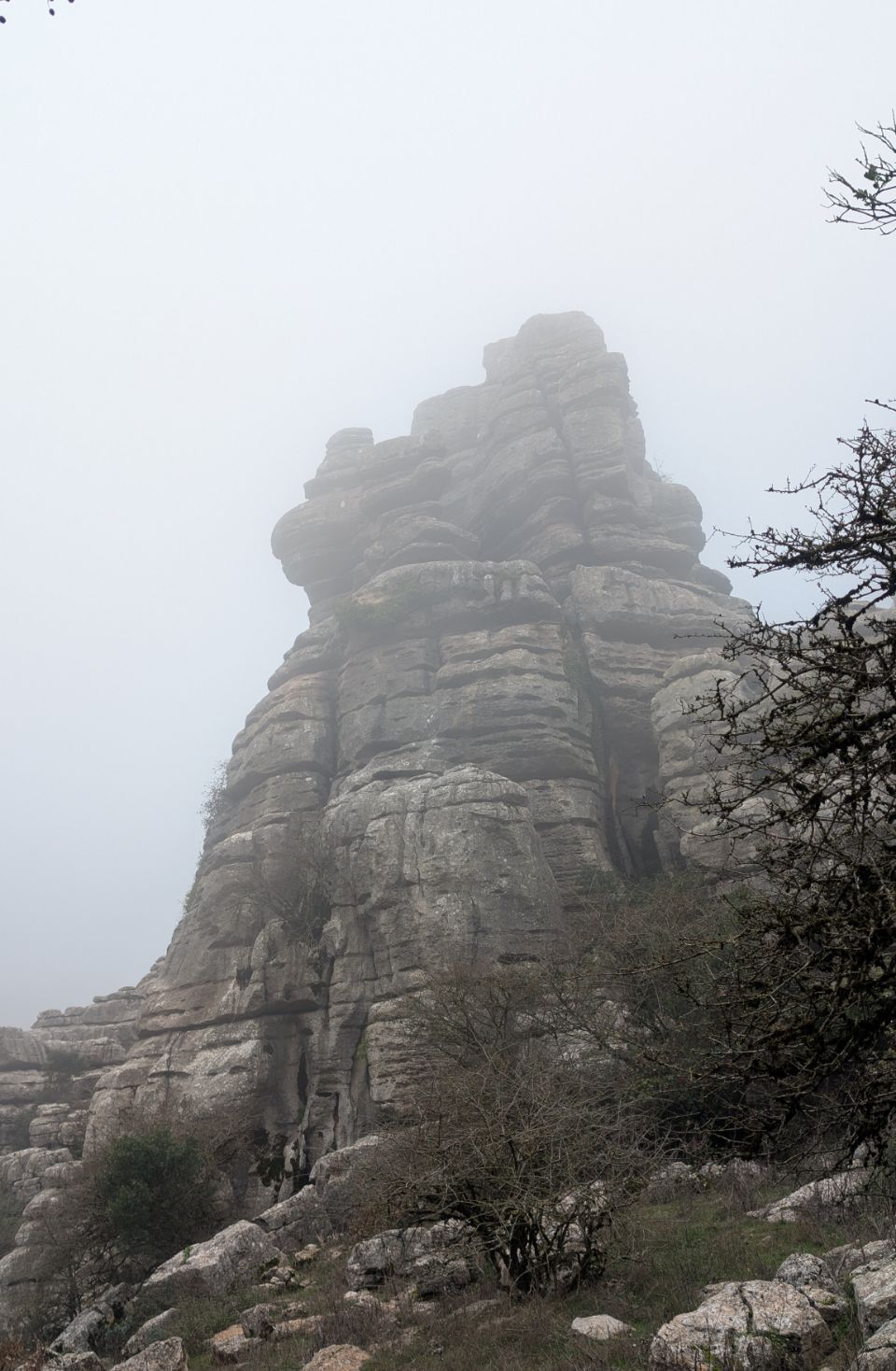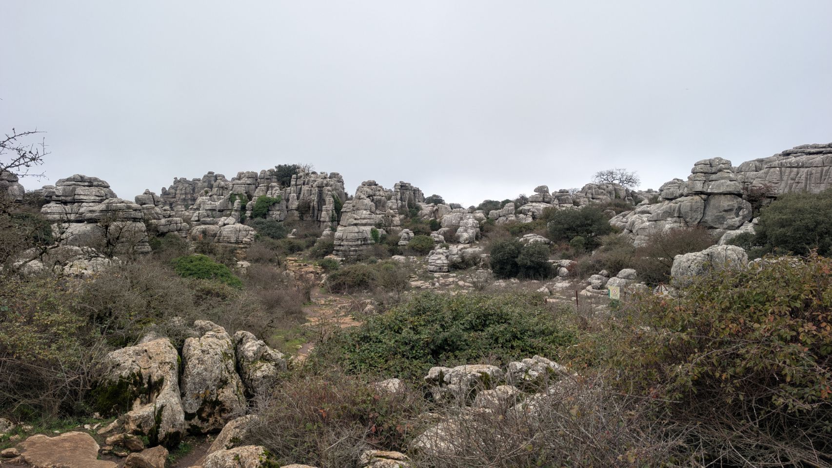 Der spooky Nebel begleitet uns weiter bis zum und auch bei der Wanderung durch den Naturpark El Torcal. Das Bergmassiv aus Kalkstein ist bekannt für seine spektakulären, durch Erosion geformten Karstlandschaften, Schluchten und bizarren Steinformationen. Es gehört zum UNESCO-Welterbe und ist vor 250 bis 200 Millionen Jahren entstanden.