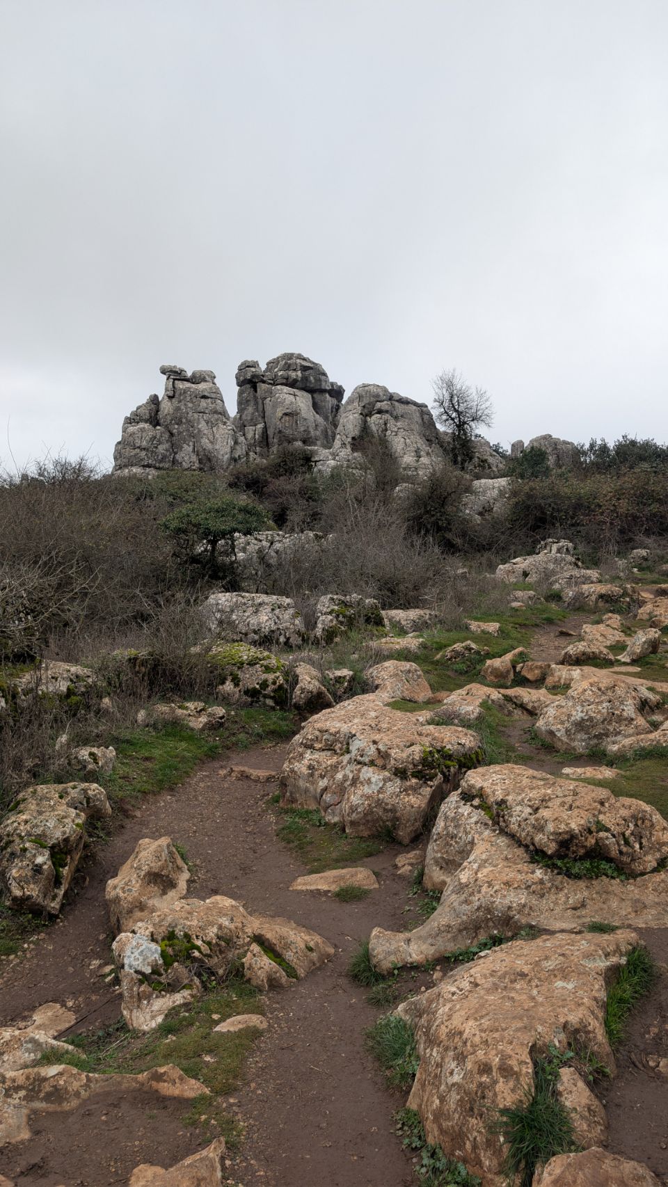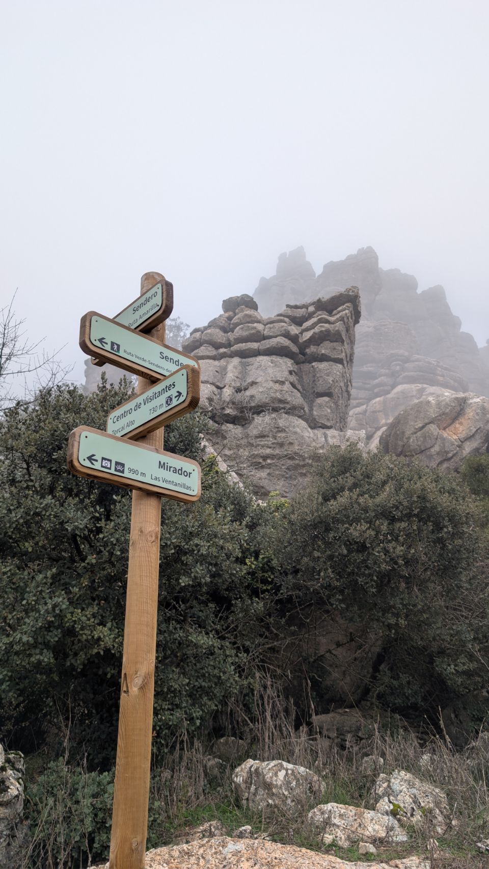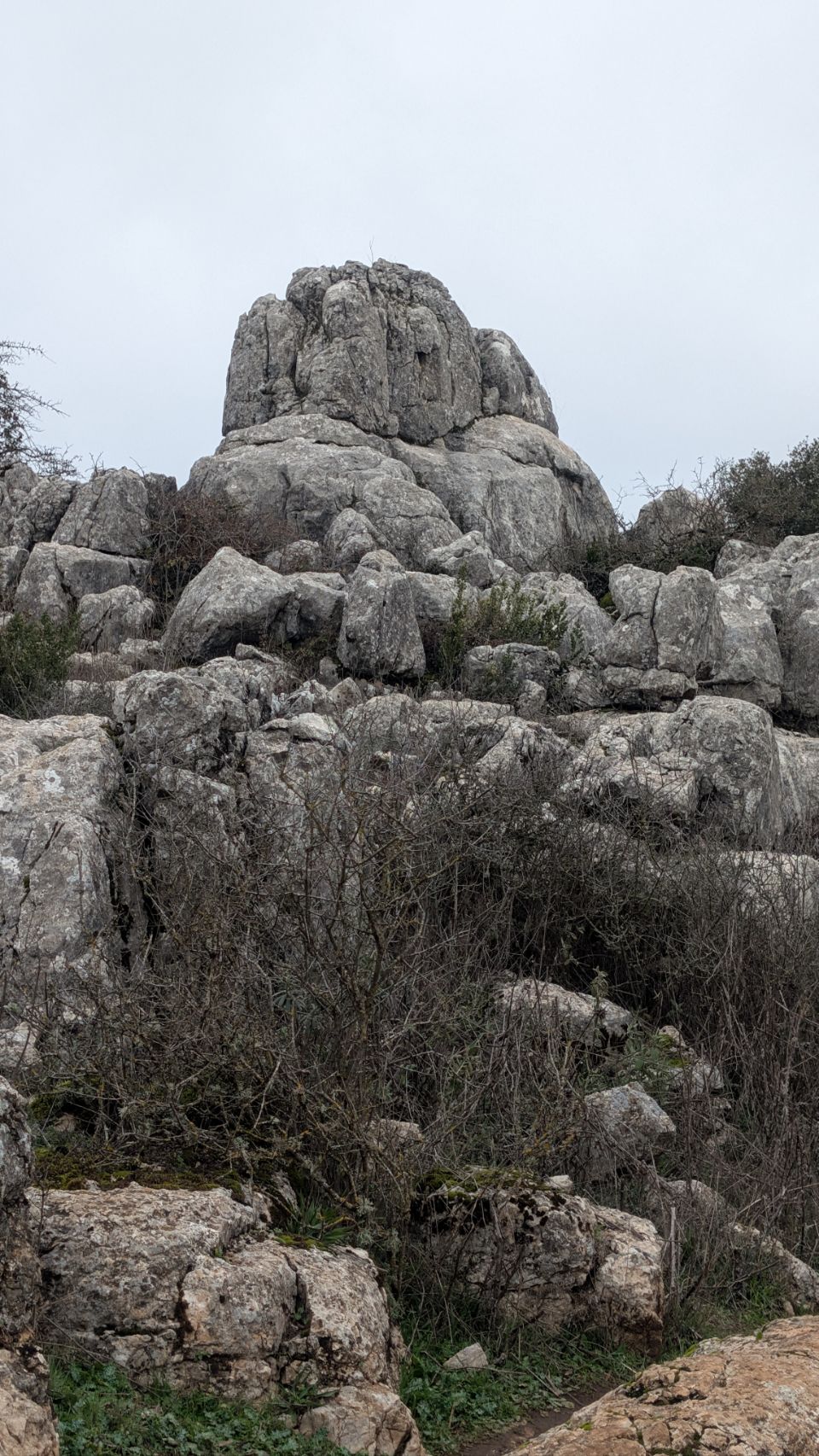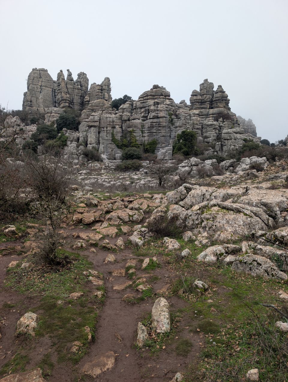 Der spooky Nebel begleitet uns weiter bis zum und auch bei der Wanderung durch den Naturpark El Torcal. Das Bergmassiv aus Kalkstein ist bekannt für seine spektakulären, durch Erosion geformten Karstlandschaften, Schluchten und bizarren Steinformationen. Es gehört zum UNESCO-Welterbe und ist vor 250 bis 200 Millionen Jahren entstanden.