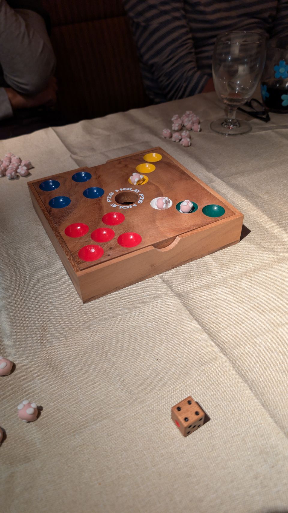 Den Jahreswechsel feiern wir gemeinsam mit Jutta und Jürgen ganz gemütlich im Herrn Rossi. Zum Auftakt gibt es ein richtig leckeres vegetarisches Zwei-Gänge-Menü (Co-Produktion von Team Rossi & Team Krümel) und anschließend wird gezockt: für die Silvesternacht könnte es kein besseres Spiel geben als „Pig Hole“, bei dem man mit kleinen „zuckersüßen“ Glücksschweinchen 🐷🍀🎲 um den Sieg spielt, oder 🥳? Nach zwei Runden Schweinchen versenken geht es dann weiter mit „🐶 Dogs 🐶“, dessen Untertitel „Den letzten beißen die Hunde“ man in der aktuellen Konstellation (Jahresende, 3 Hunde am Platz…) interpretieren mag, wie man möchte… 🤔😂…