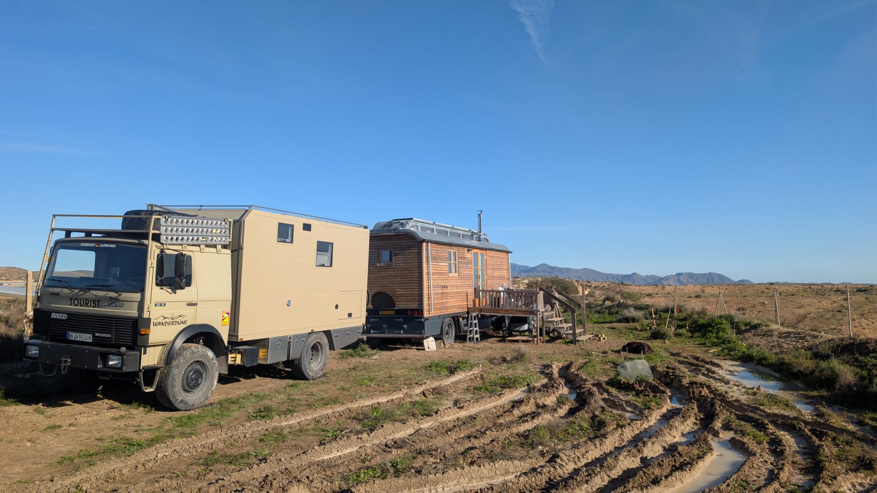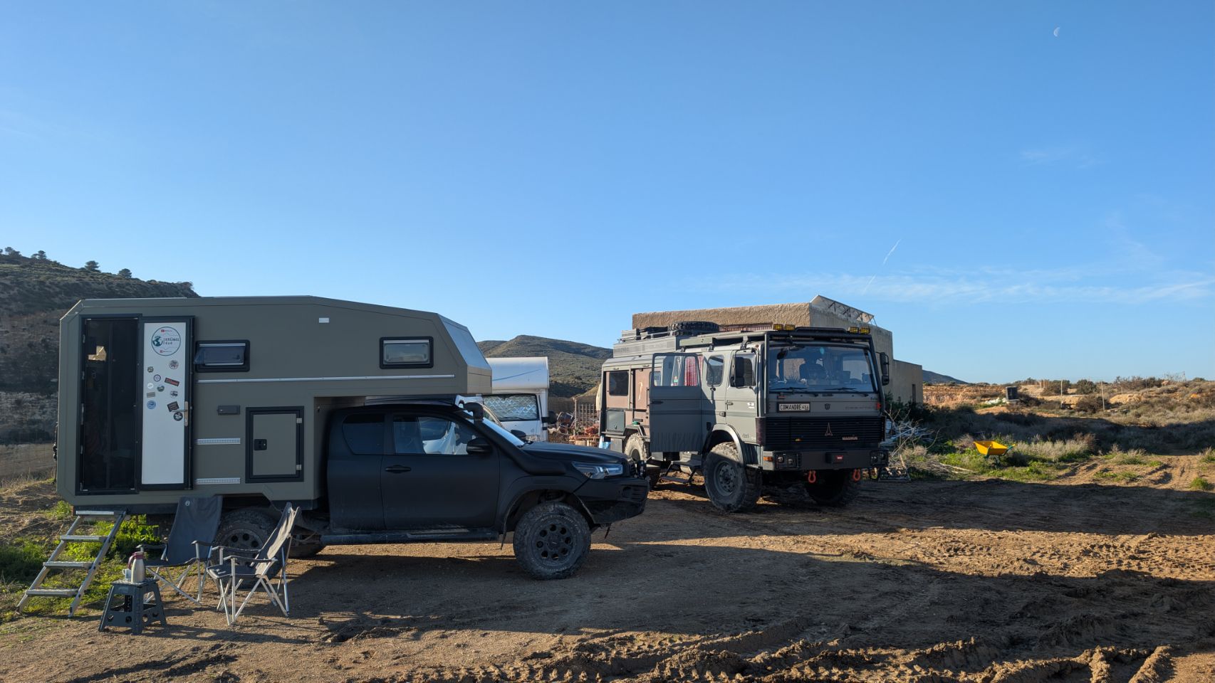 Nach unserem überstürzten Aufbruch vom Strand kommen wir bei Hugo unter, der auf einem Stück Land mit einem alten Steinbruch etwas aufbauen will, ich nenne es mal eine Art kleine Kommune. Man kann dort übernachten gegen Spende oder auch Mitarbeit 💪🏻👨🏻🔧🛠️.