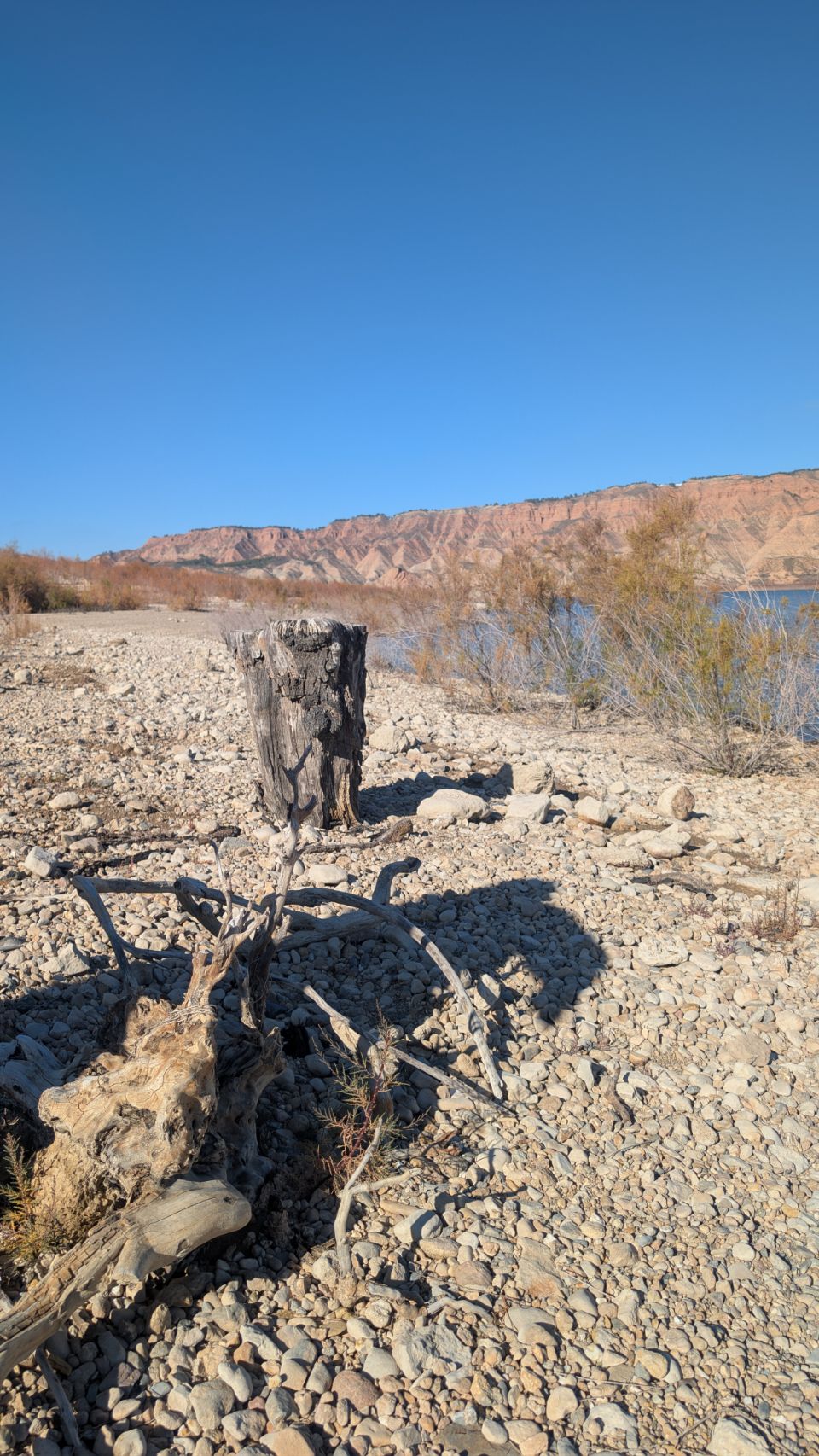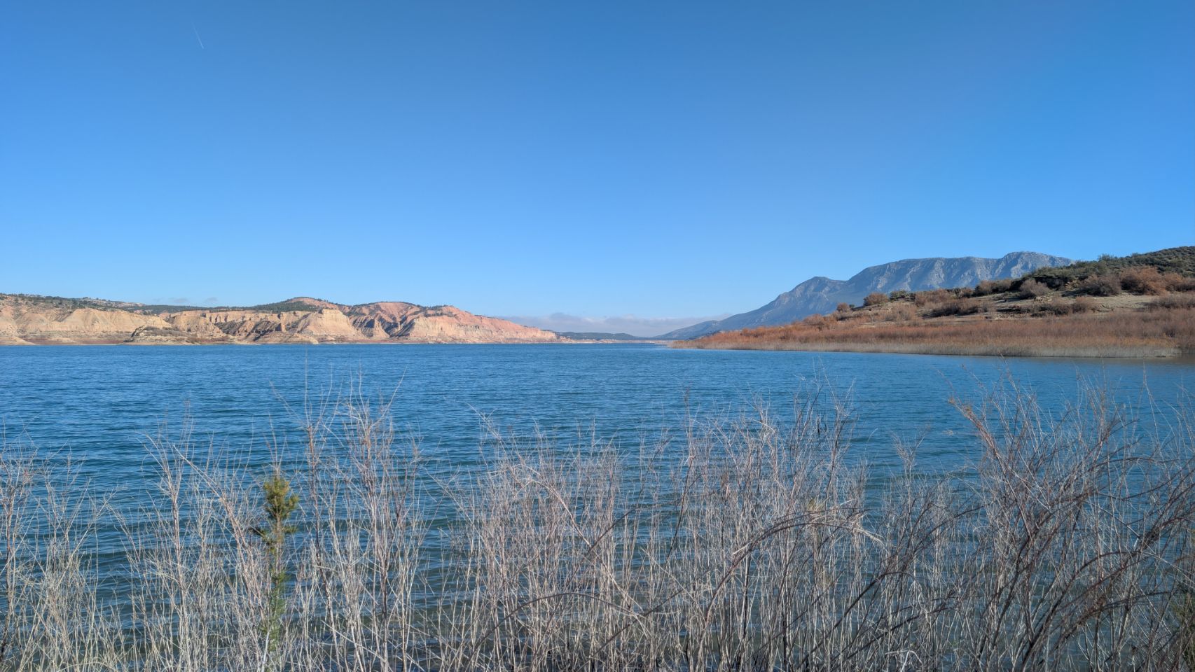 Am nächsten Morgen erkunden wir mit der Hunde-Rasselbande noch ein bisschen das Ufer des Embalse de Negratin bei weiterhin schönem Sonnenwetter. Glück im Unglück, das ist ein wirklich schöner ruhiger Platz mit toller Aussicht und bei etwas sommerlicheren Temperaturen könnte man sicher ein bisschen im Stausee plantschen gehen.