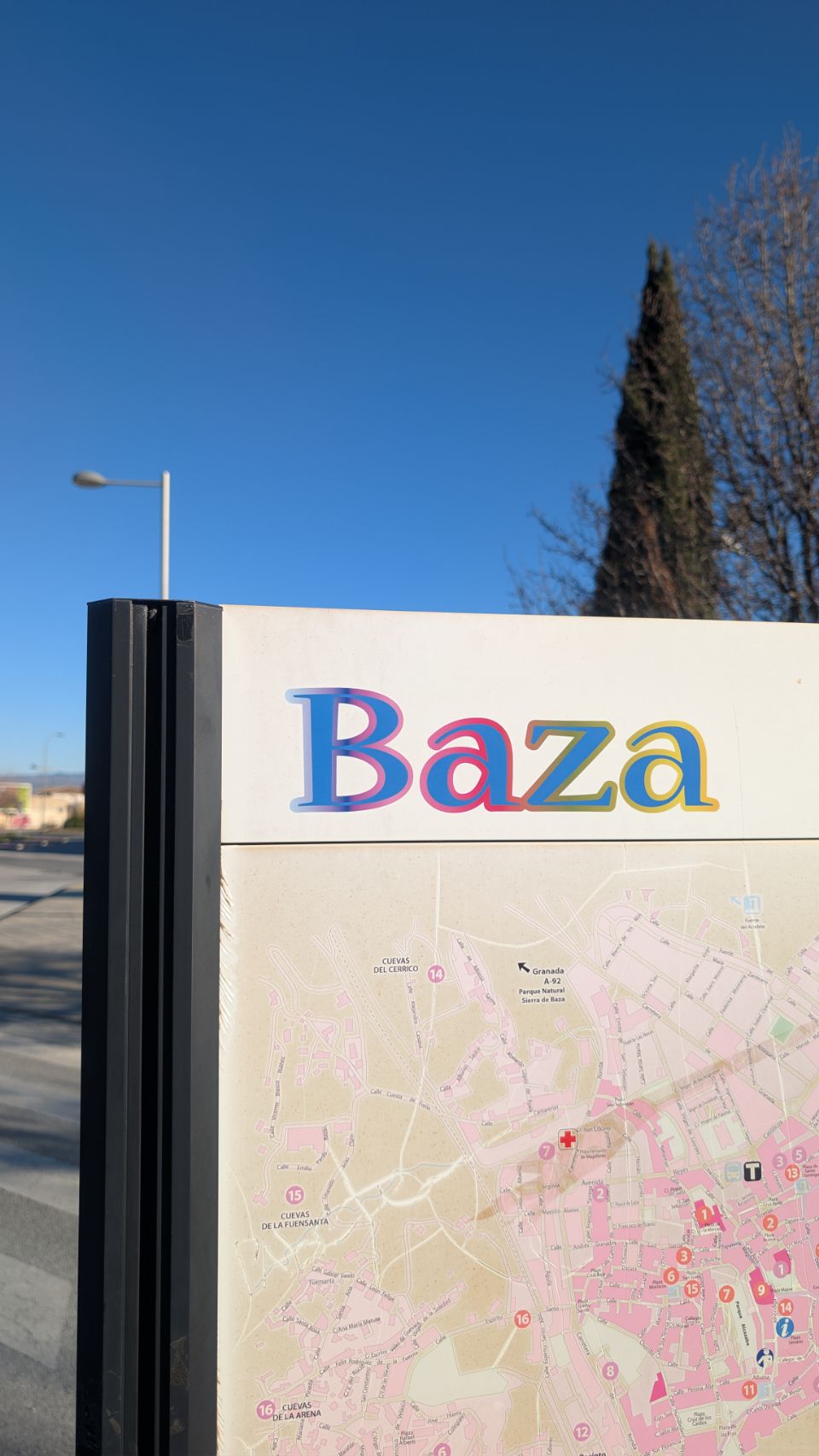 In Baza gibt es einen kleinen praktischen Womo-Stellplatz von der Stadt (Danke dafür 🙏🏼) mit Möglichkeit zum Wasser tanken und Abwasser entsorgen – leider passen wir mit unserer Kolonne nicht mehr drauf. Macht aber nix, jenseits des Zauns ist reichlich Platz zum Parken für uns alle.