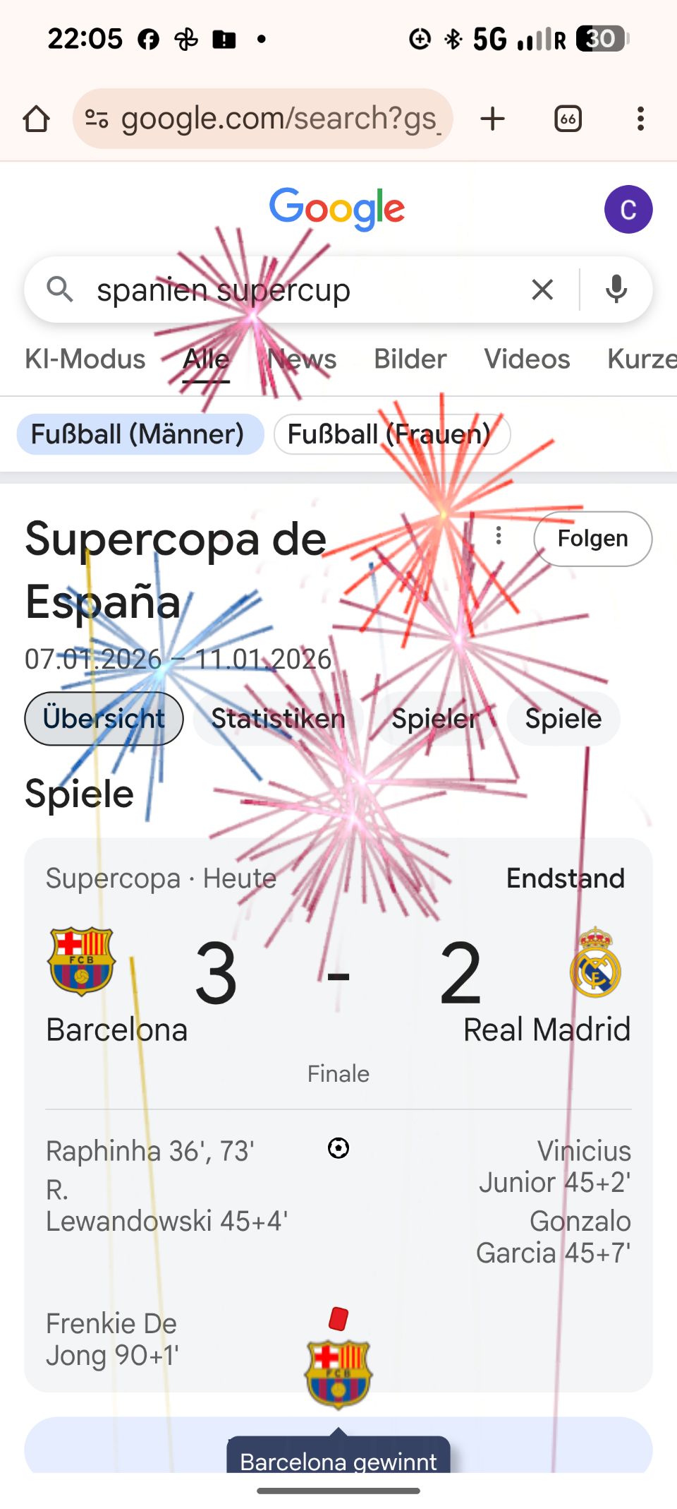 Nach einer kleinen Ruhepause geht es abends dann nochmal los ins Restaurant Ronda, wo wir glücklicherweise einen Tisch reserviert haben – tatsächlich ist der Laden gesteckt voll mit Einheimischen, bestimmt mehr als 100, viele junge Leute, aber auch Familien und vor allem sind die alle zum Fußball gucken hier 📺 … 🤔? Völlig ungeplant und unerwartet sind wir mal wieder zur richtigen Zeit am richtigen Ort – wie geil ist das denn? Gerade findet der Supercopa de España statt (der unsinnigerweise in Saudi Arabien ausgetragen wird 🫣) und heute treffen die zwei spanischen Giganten FC Barcelona und Real Madrid aufeinander. Barcelona gewinnt letztlich 3:2 (mit deutscher „Schützenhilfe“ durch ein Tor von Lewandowski 🥅⚽👏🏻). Offensichtlich sind Fans aus beiden Lagern da, es ist irre laut aber eine Bombenstimmung, das Essen ist echt lecker und der Tinto Verano sowieso. Authentischer kann man einen Abend in Spanien kaum verbringen 😃, was meint ihr?