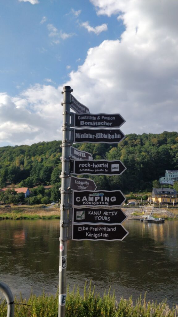 Jetzt machen wir noch ein bisschen „Urlaub“ in der Sächsischen Schweiz und quartieren uns auf dem Camping Königstein ein. Wir stehen direkt an der Elbe und von hier aus kann man eine schöne Wanderung machen – Thom kennt die Ecke von einem dienstlichen Event und wird morgen als mein persönlicher Wanderführer arbeiten ♀️♂️.
