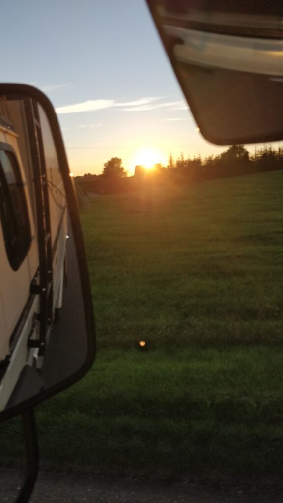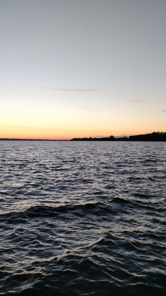 Schlafplatz gefunden – nicht ganz so wie geplant, aber das Ufer des Dusiasees ist fast komplett in privater Hand, wir finden keine gute Stelle, wo man direkt an den See rankommt. Wir landen auf einen kleinen Parkplatz mit Wanderweg und Infocenter, das ist aber geschlossen – genauso wie ein kleiner Foodtruck, der dort steht… ♀️… Gut, dass wir in Kaunas schon gegessen haben .